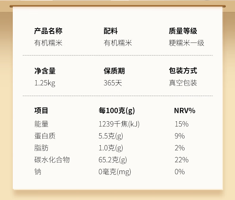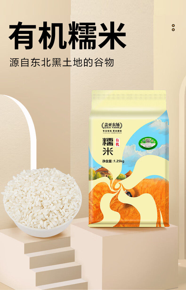 盖亚农场(Gaia Farm) 有机糯米1.25kg 江米粽子米 黏米 米饭伴侣 八宝粥原料 真空装 有机糯米1.25kg