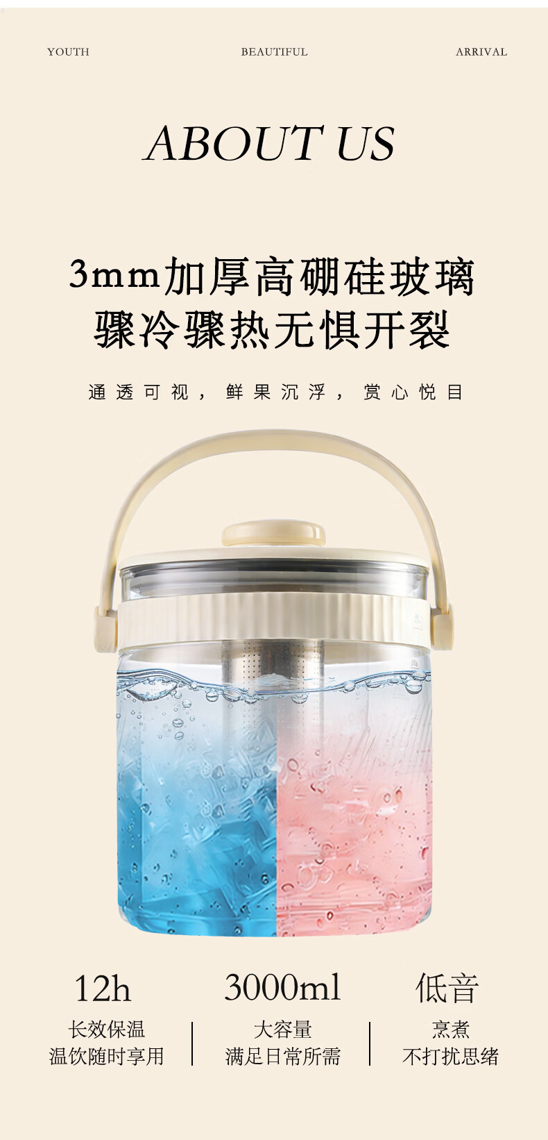 迪士尼保温壶家用玻璃内胆暖水壶办公室水壶学生宿舍保温瓶大容量热水瓶 【店长推荐】奶油白金 2L