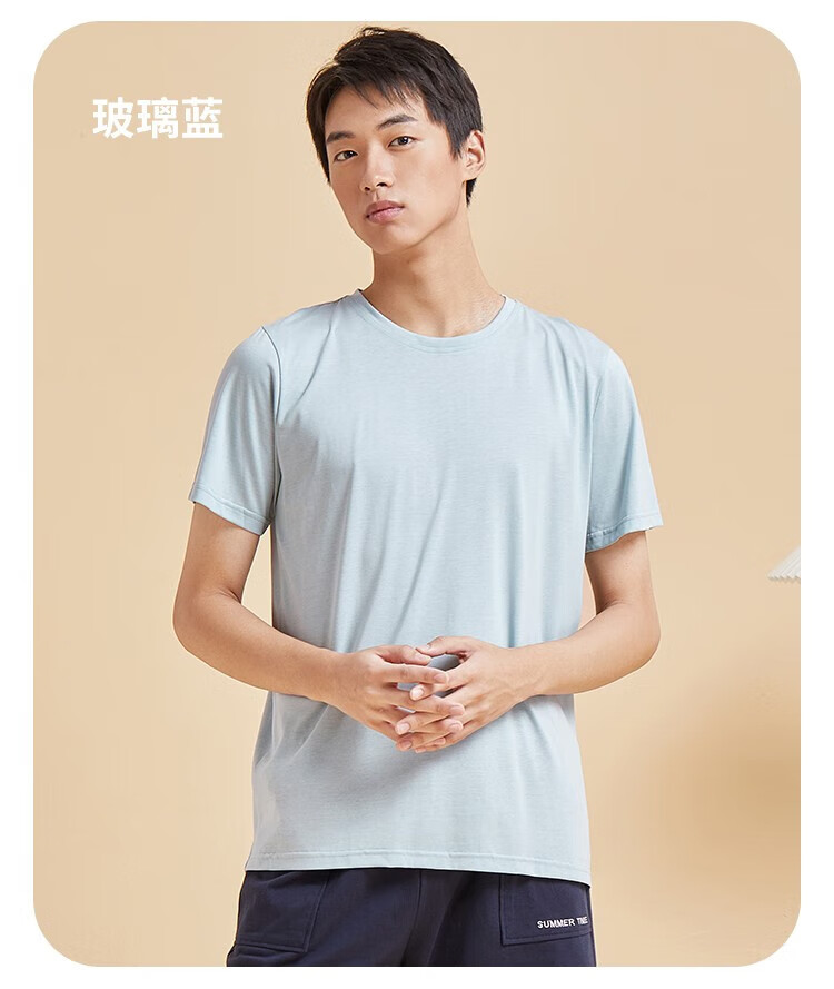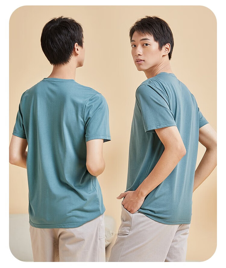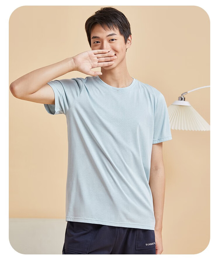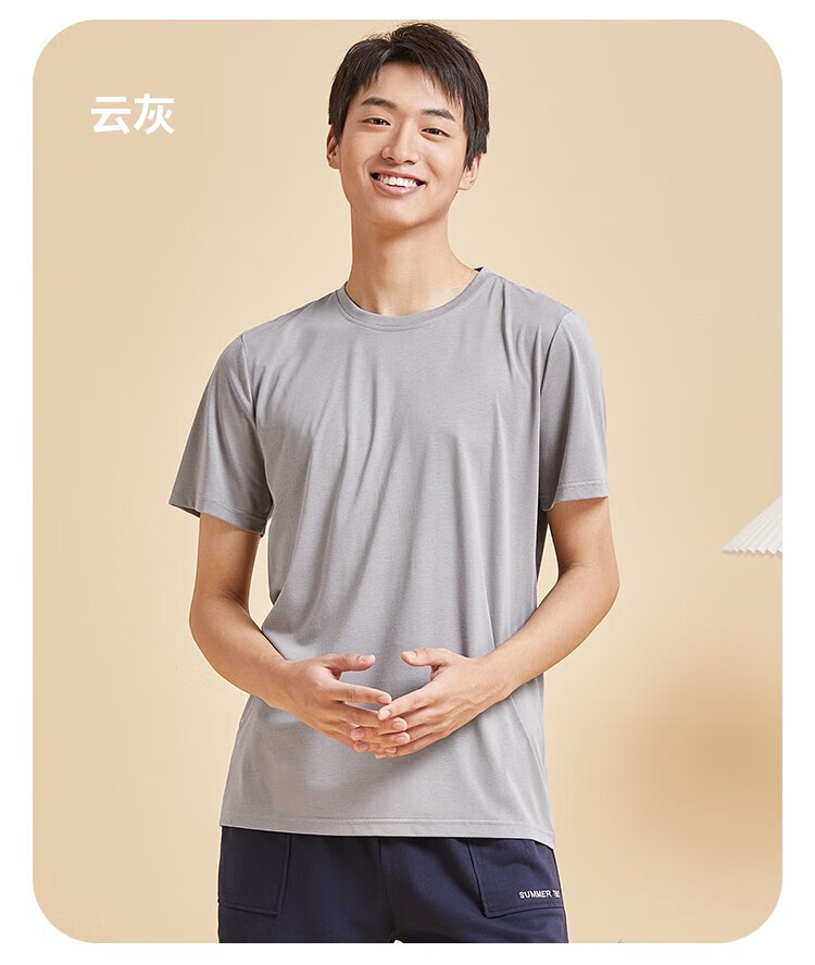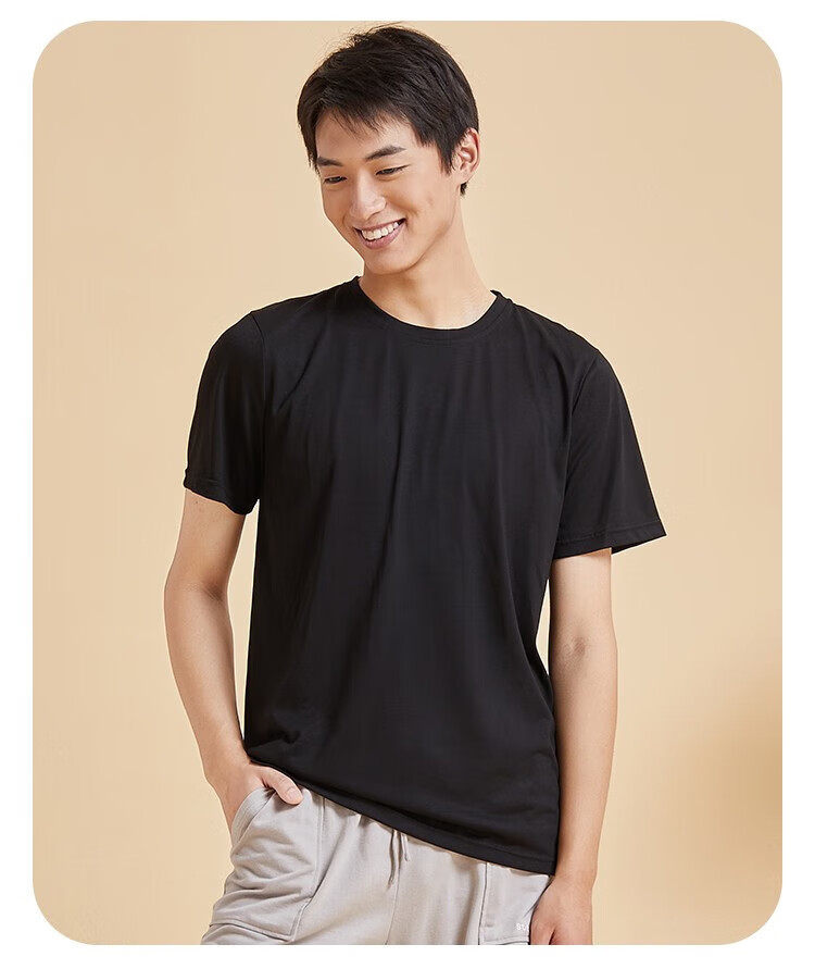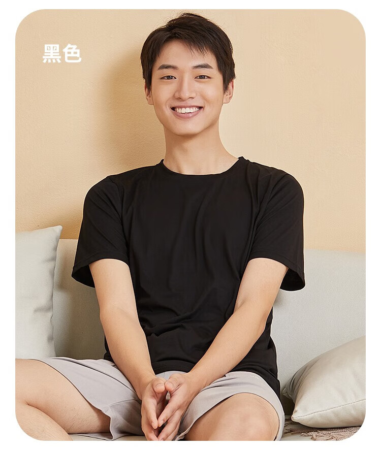 都市丽人睡衣男春夏冰爽棉质凉感柔软垂顺套头短袖上衣男士家居服 黑色 L