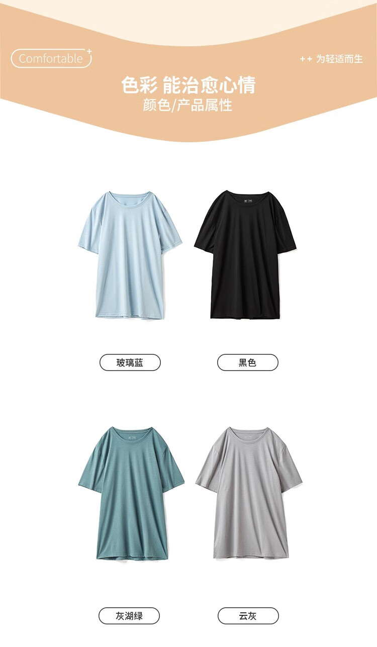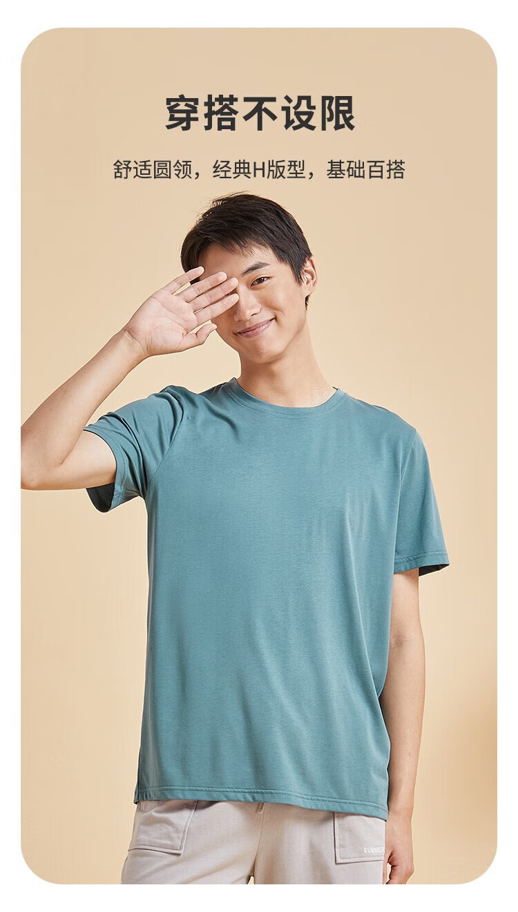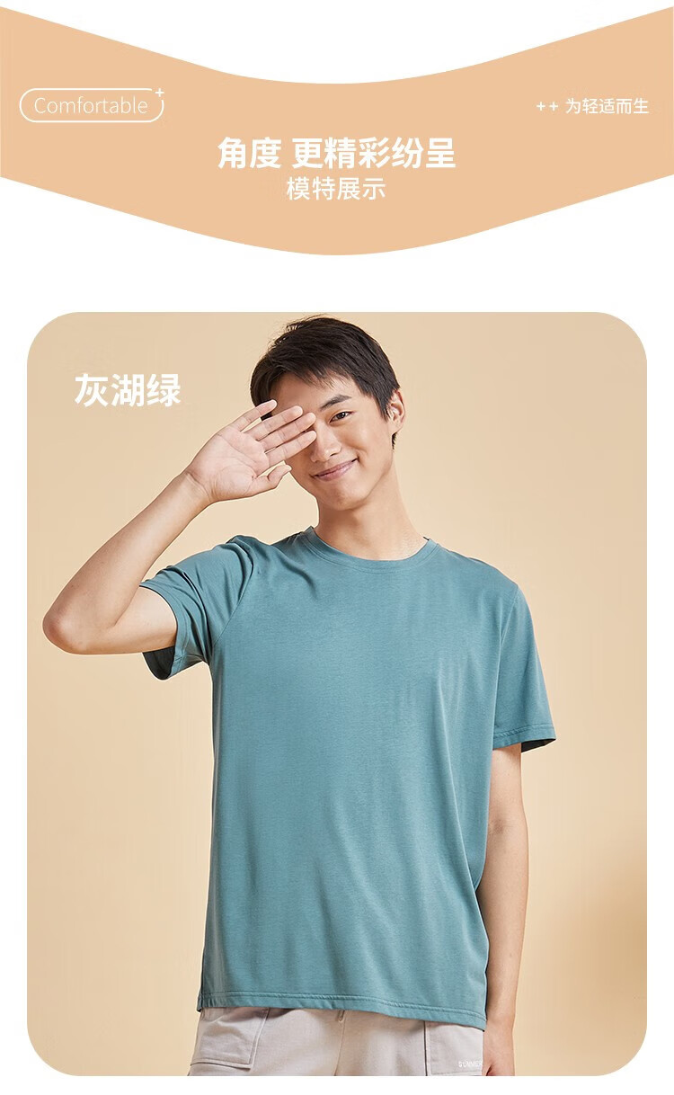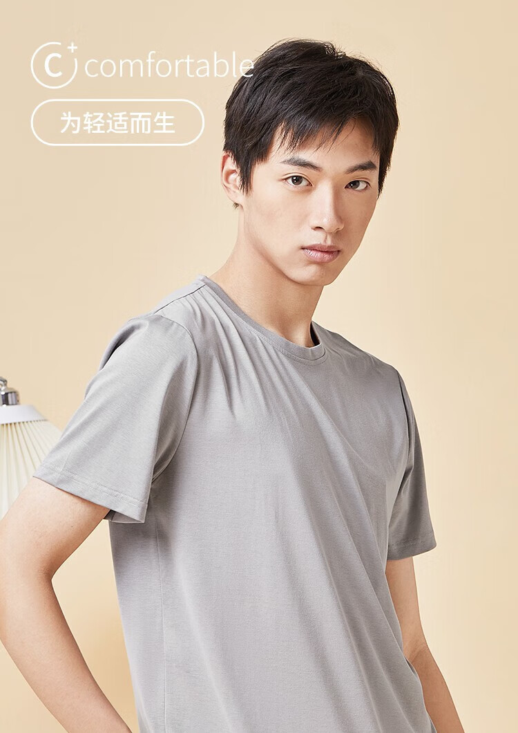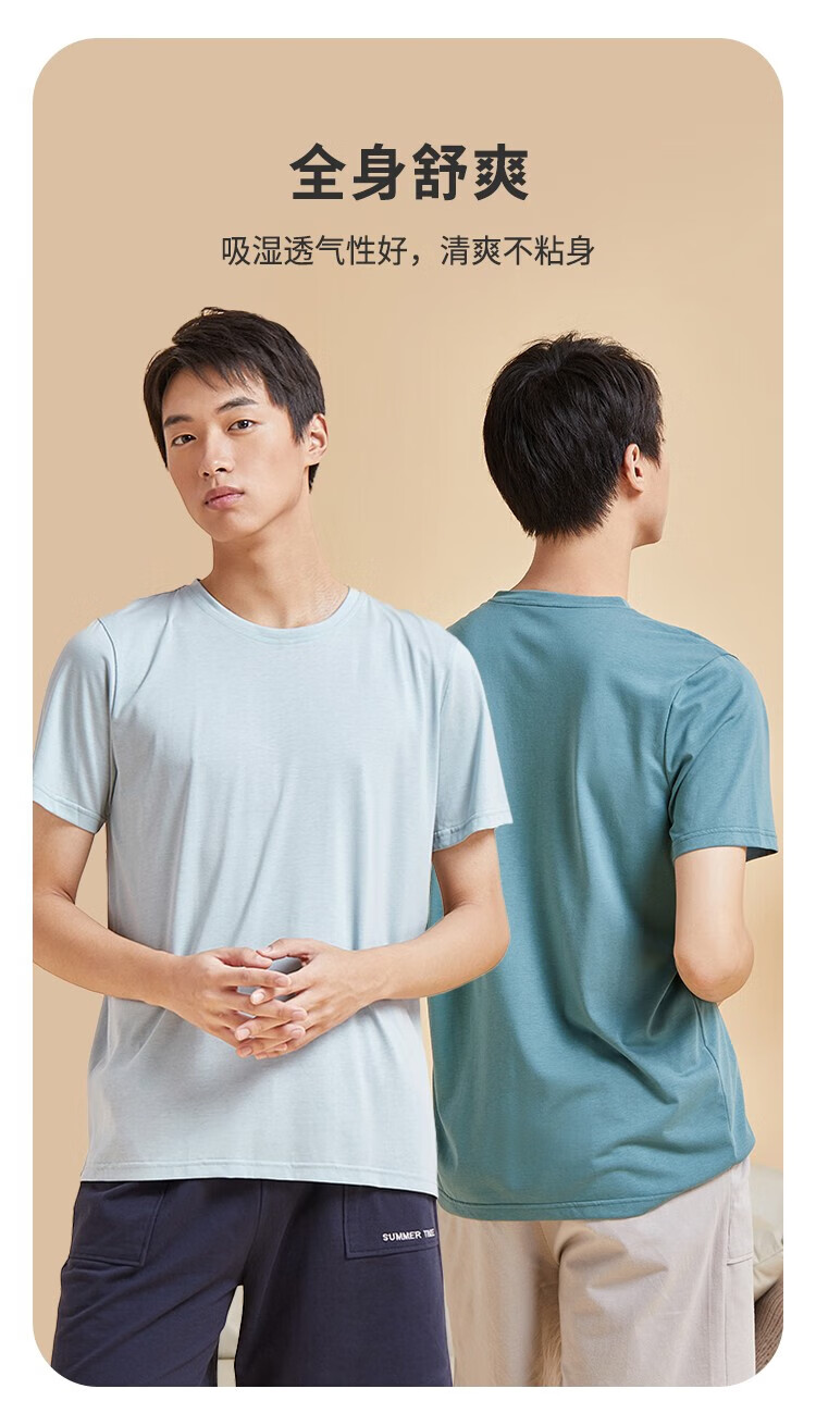 都市丽人睡衣男春夏冰爽棉质凉感柔软垂顺套头短袖上衣男士家居服 黑色 L