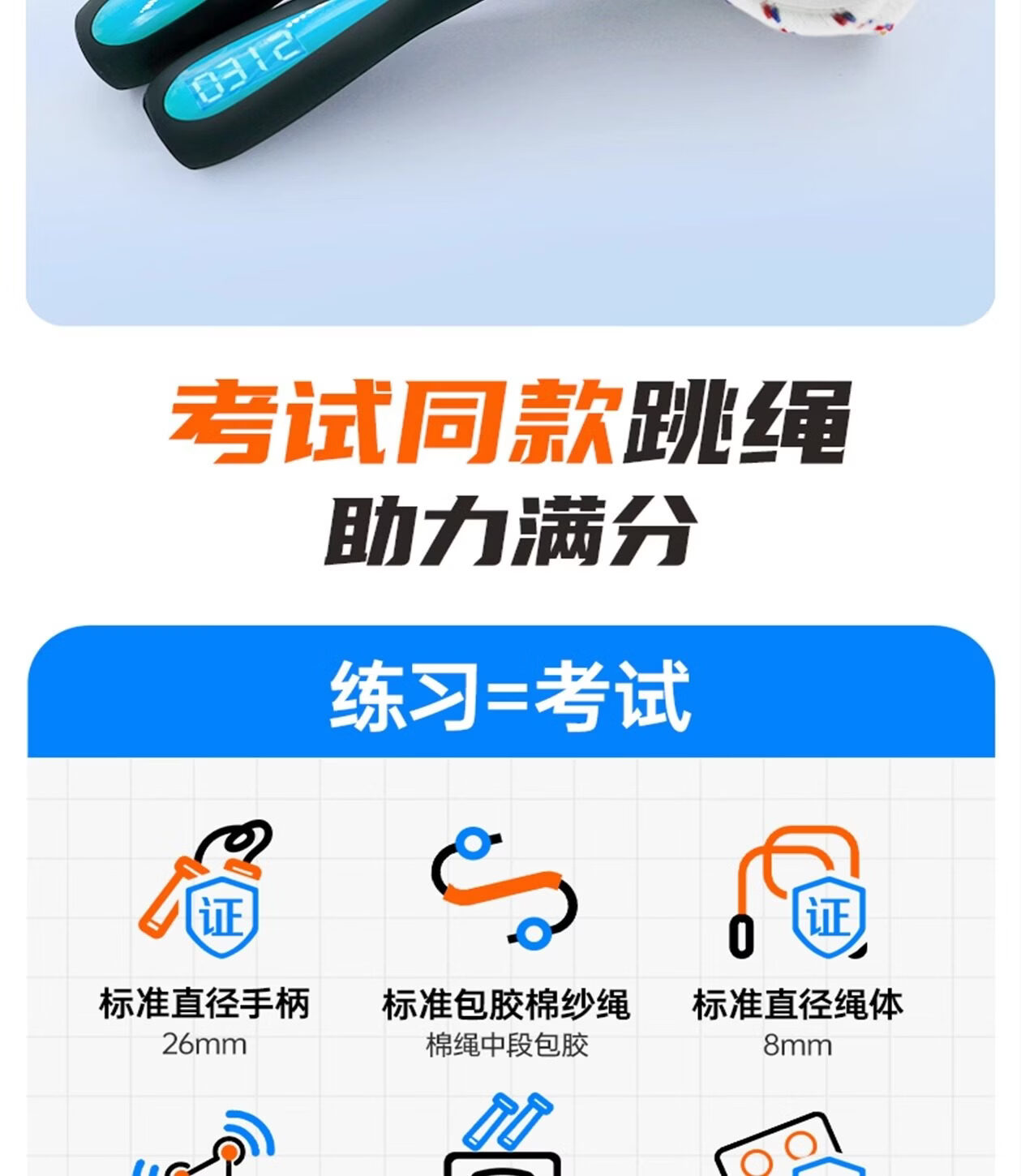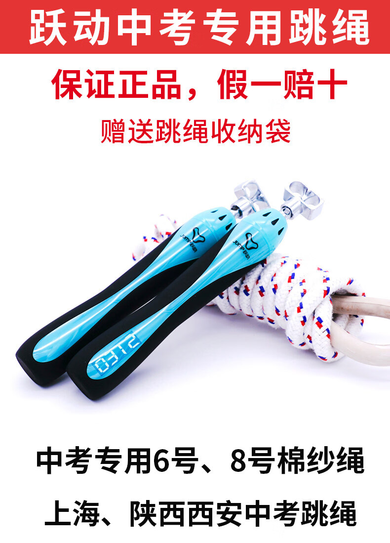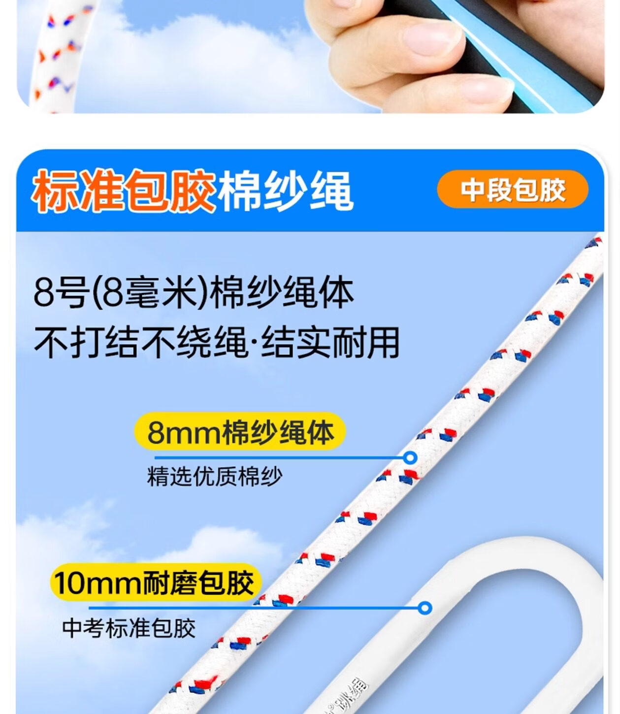 跃动上海中考跳绳专用计数初中生体育考试标准训练款学生8mm8号棉纱绳 523计数计时款6mm