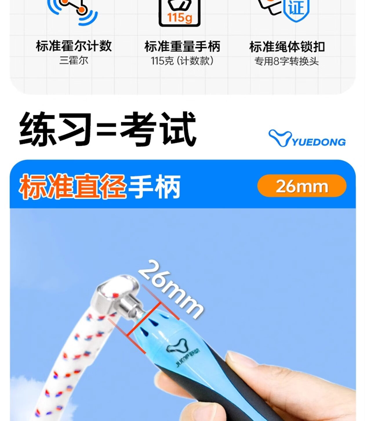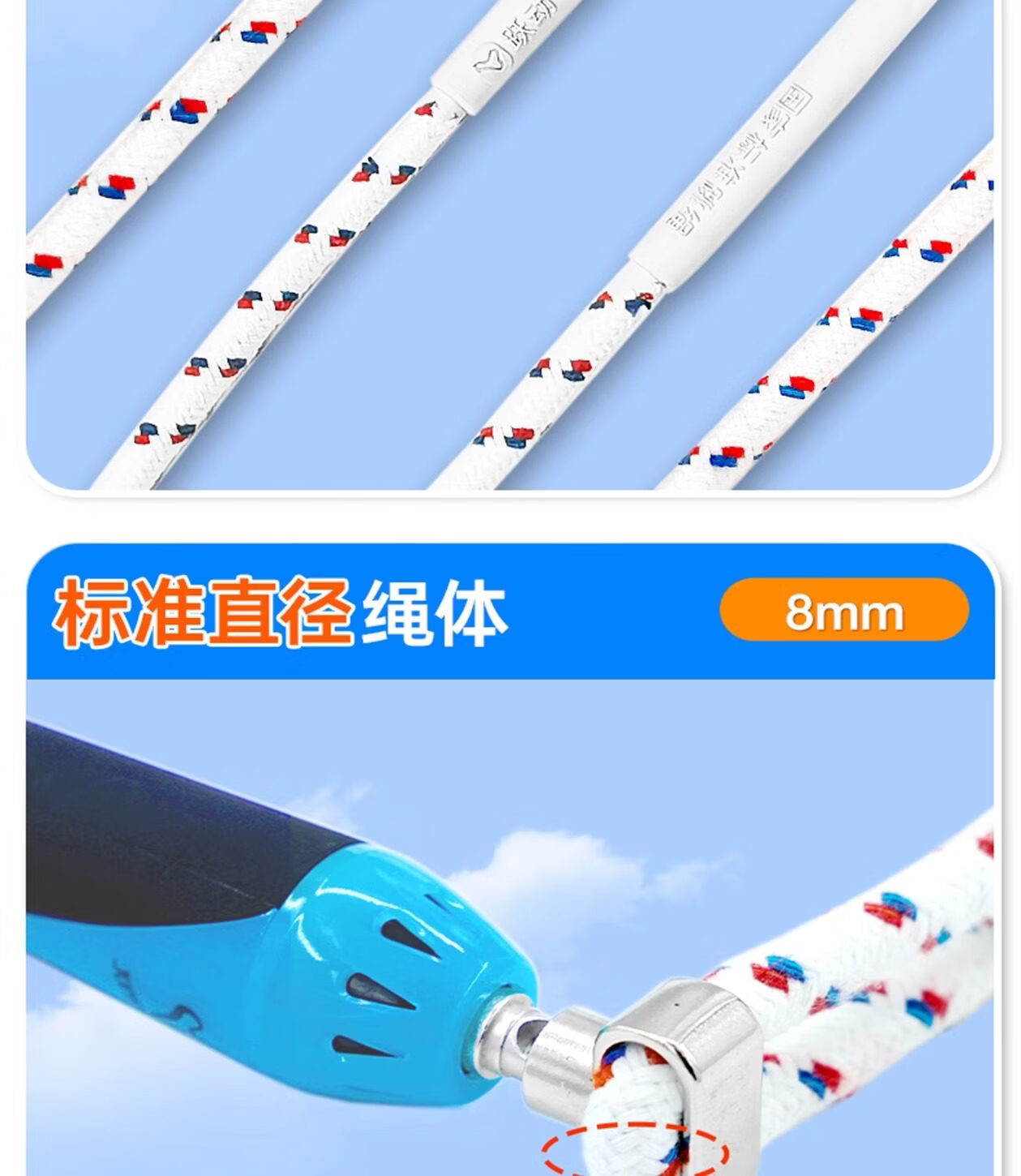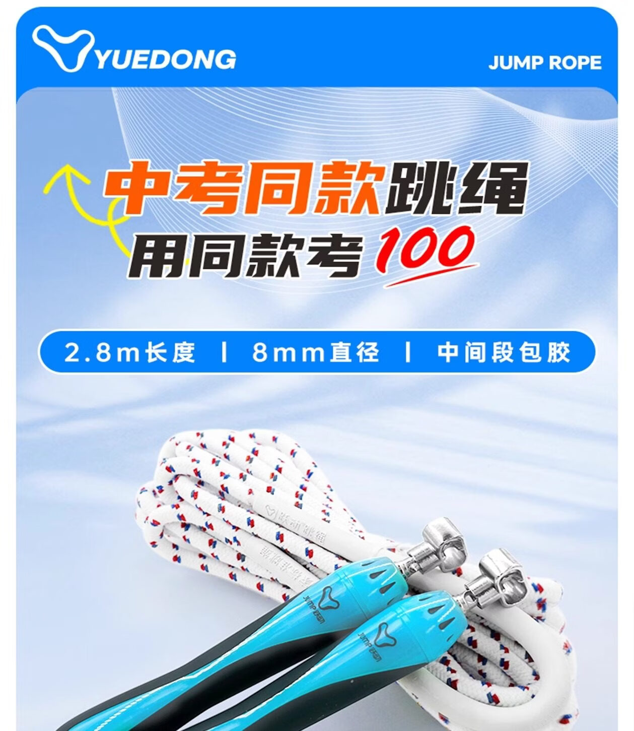 跃动上海中考跳绳专用计数初中生体育考试标准训练款学生8mm8号棉纱绳 523计数计时款6mm