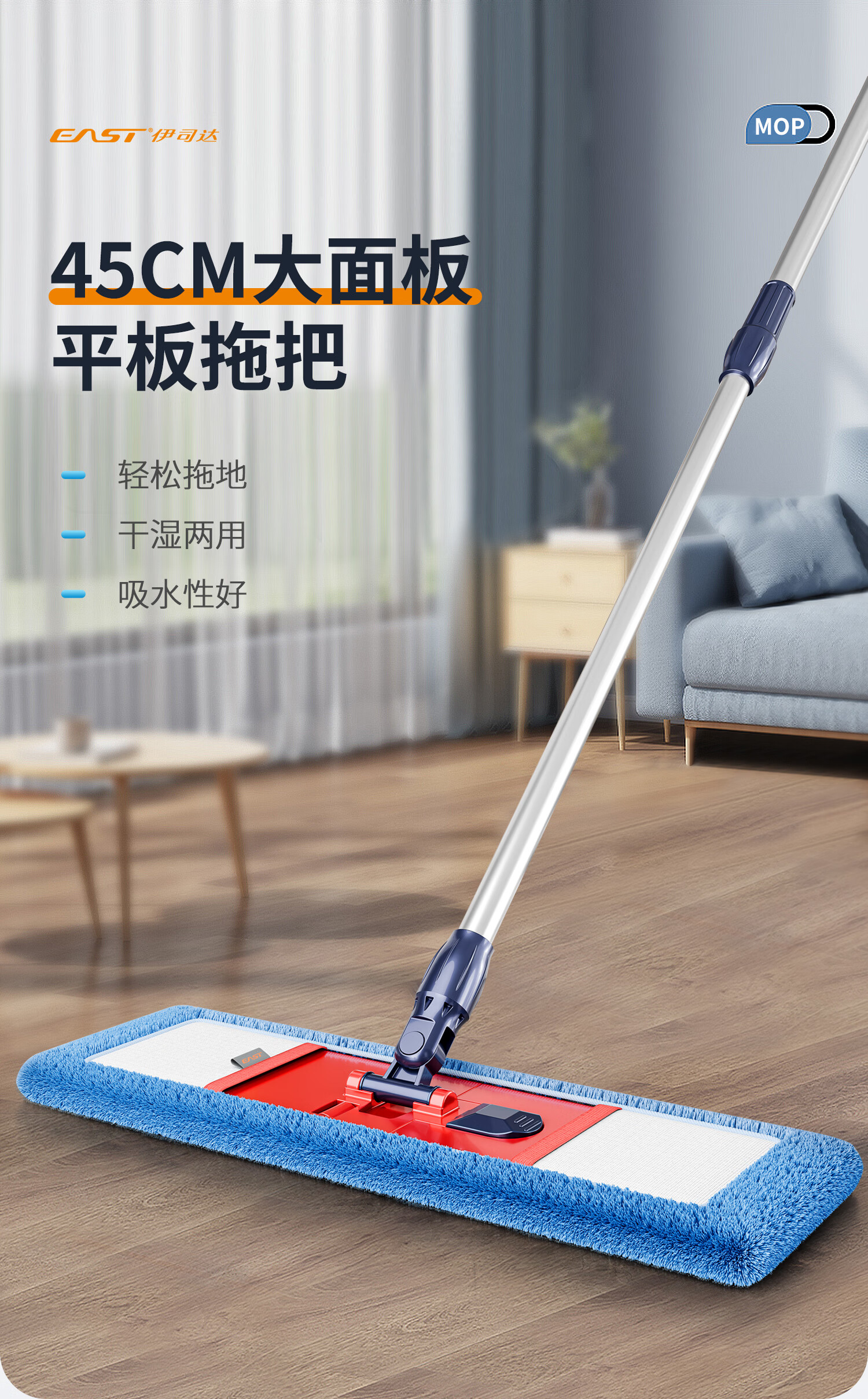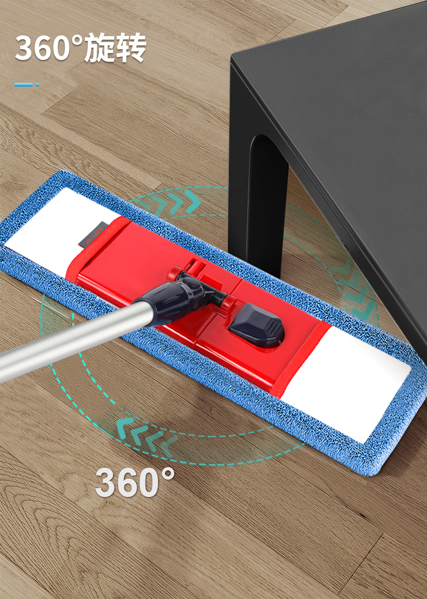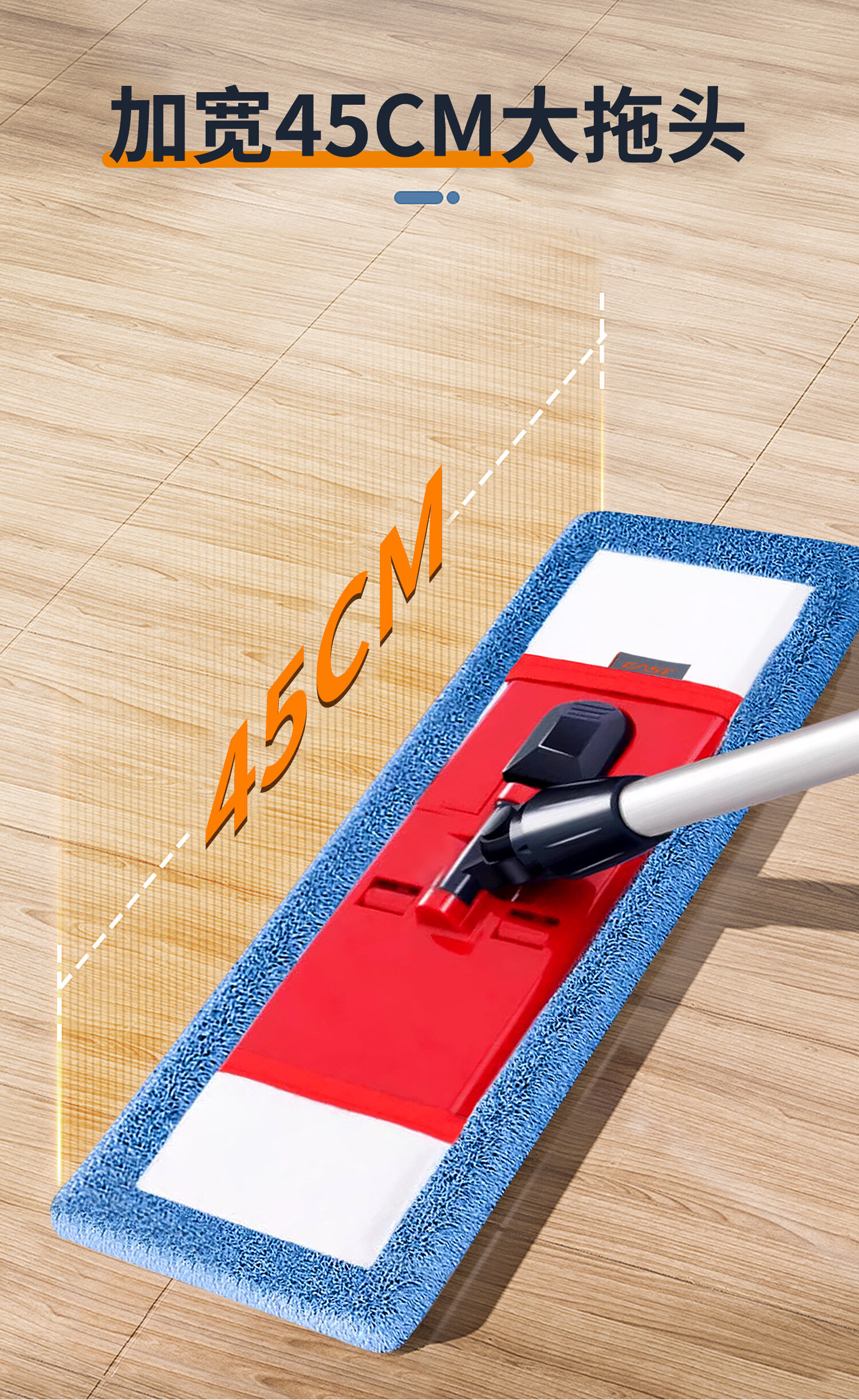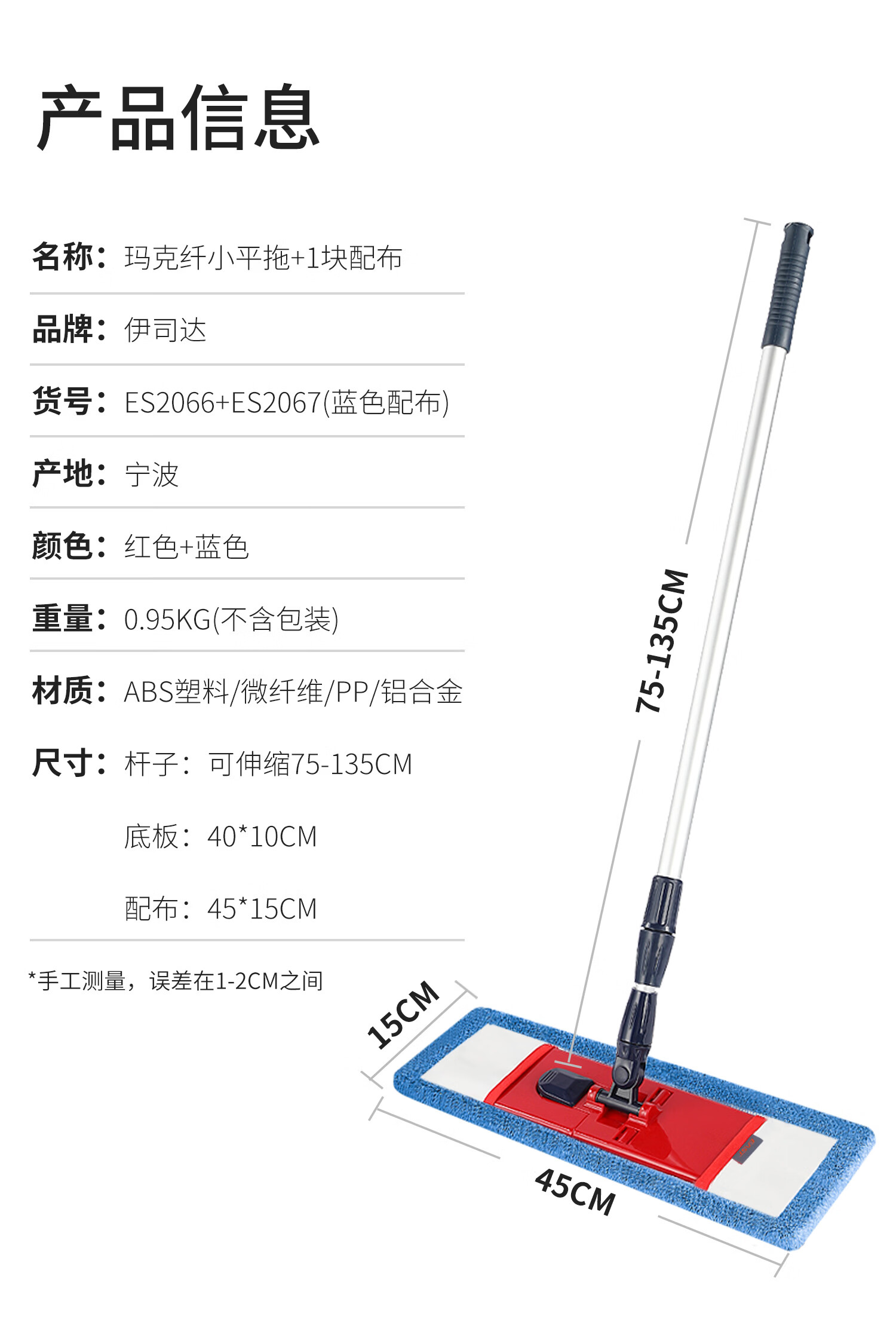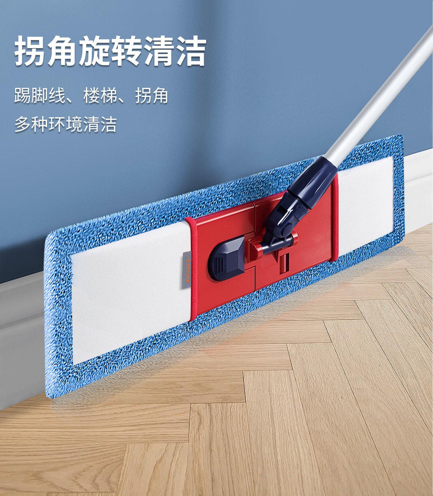 伊司达 大号尘推平板拖把家用旋转平地拖墩布微纤维拖布墩布拖头拖把 单拖把+1块配布【共2块配布】