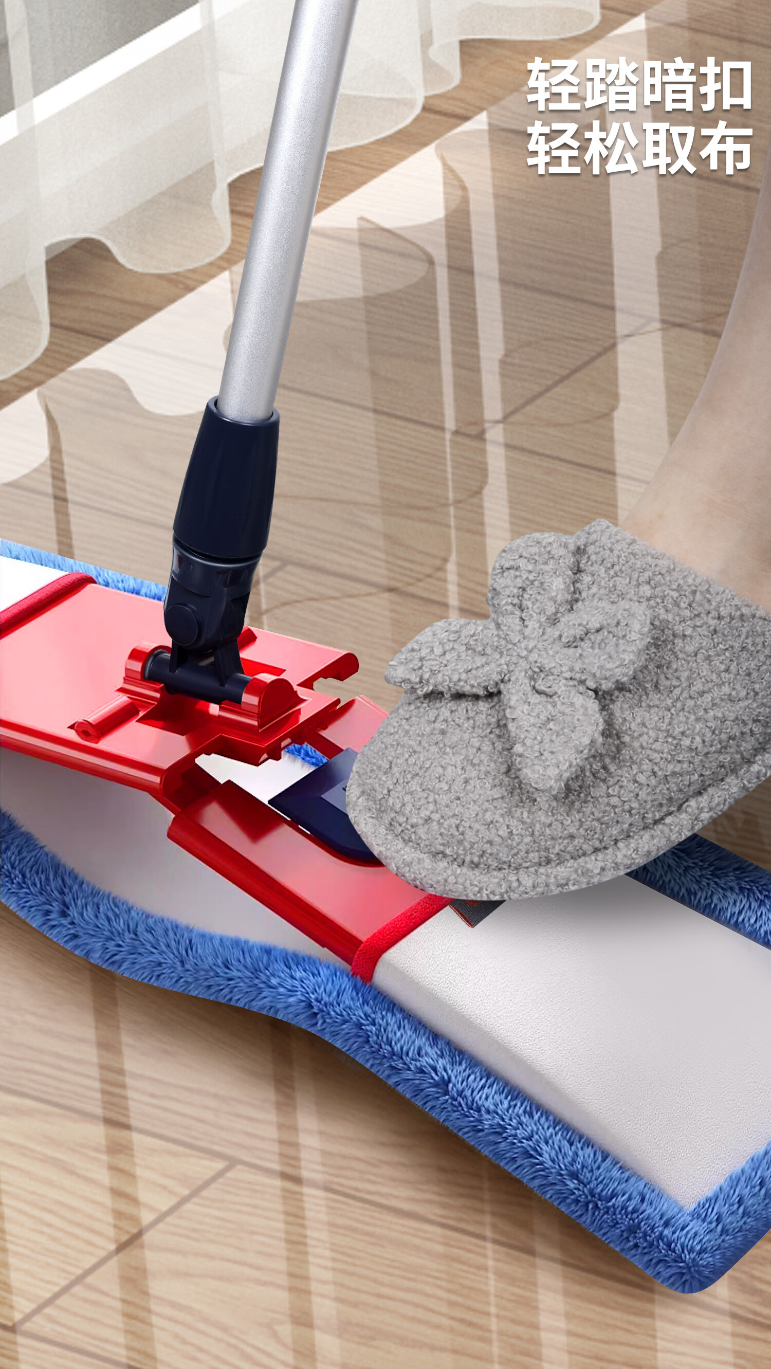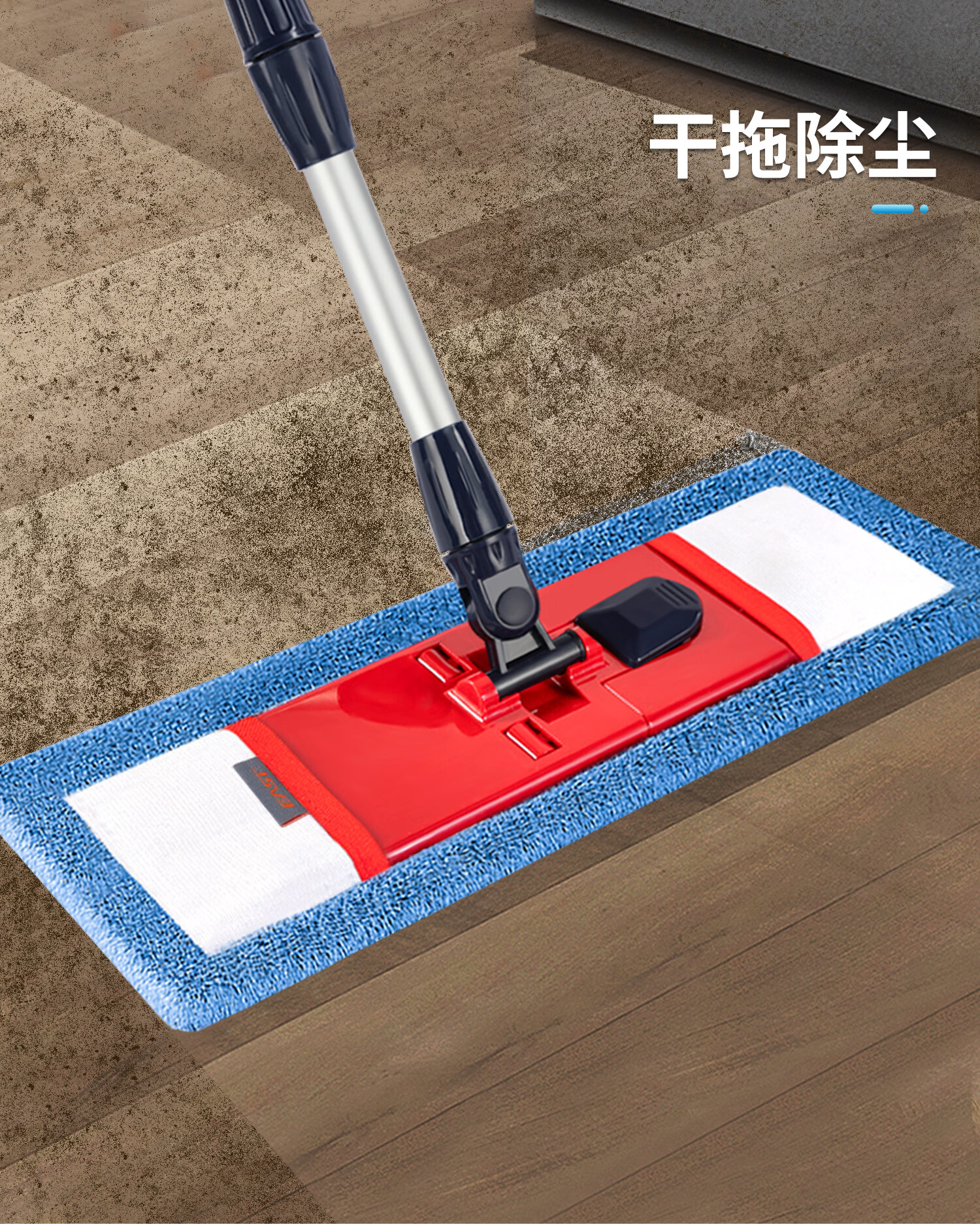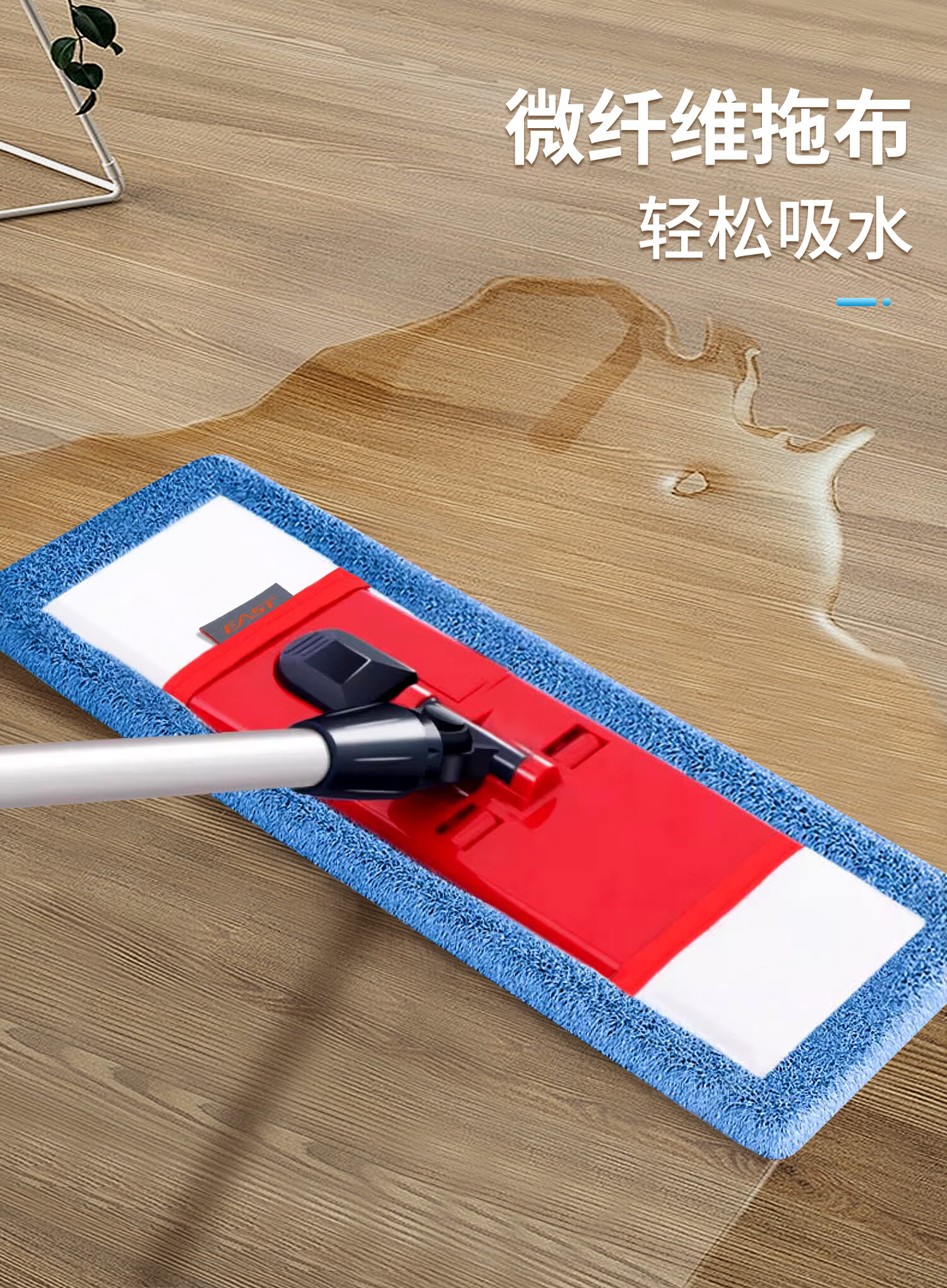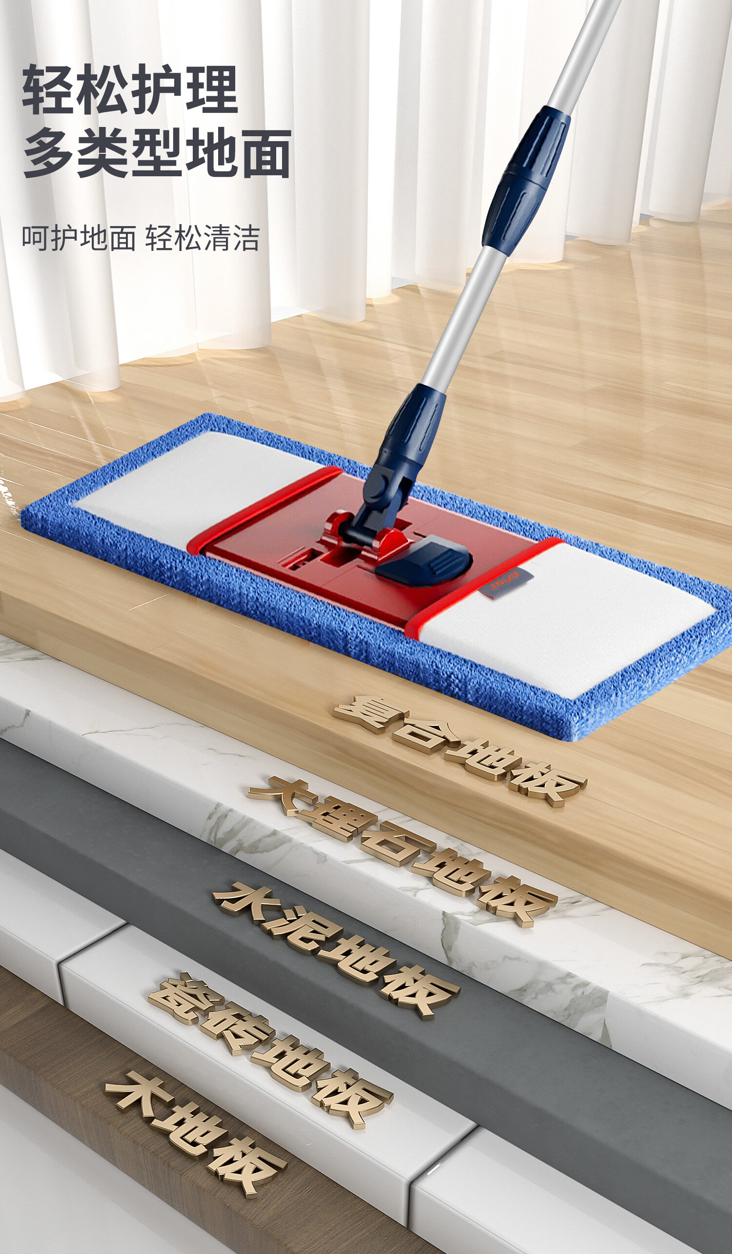 伊司达 大号尘推平板拖把家用旋转平地拖墩布微纤维拖布墩布拖头拖把 单拖把+1块配布【共2块配布】