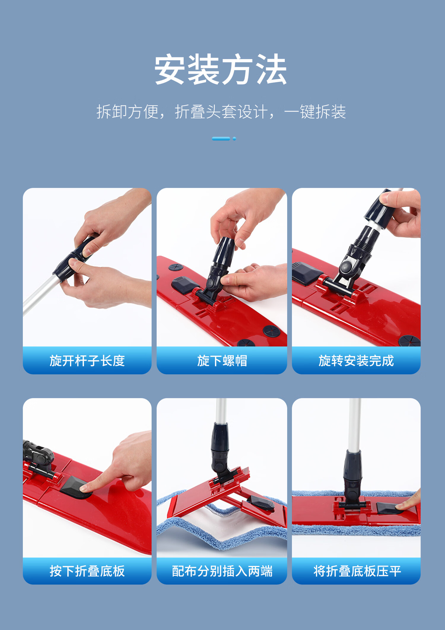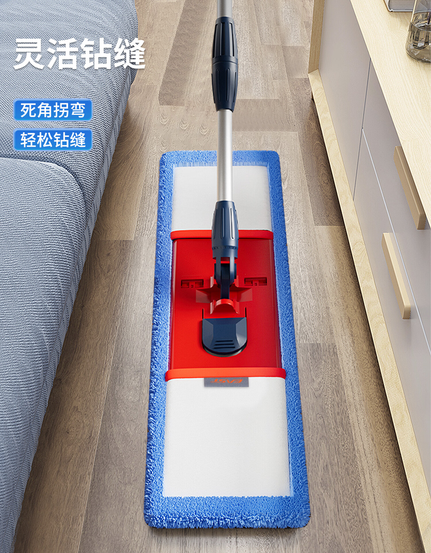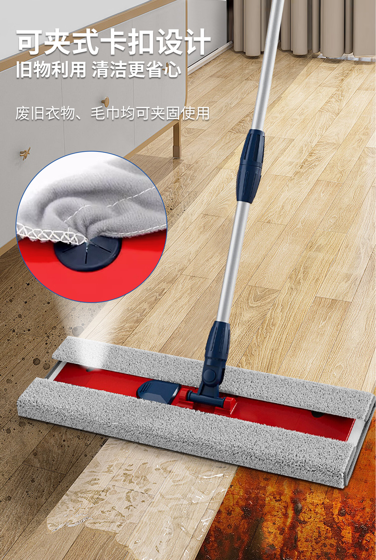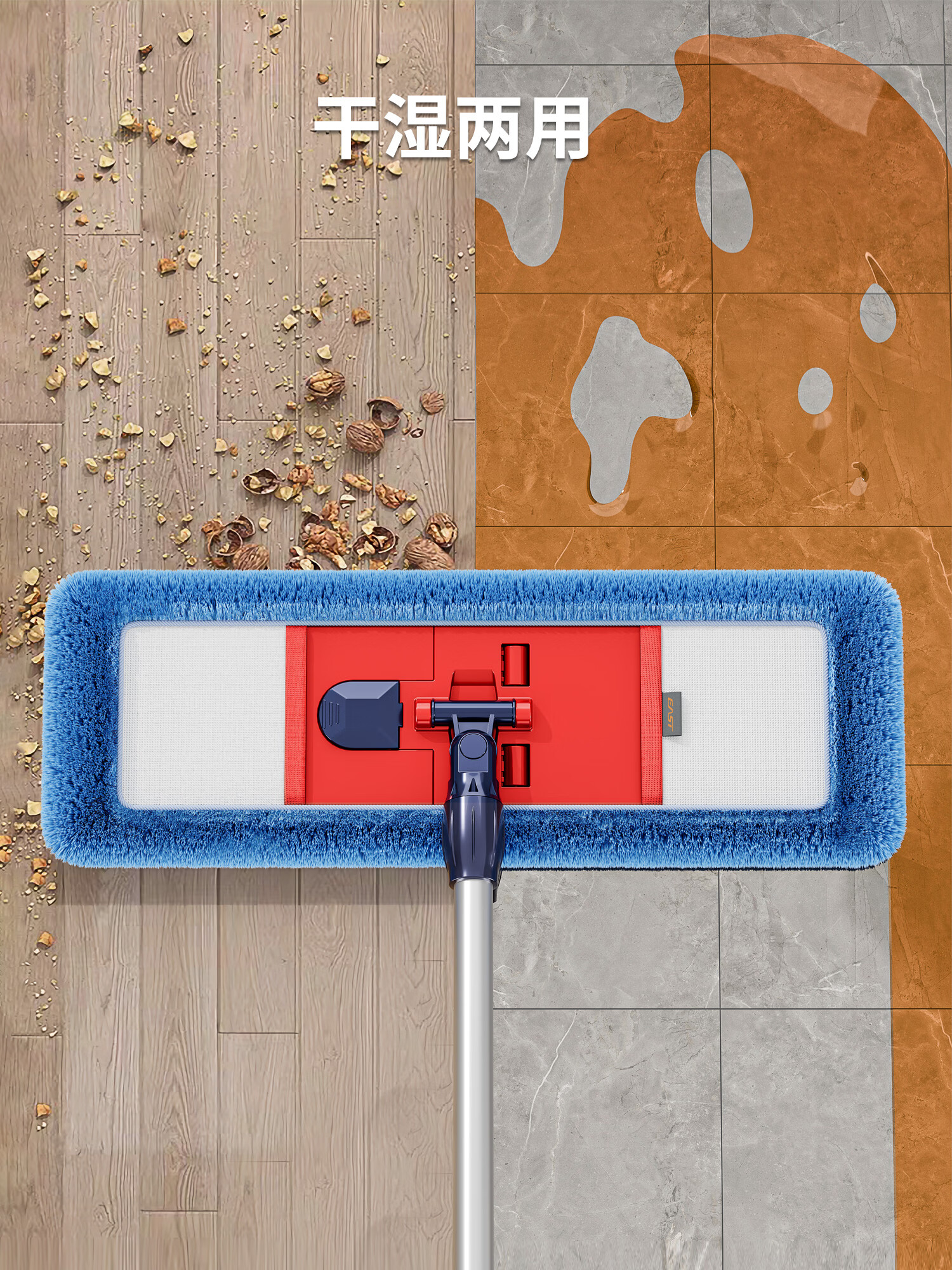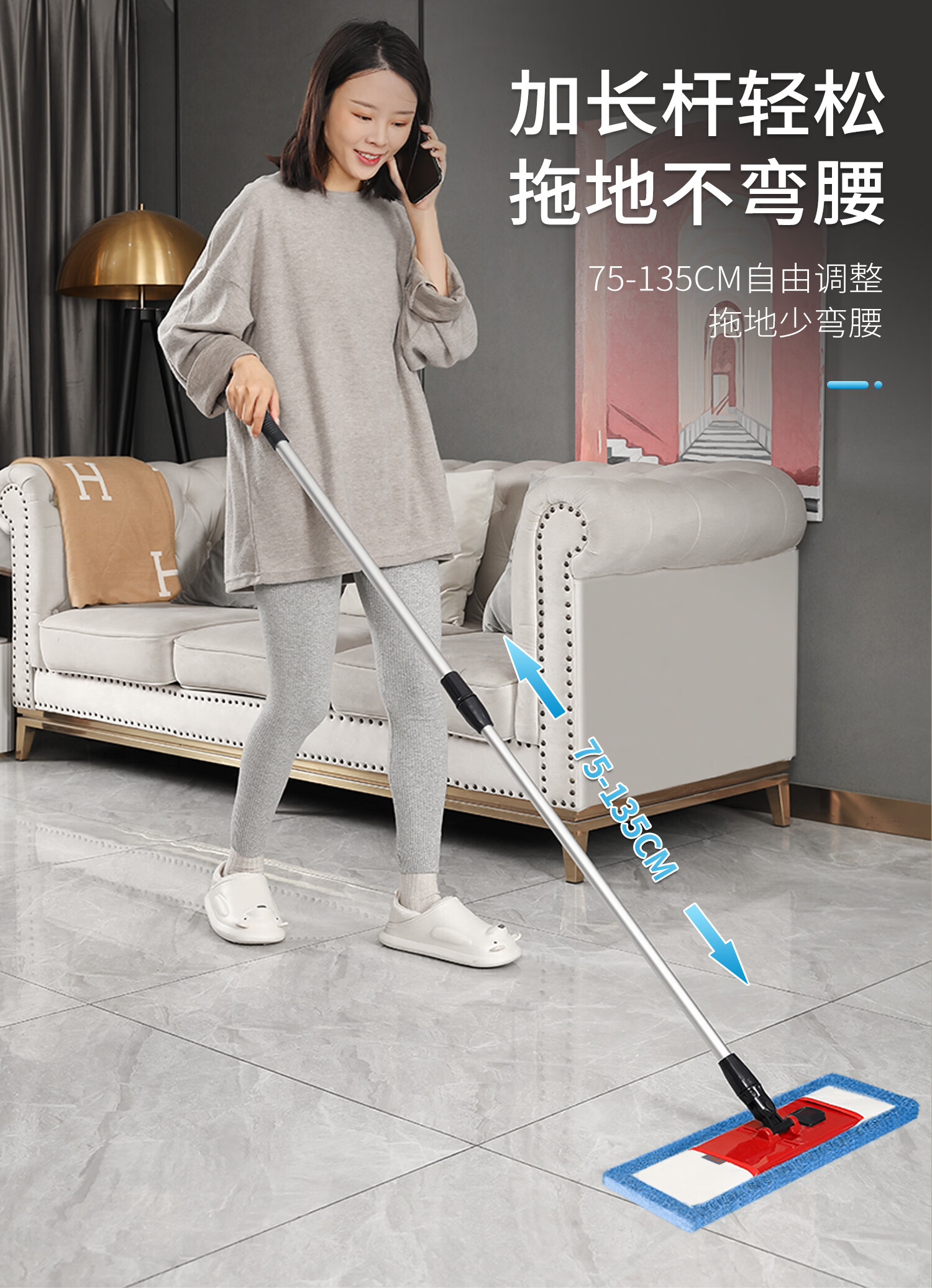 伊司达 大号尘推平板拖把家用旋转平地拖墩布微纤维拖布墩布拖头拖把 单拖把+1块配布【共2块配布】