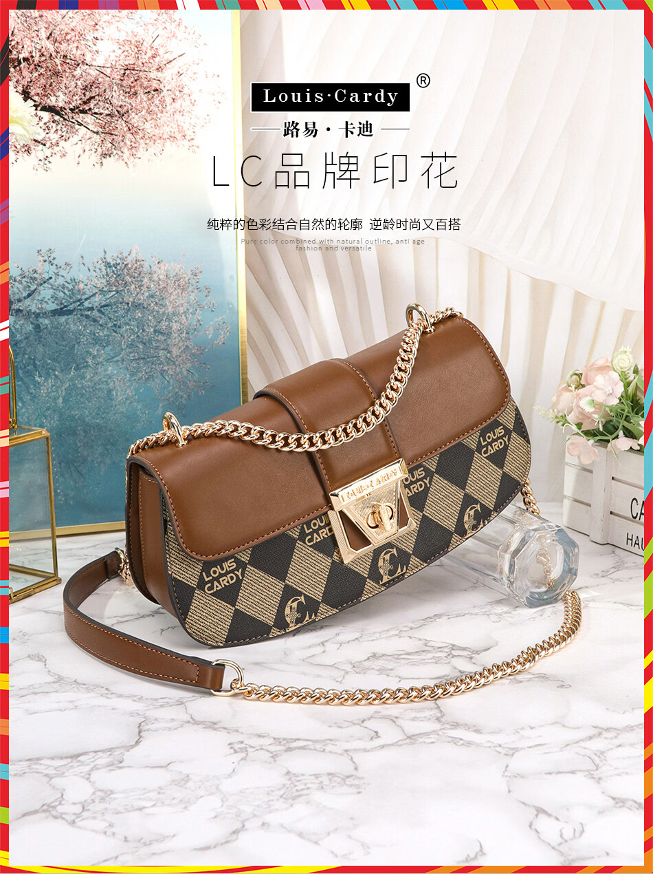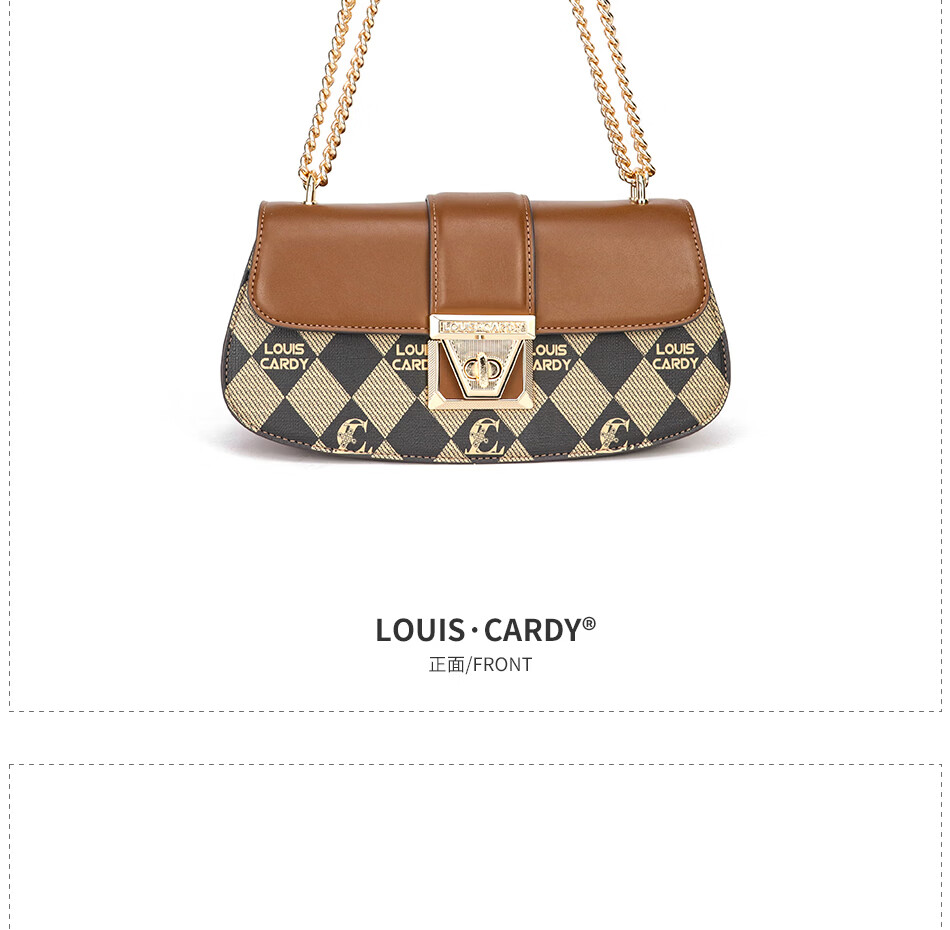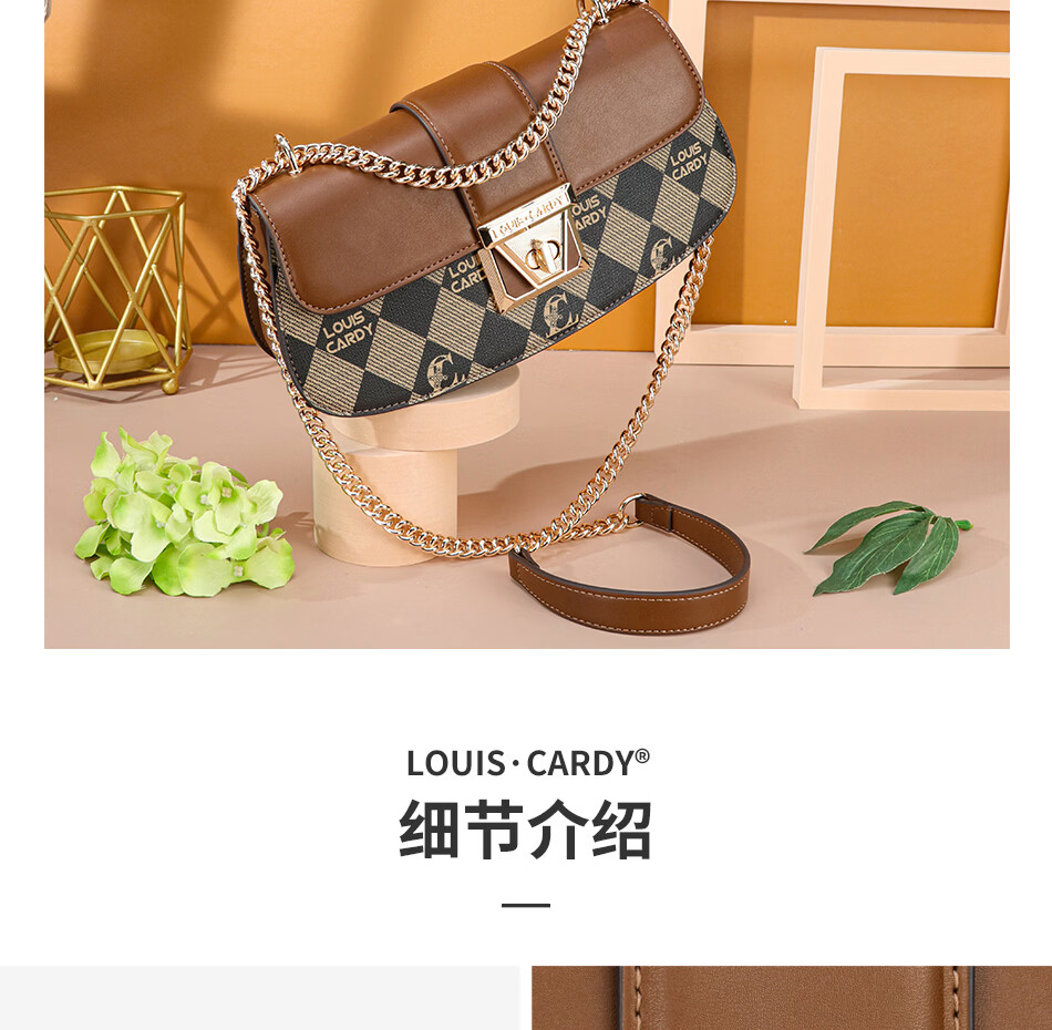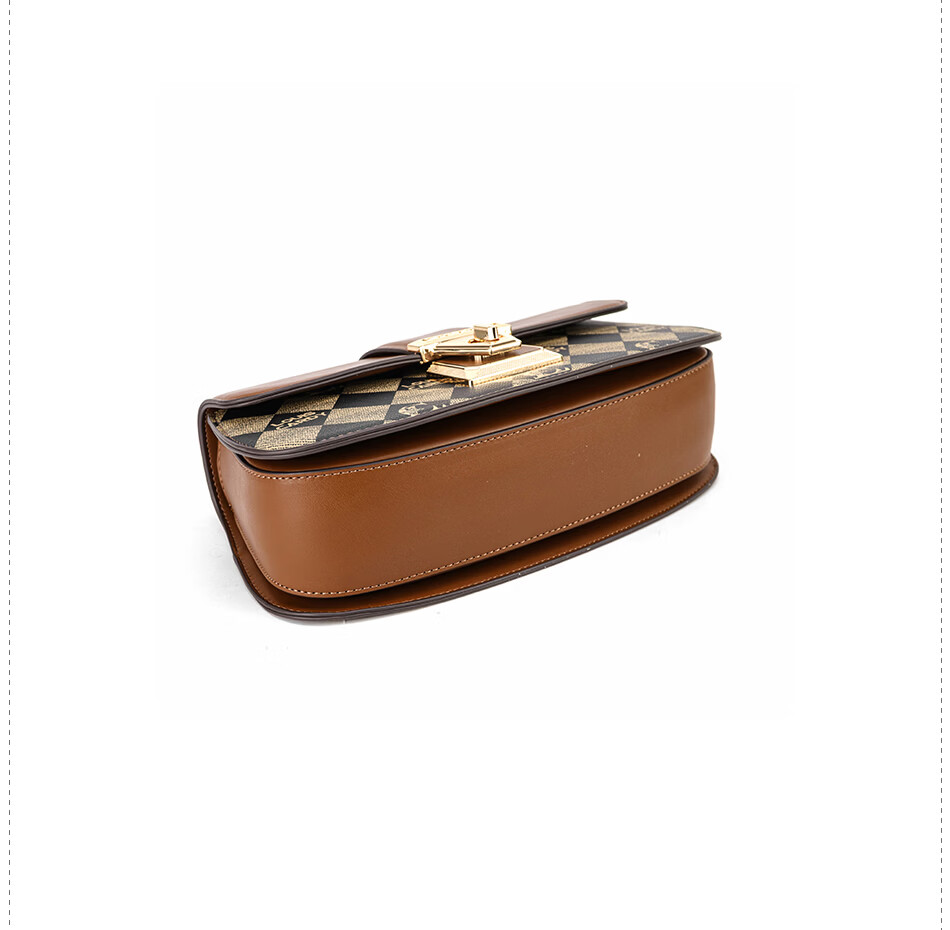 路易.卡迪马鞍包 复古老花棋盘格单肩斜挎 送女友老婆生日圣诞元旦新年礼物 棕色 情人节礼物