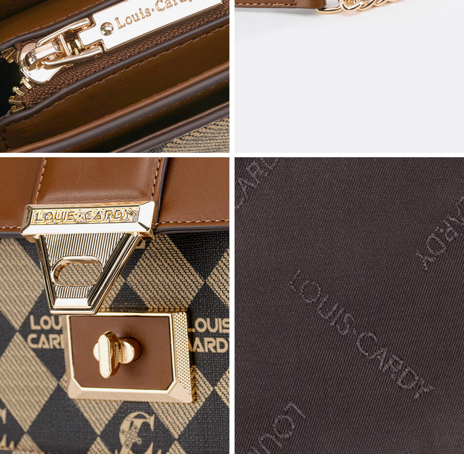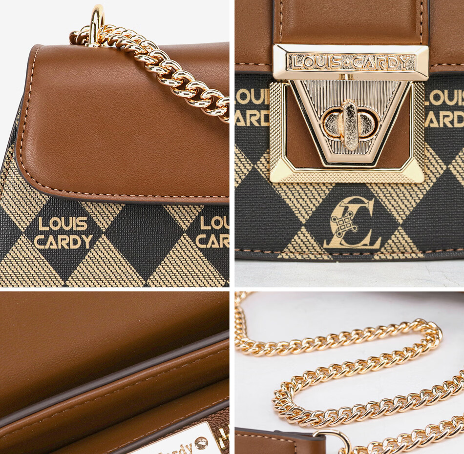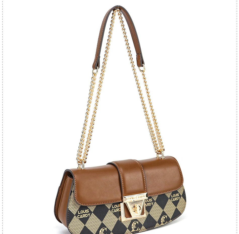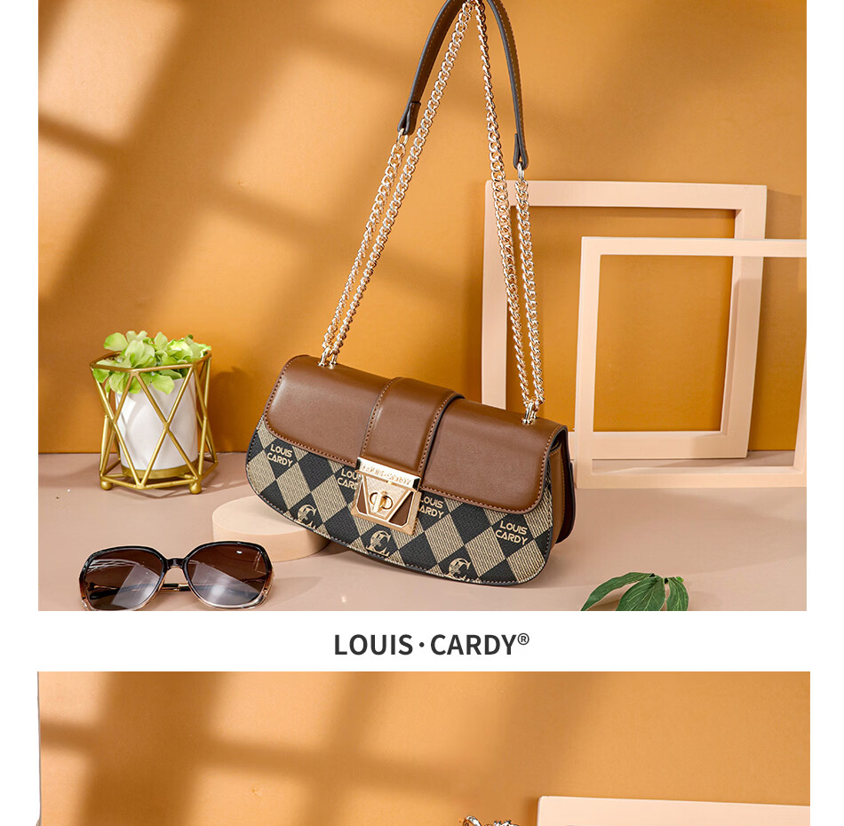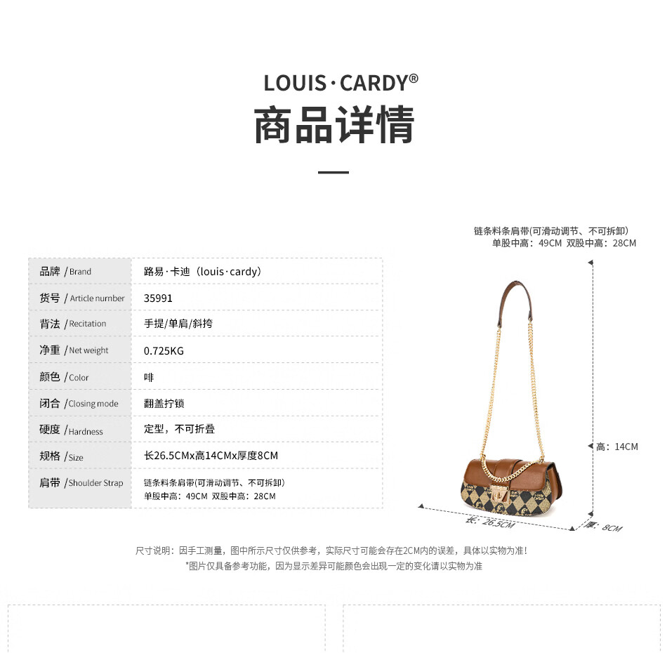 路易.卡迪马鞍包 复古老花棋盘格单肩斜挎 送女友老婆生日圣诞元旦新年礼物 棕色 情人节礼物