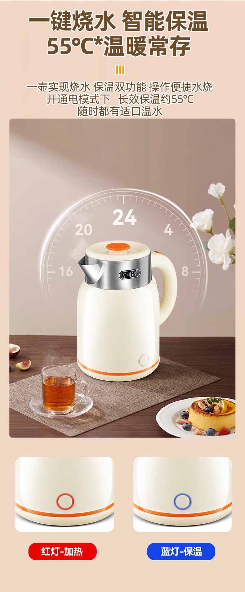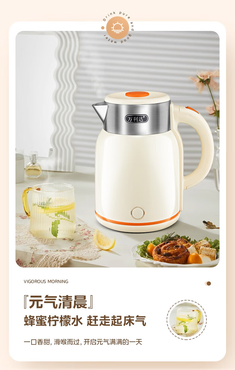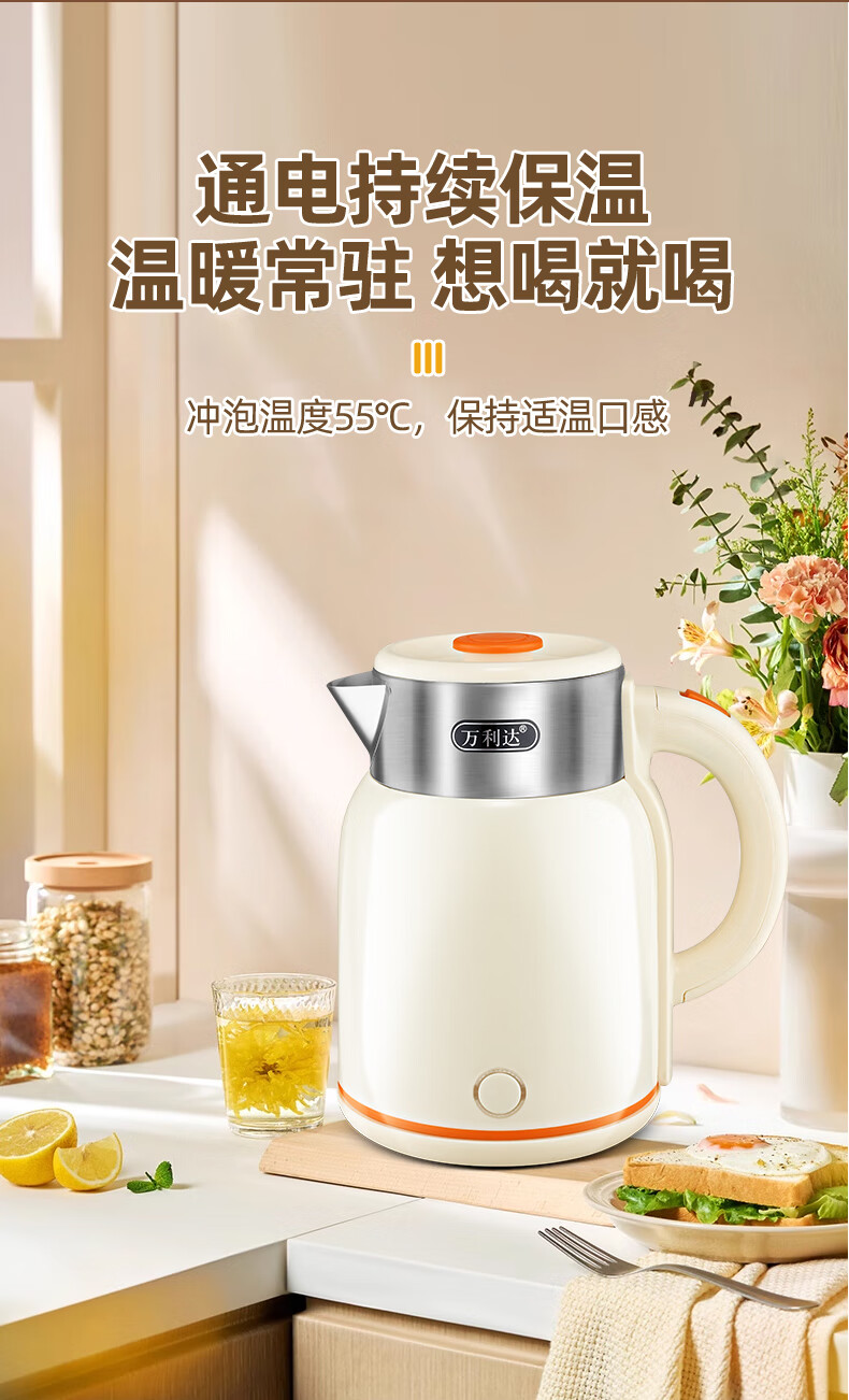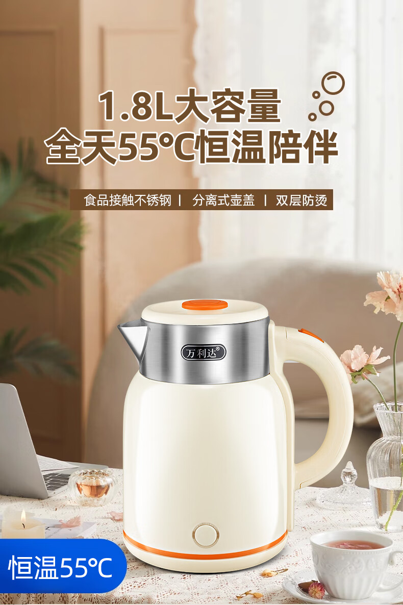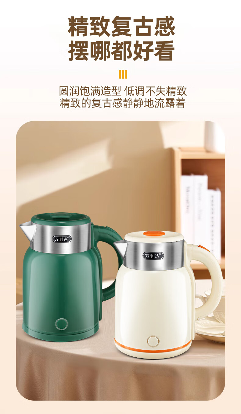 万利达【甄选好物】电热水壶家用烧水壶学生宿舍保温开水壶1.8L升大容量电水壶 1.8L 绿色保温