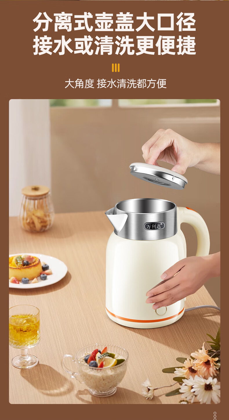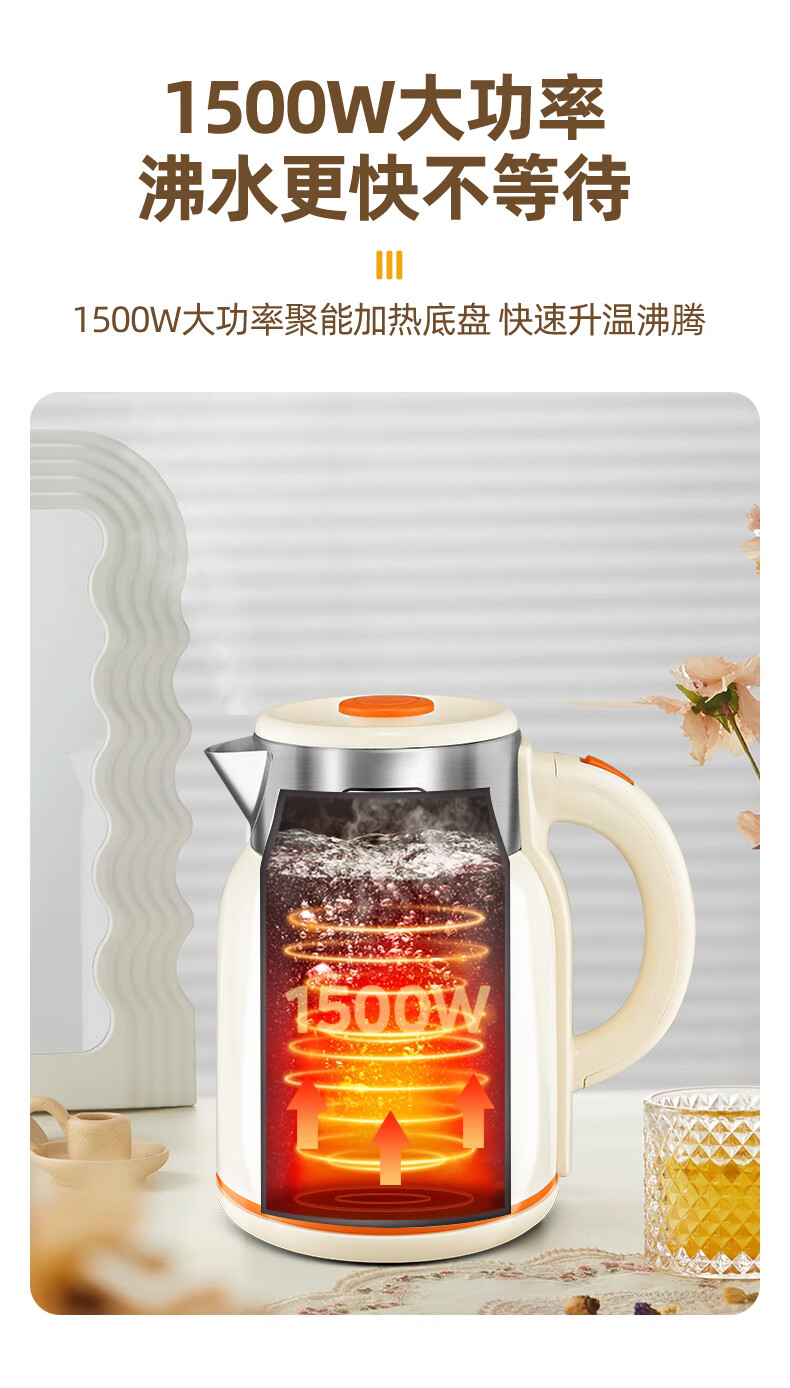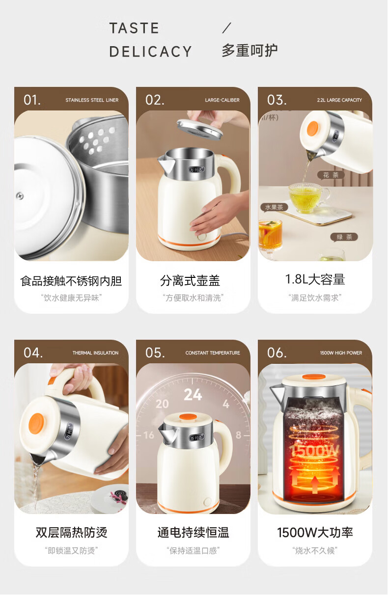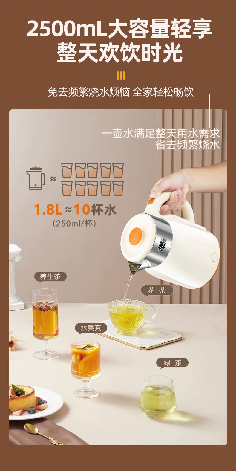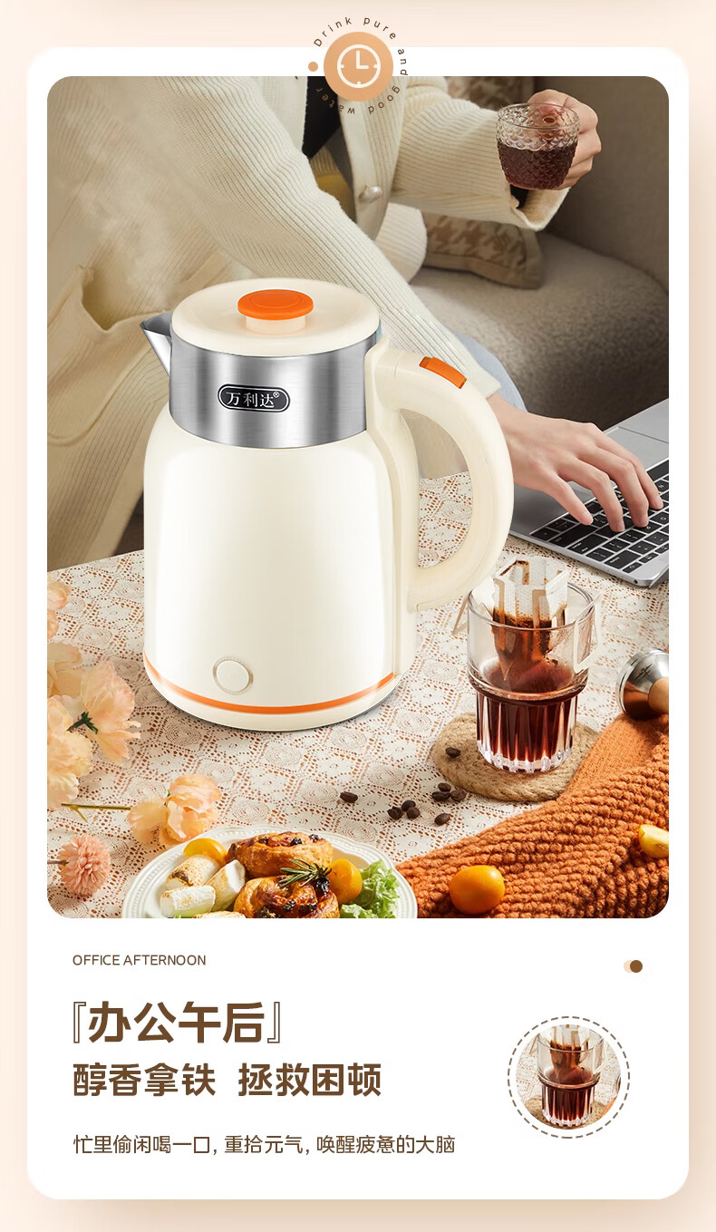 万利达【甄选好物】电热水壶家用烧水壶学生宿舍保温开水壶1.8L升大容量电水壶 1.8L 绿色保温