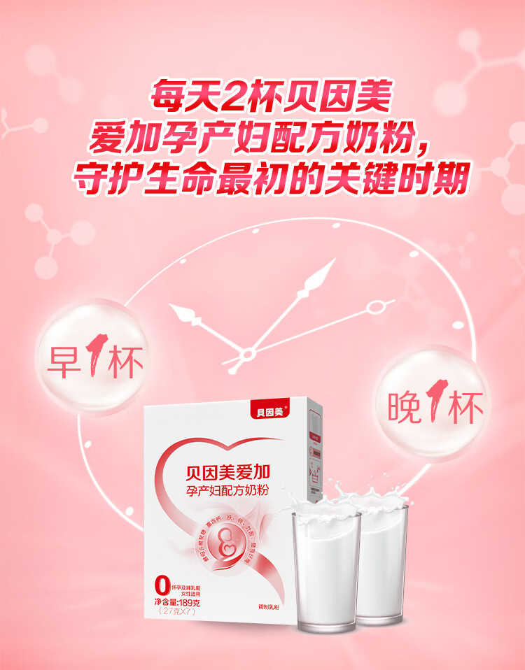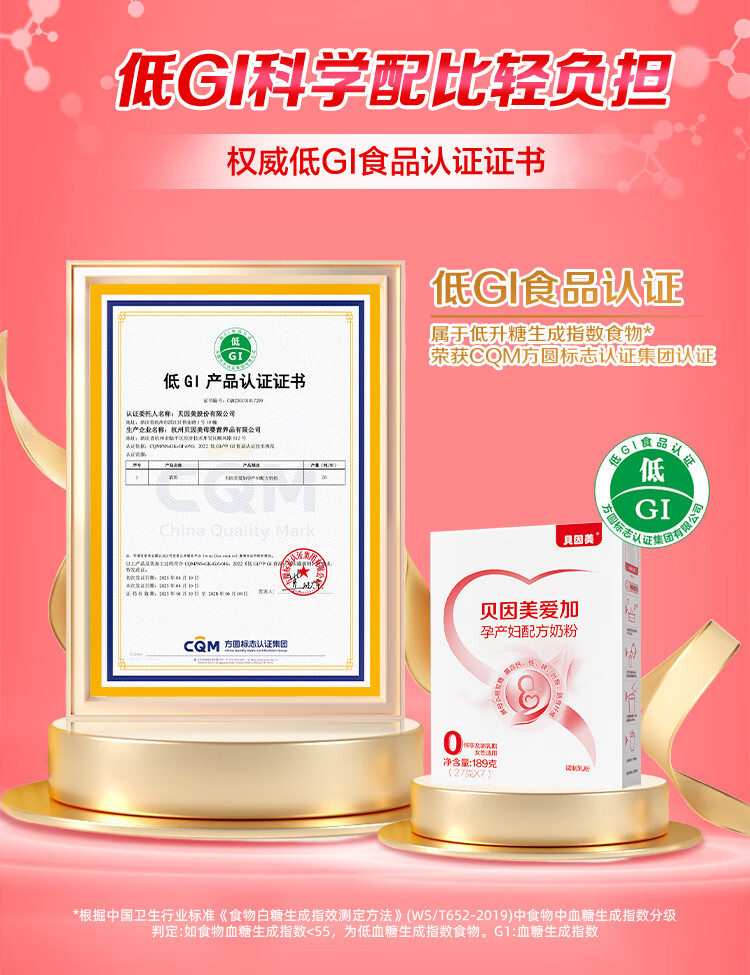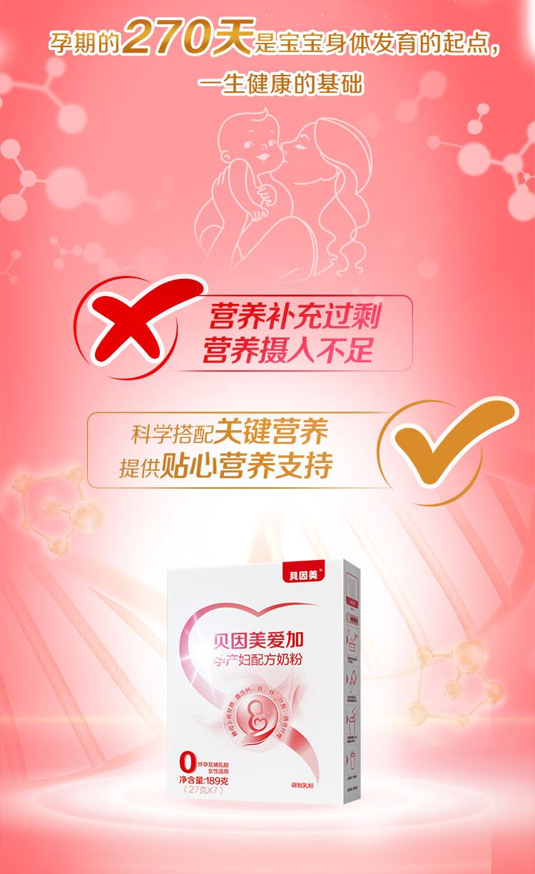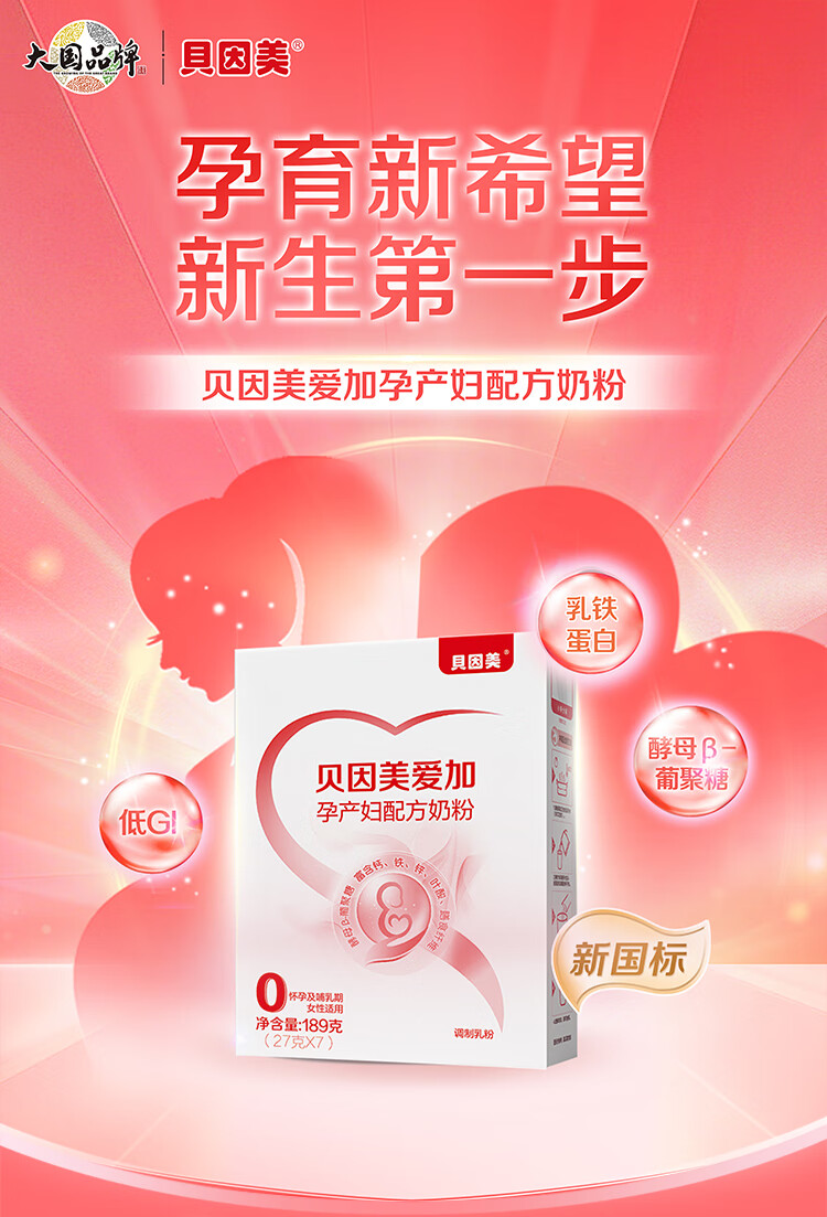 贝因美(Beingmate)爱加孕产妇奶粉盒装189g 低GI科学配比 含乳铁蛋白膳食纤维