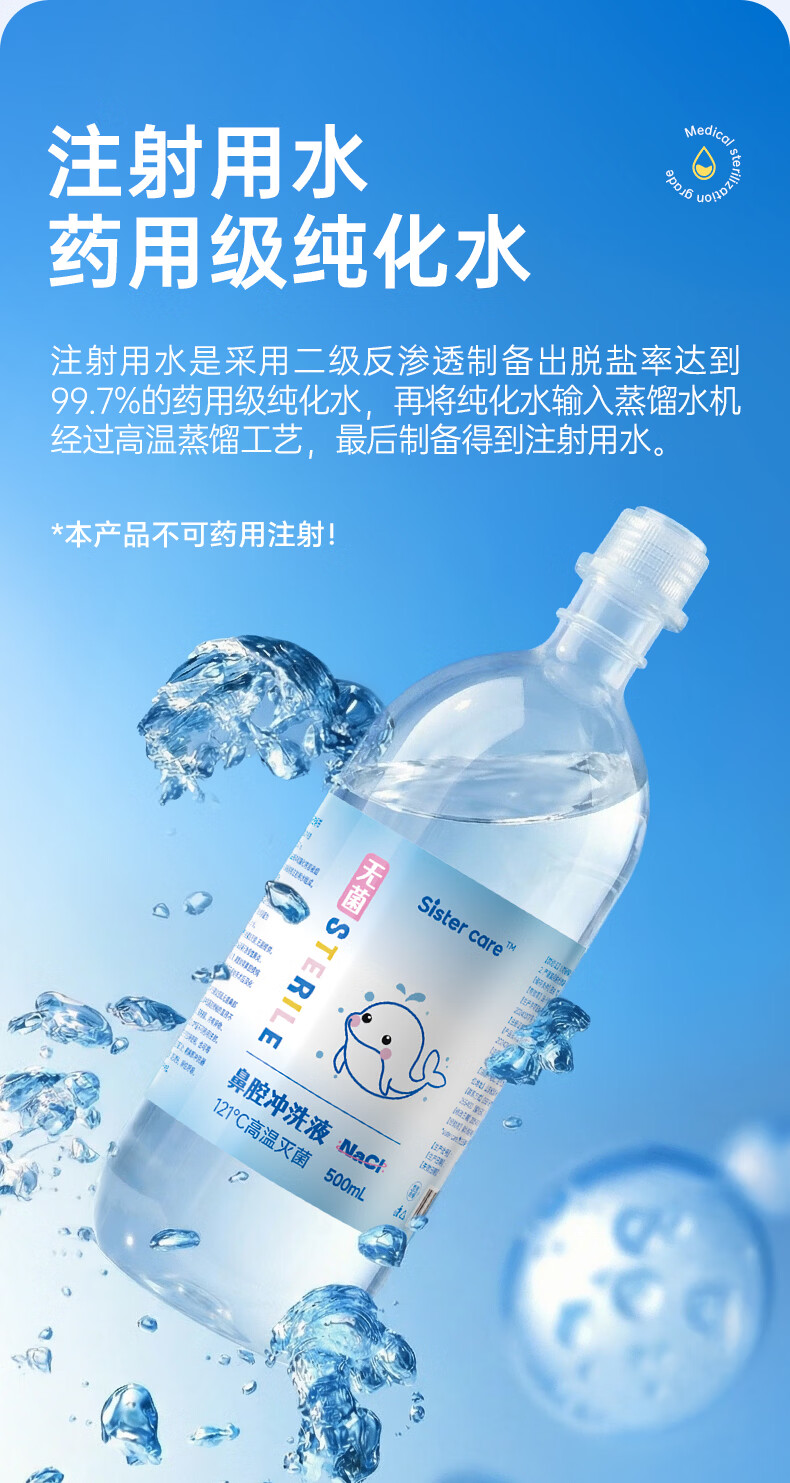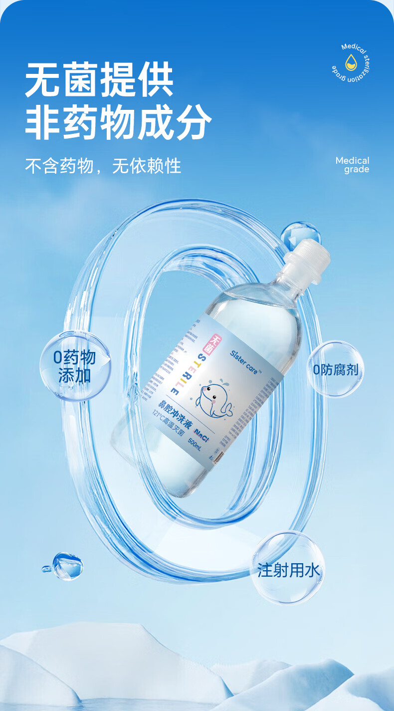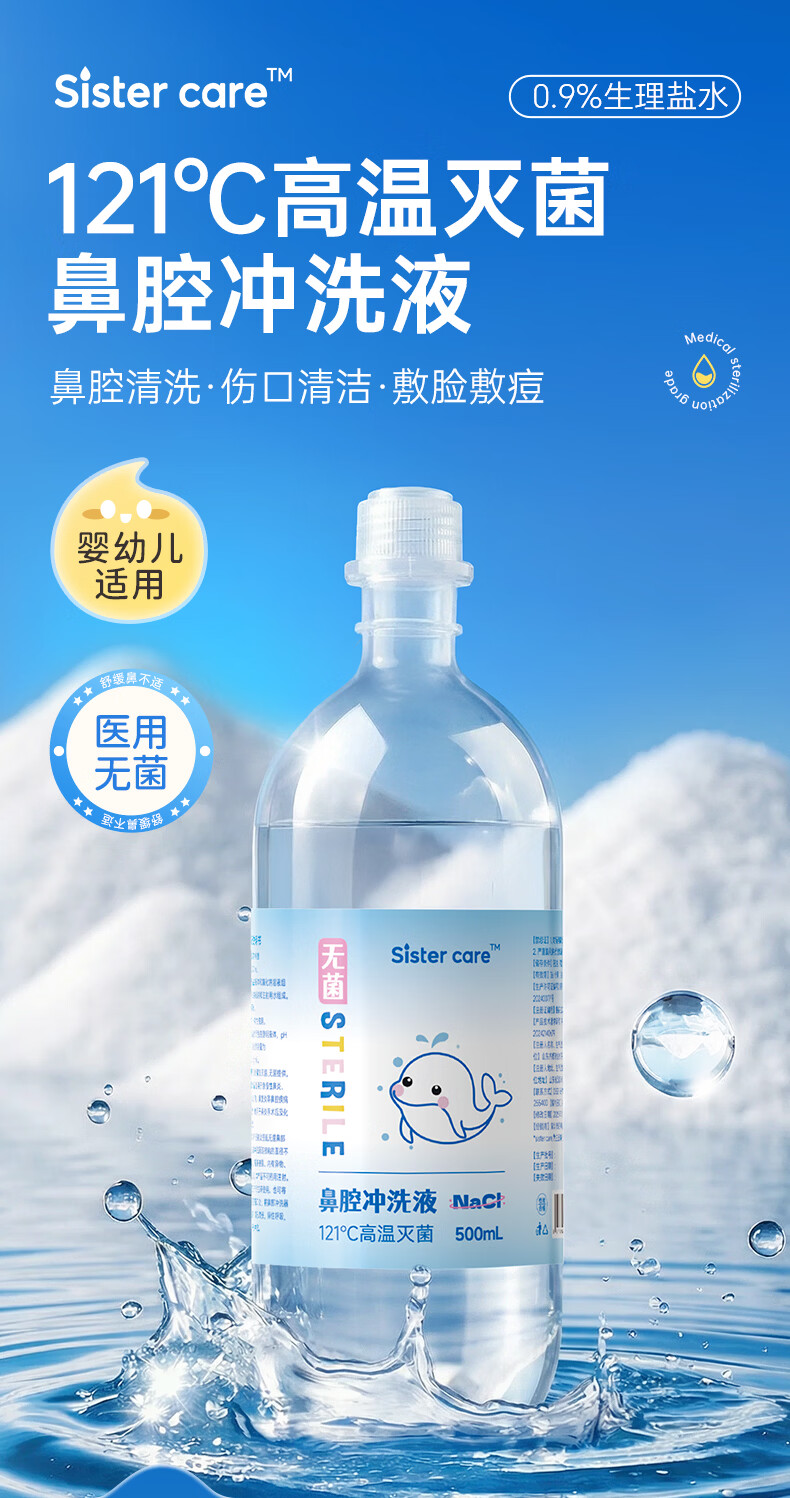 sister care无菌生理盐水婴儿鼻腔清洗医用海盐水敷脸雾化氯化钠清洗液500mL