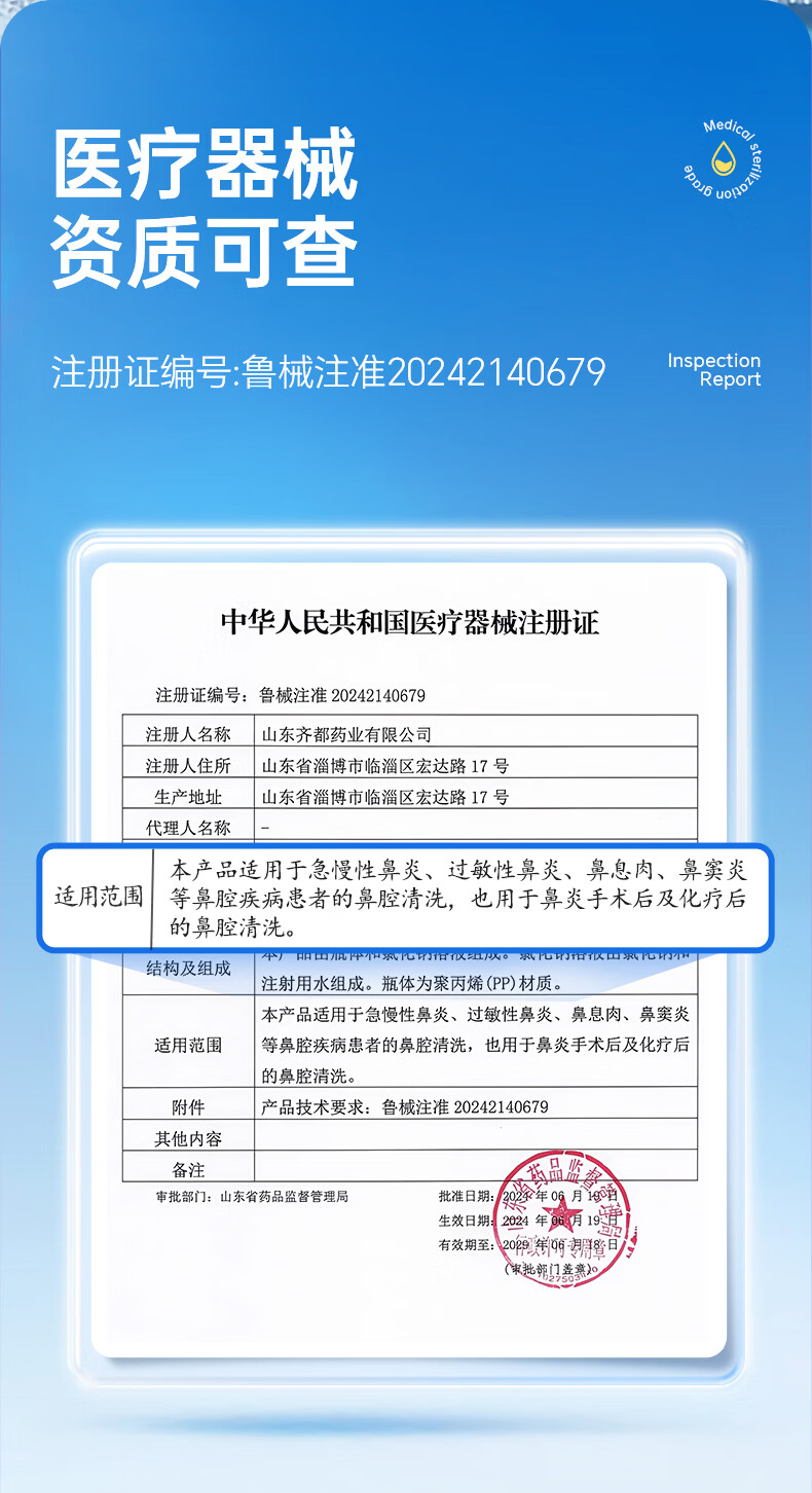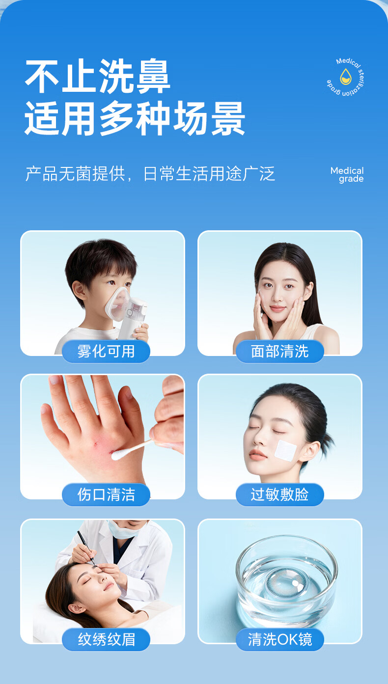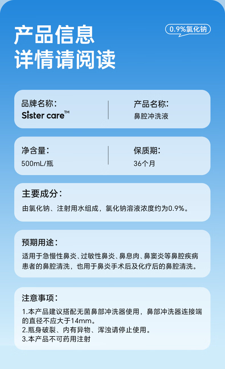 sister care无菌生理盐水婴儿鼻腔清洗医用海盐水敷脸雾化氯化钠清洗液500mL