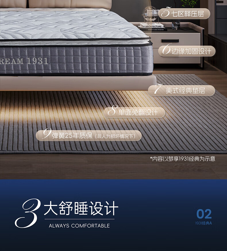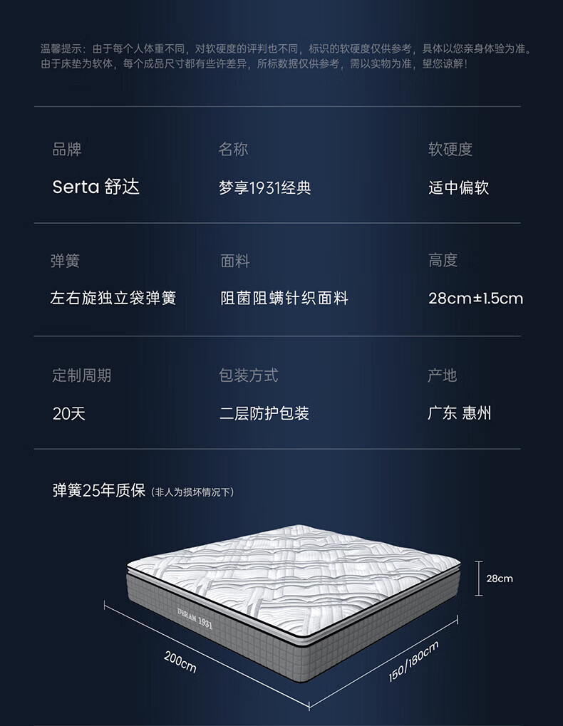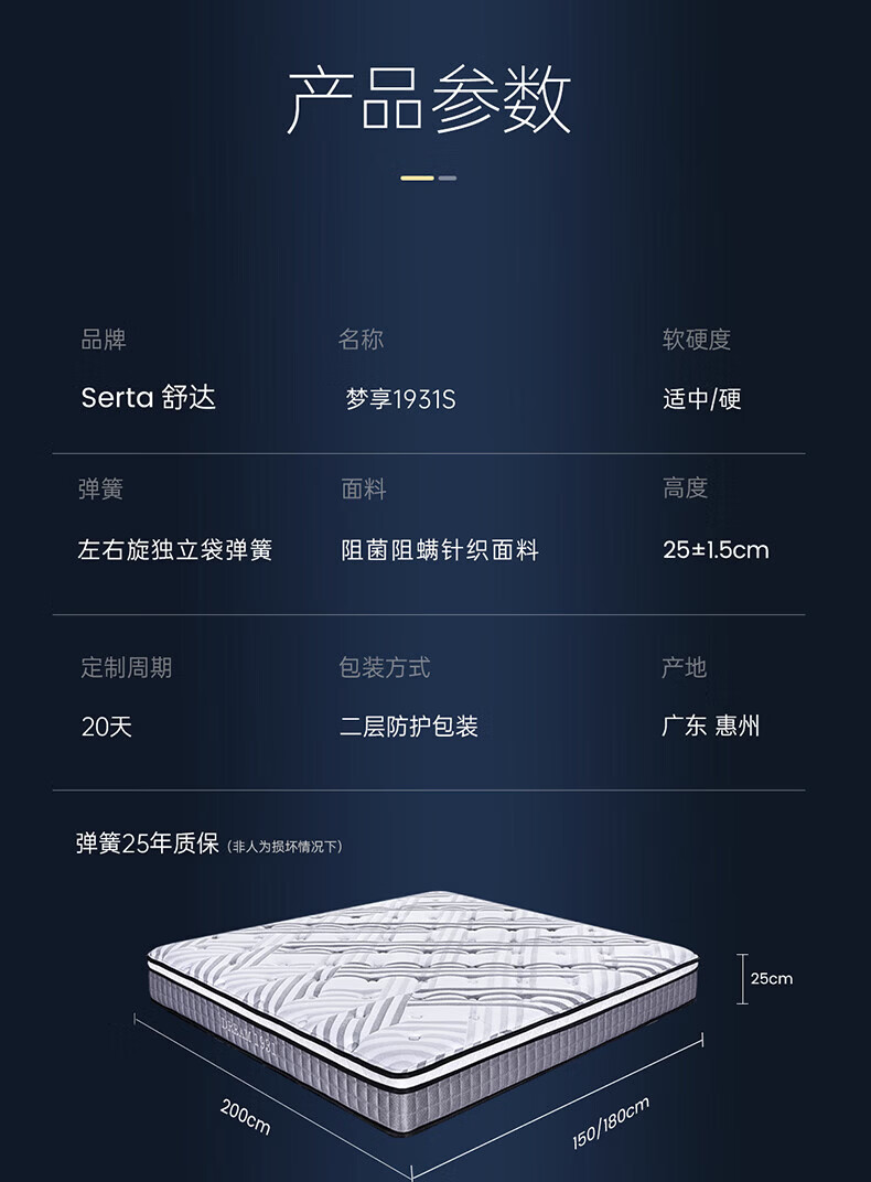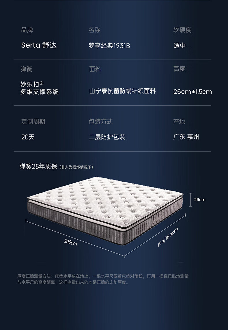 舒达(serta)床垫 乳胶床垫妙乐扣弹簧阻螨菌双人床床垫子1.5/1.8米*2米可定制 【梦享1931经典B】升级妙乐扣 适中 26cm 1.8x2米
