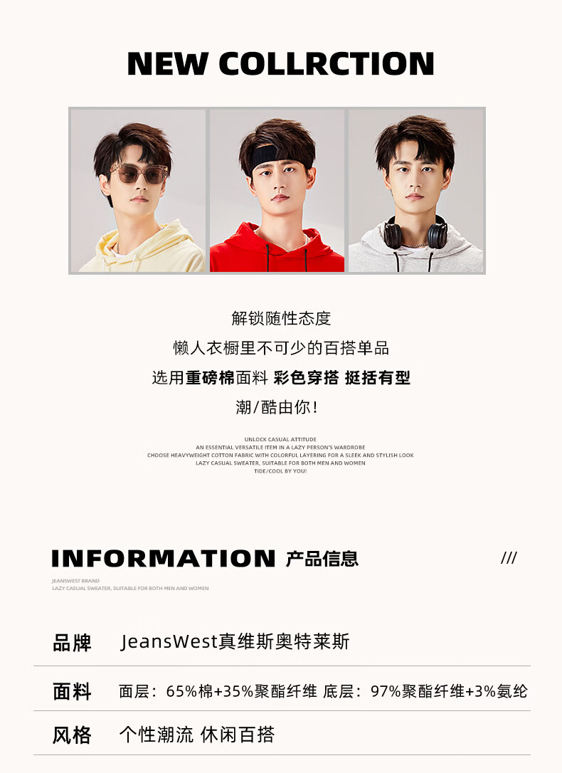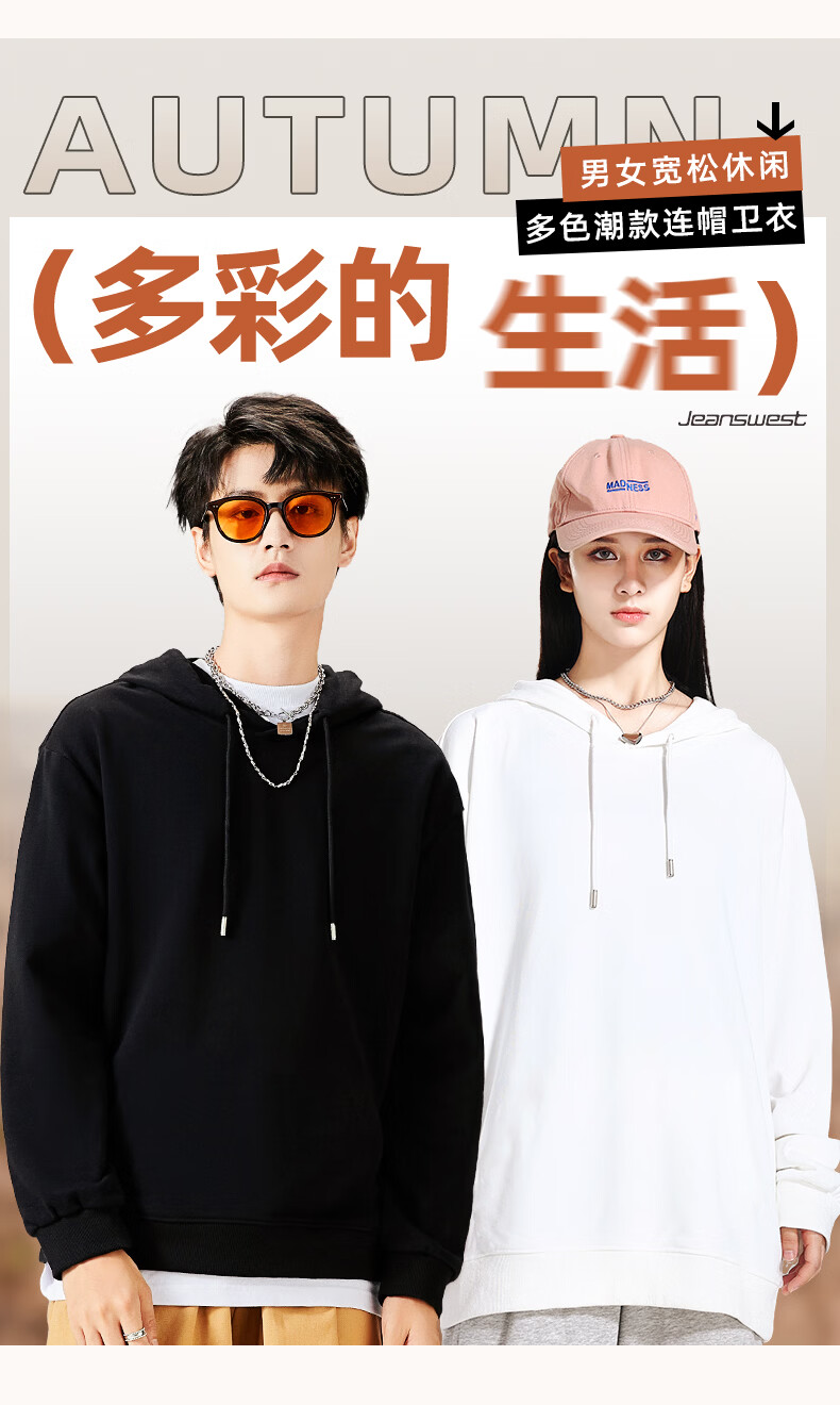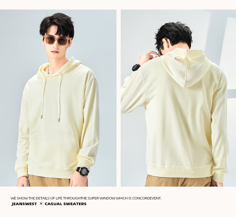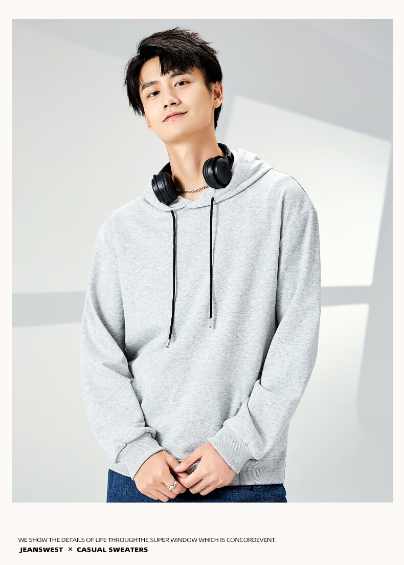 真维斯(Jeanswest)连帽卫衣男款早秋款2026新款美式潮牌大码男装外套高中生重磅帽衫 橄榄绿 纯色 S