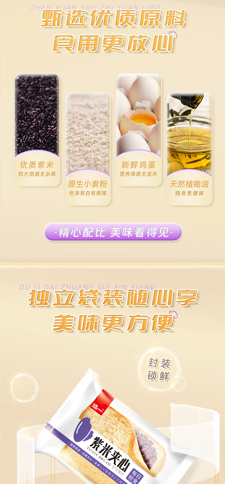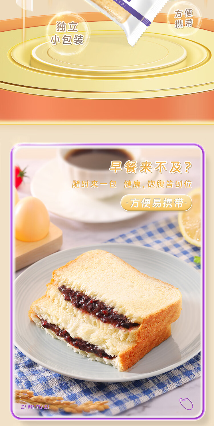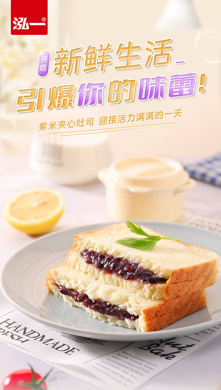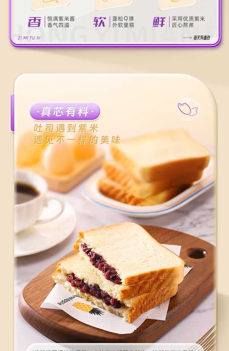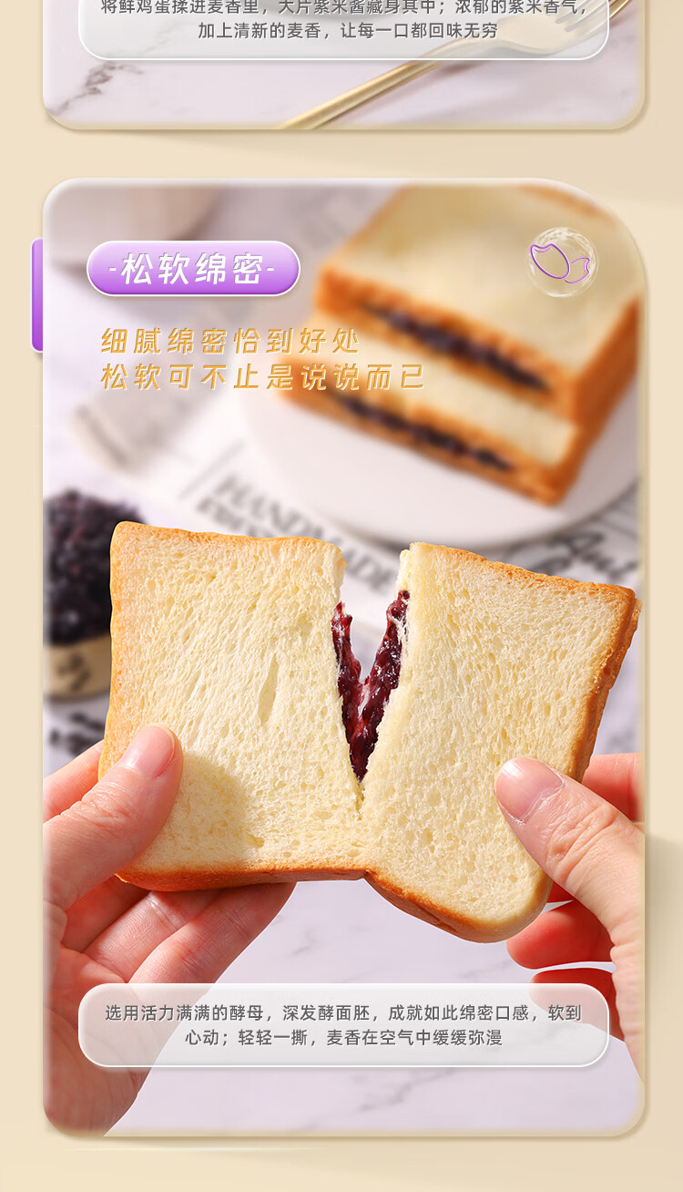 【官方补贴】泓一紫米夹心吐司300g/箱学生营养早餐宿舍代餐 300g 1箱【5包】