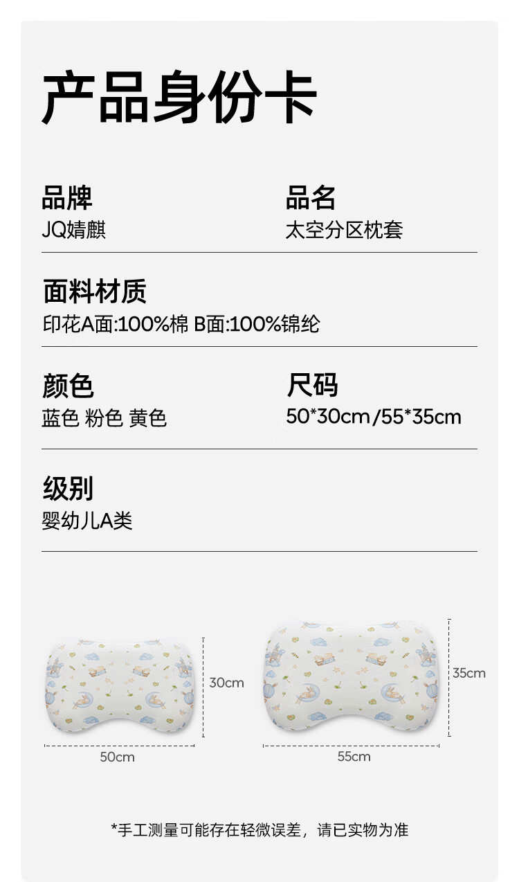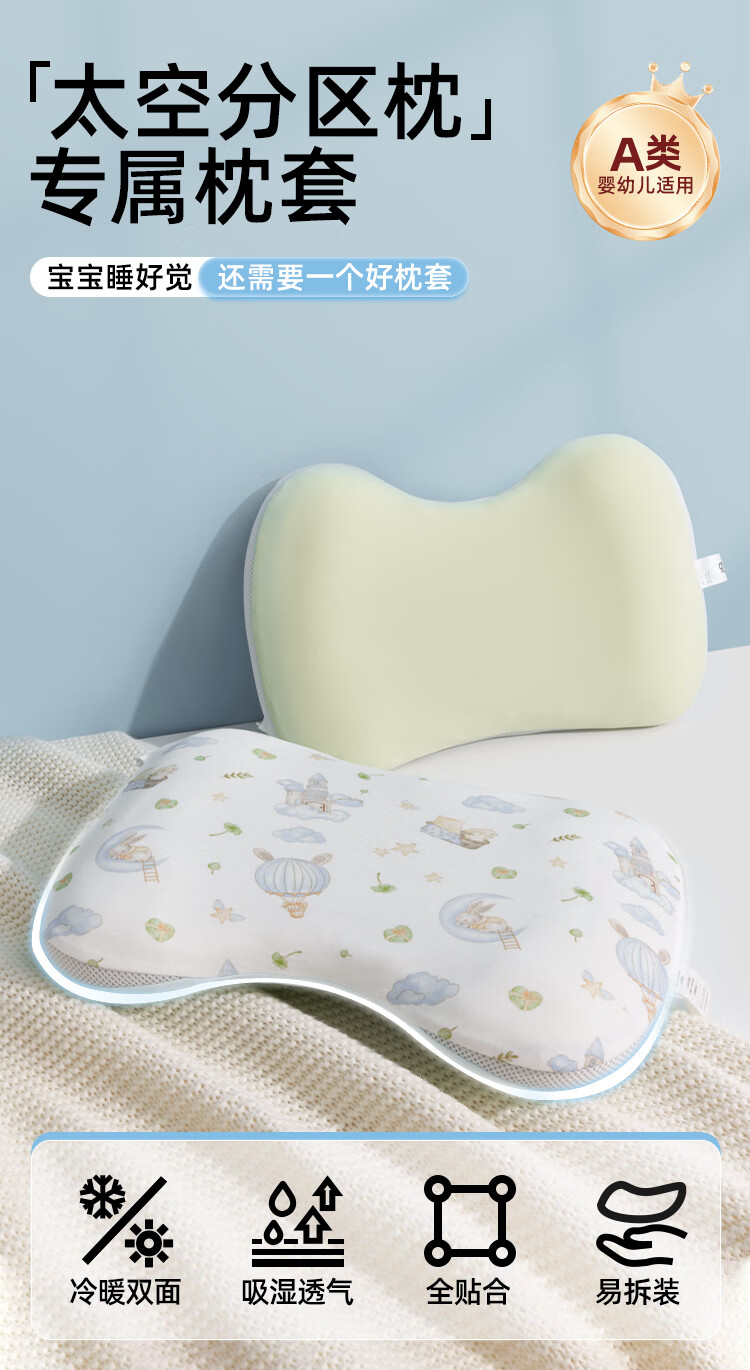 婧麒(JOYNCLEON)太空分区枕套宝宝枕头套通用透气婴幼儿6月至3岁 粉色 Jzt155048