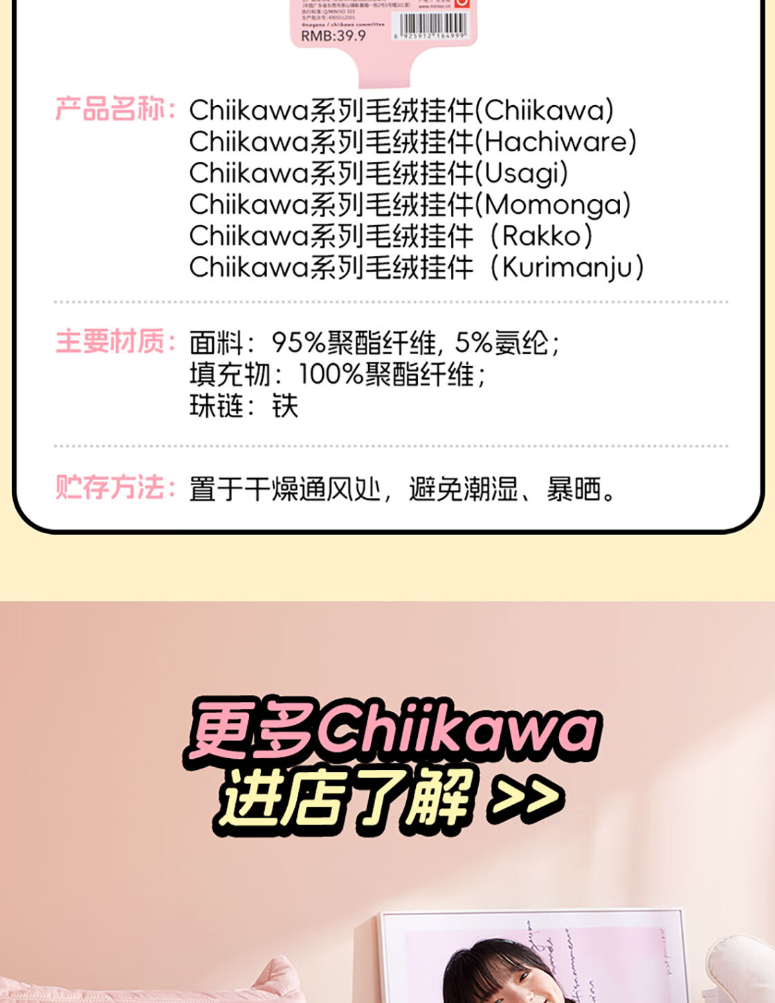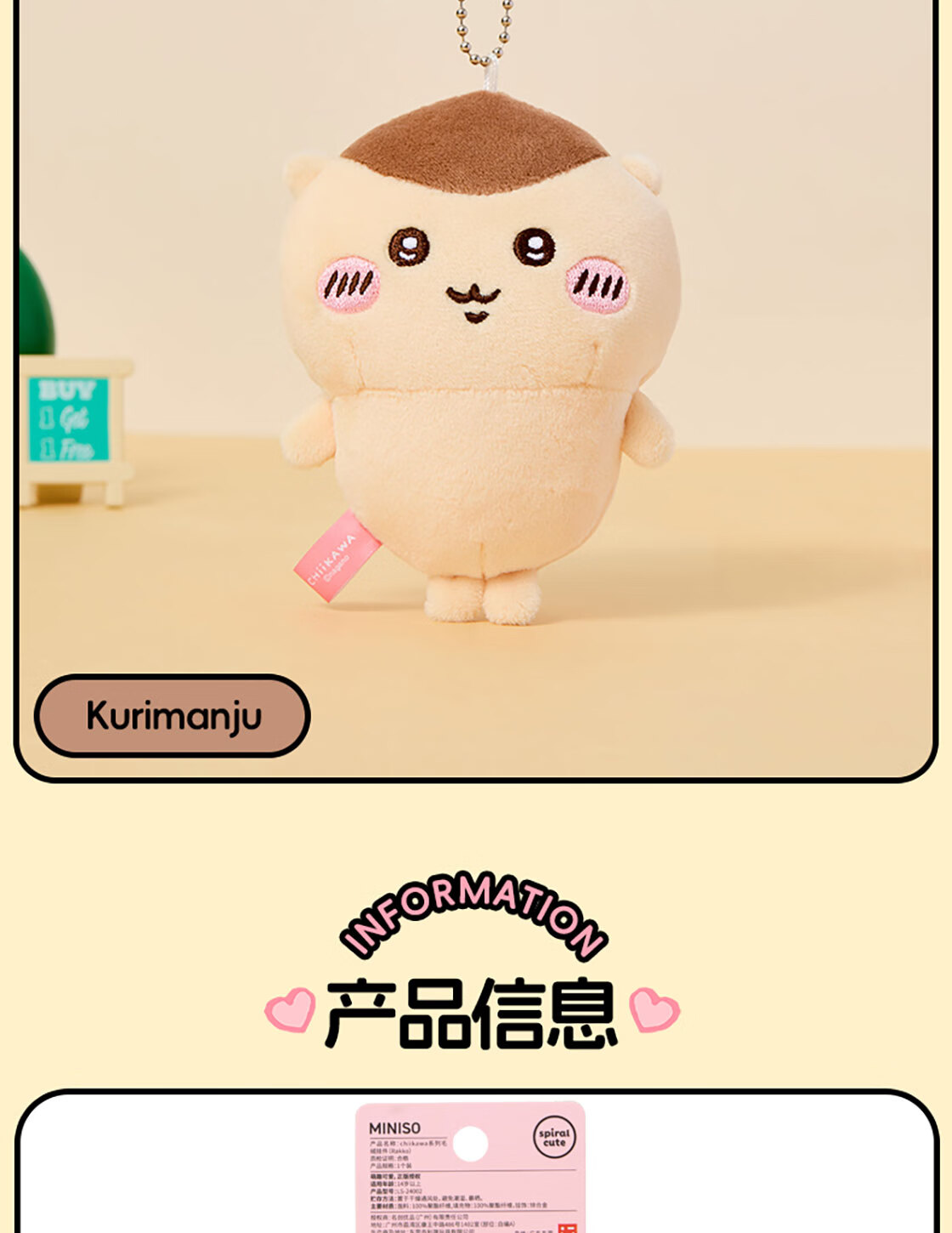 名创优品(MINISO)chiikawa毛绒挂件正版玩偶摆件玩具包包挂饰生日礼物女 Hachiware