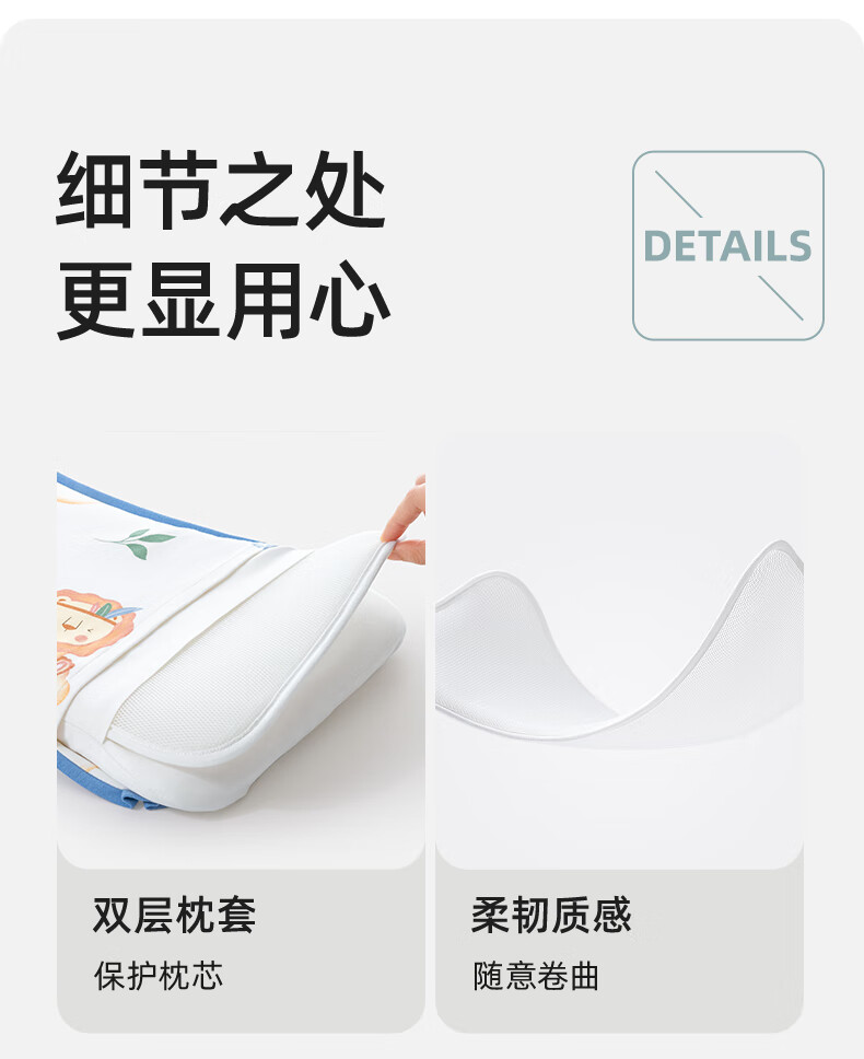 贝肽斯儿童枕头四季通用全枕透气高度可调婴儿枕头0-4岁新生儿护颈枕