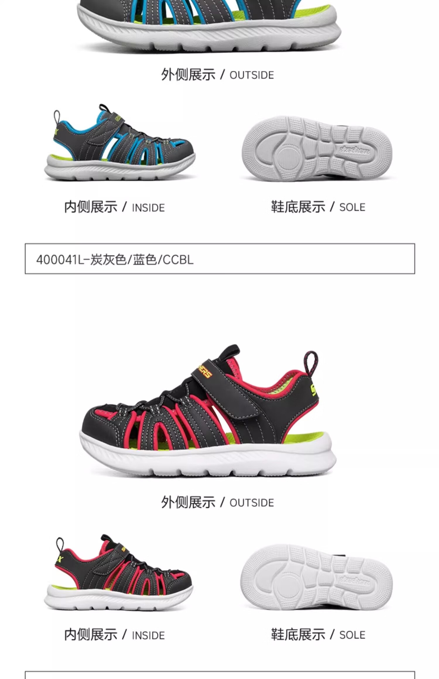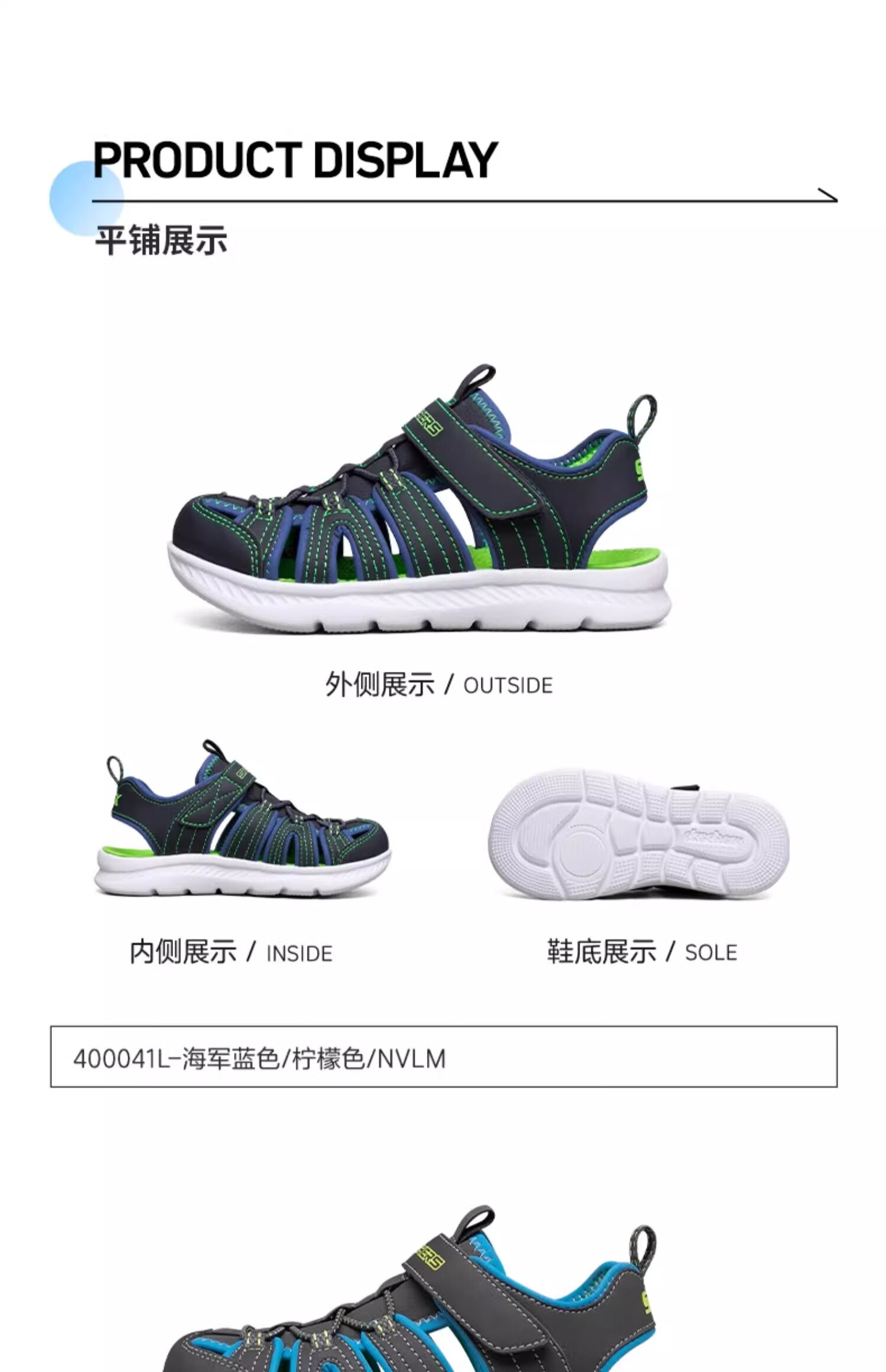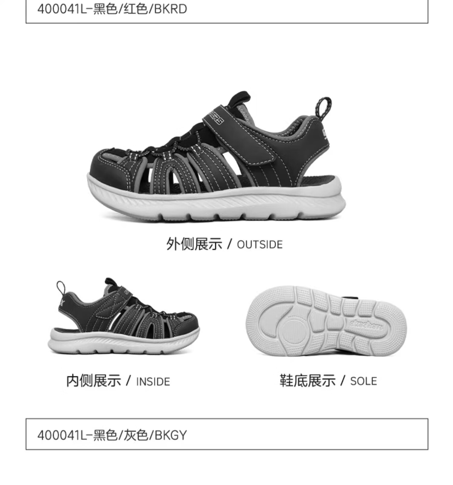 Skechers斯凯奇儿童凉鞋男童包头护脚 清凉透气休闲大童沙滩鞋童鞋400041L