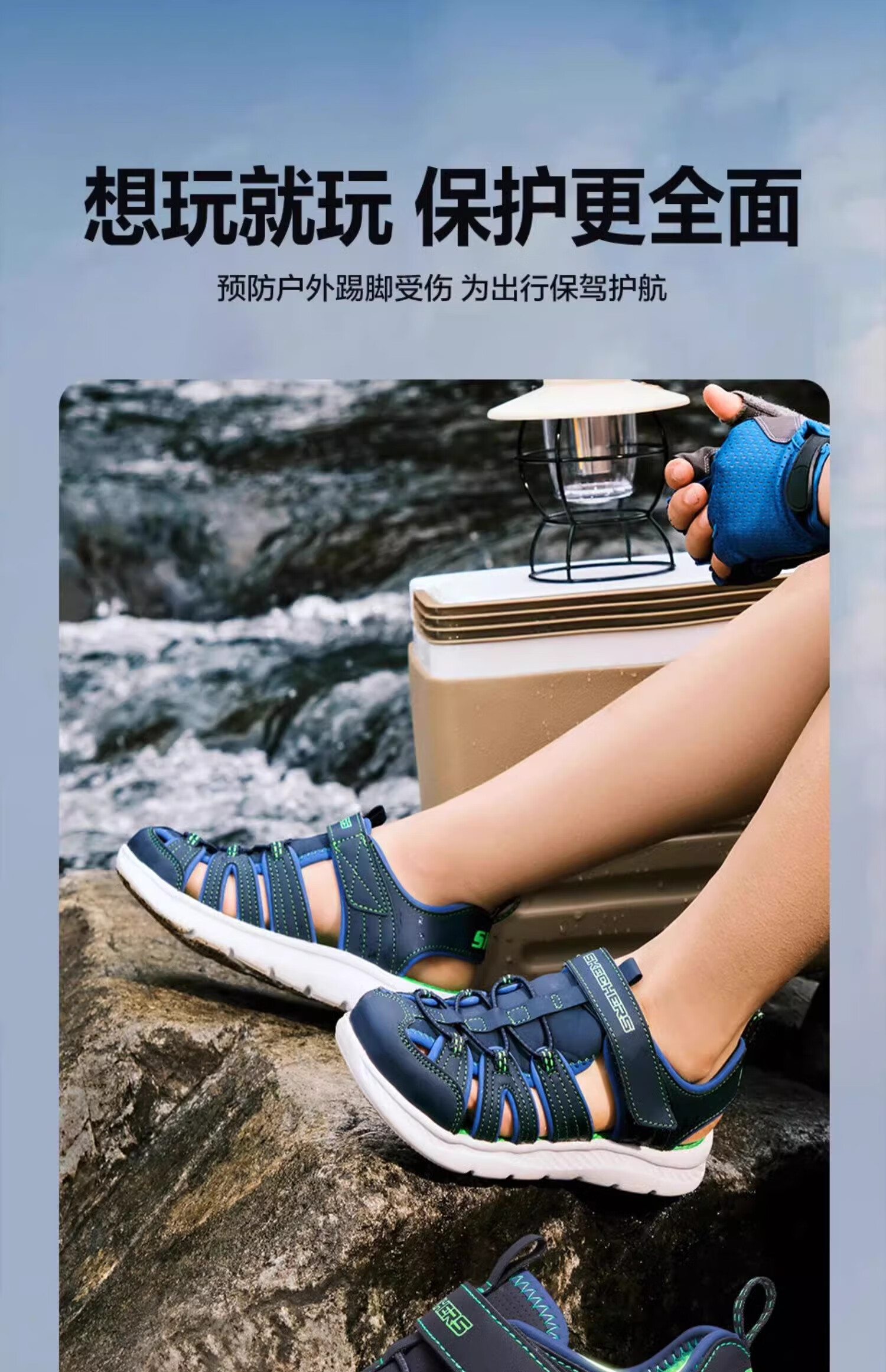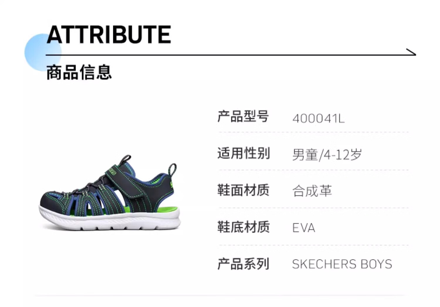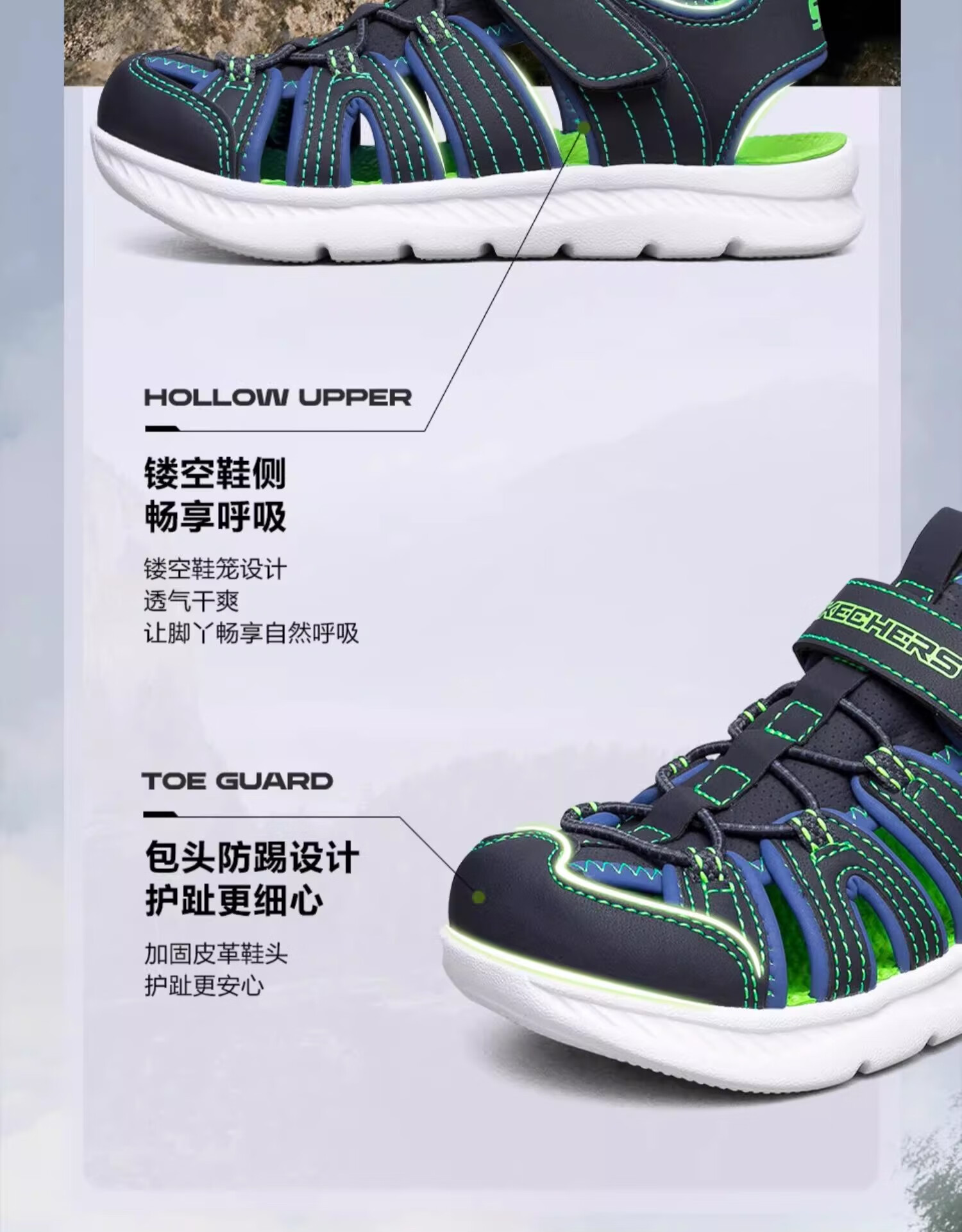 Skechers斯凯奇儿童凉鞋男童包头护脚 清凉透气休闲大童沙滩鞋童鞋400041L