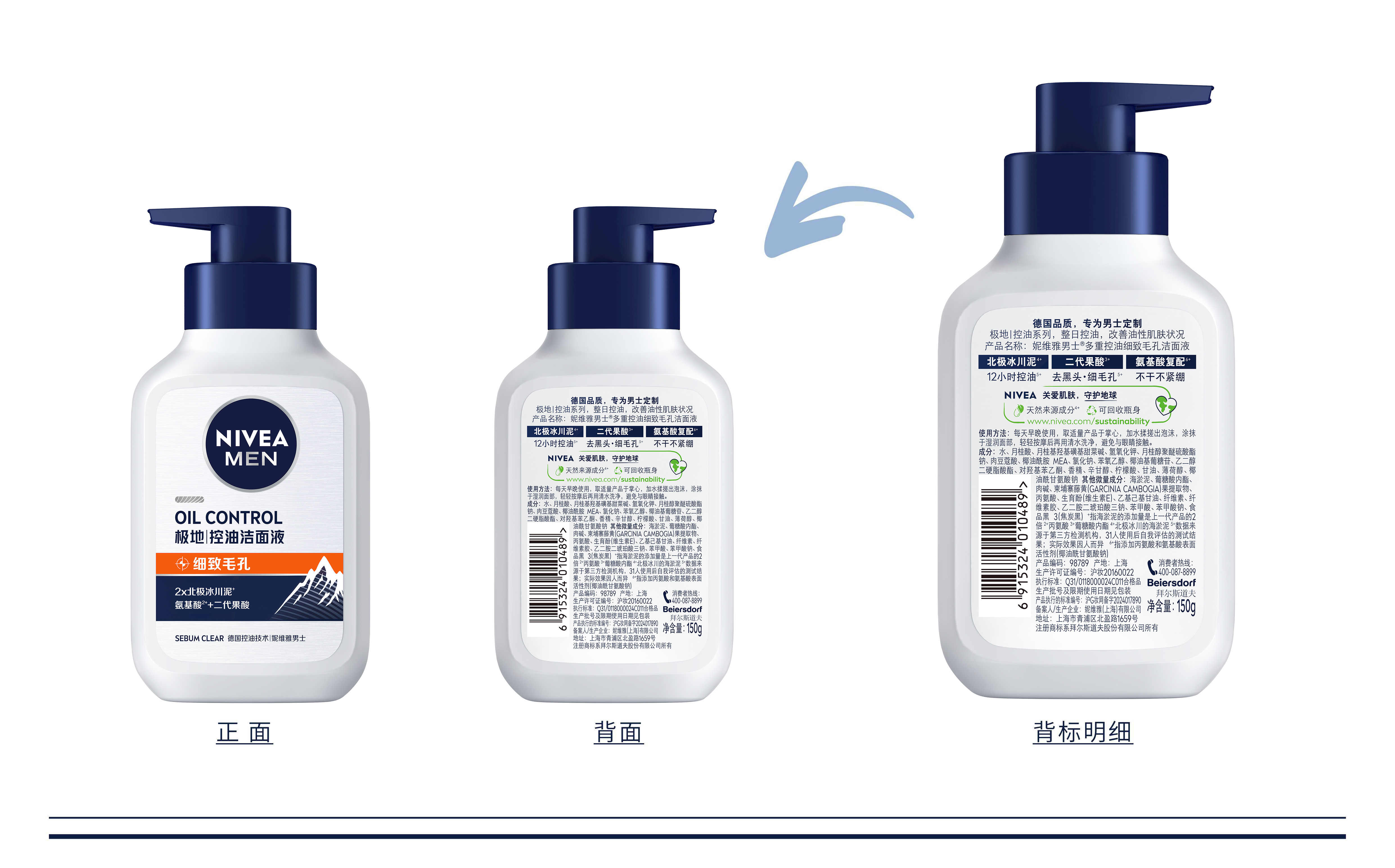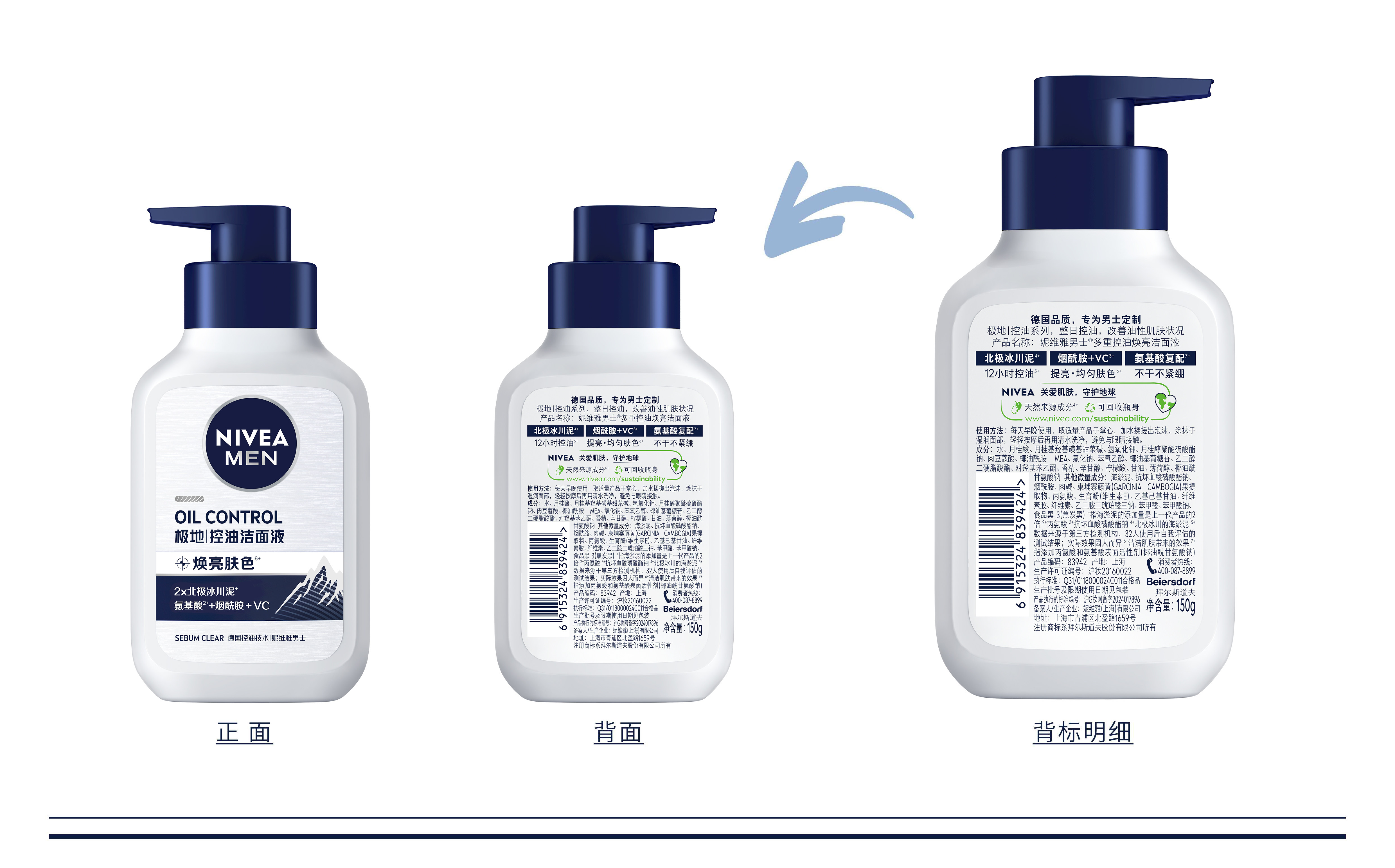 妮维雅(NIVEA)男士洗面奶控油护肤洁面乳焕亮学生礼物送男友 控油焕肤精华洁面液150ml*2