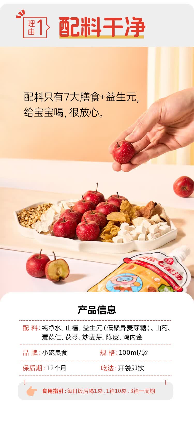 小碗良食山楂七星汤鸡内金儿童山楂汁调理肠胃消积食婴幼儿养脾胃饮料整箱 1箱(10袋)