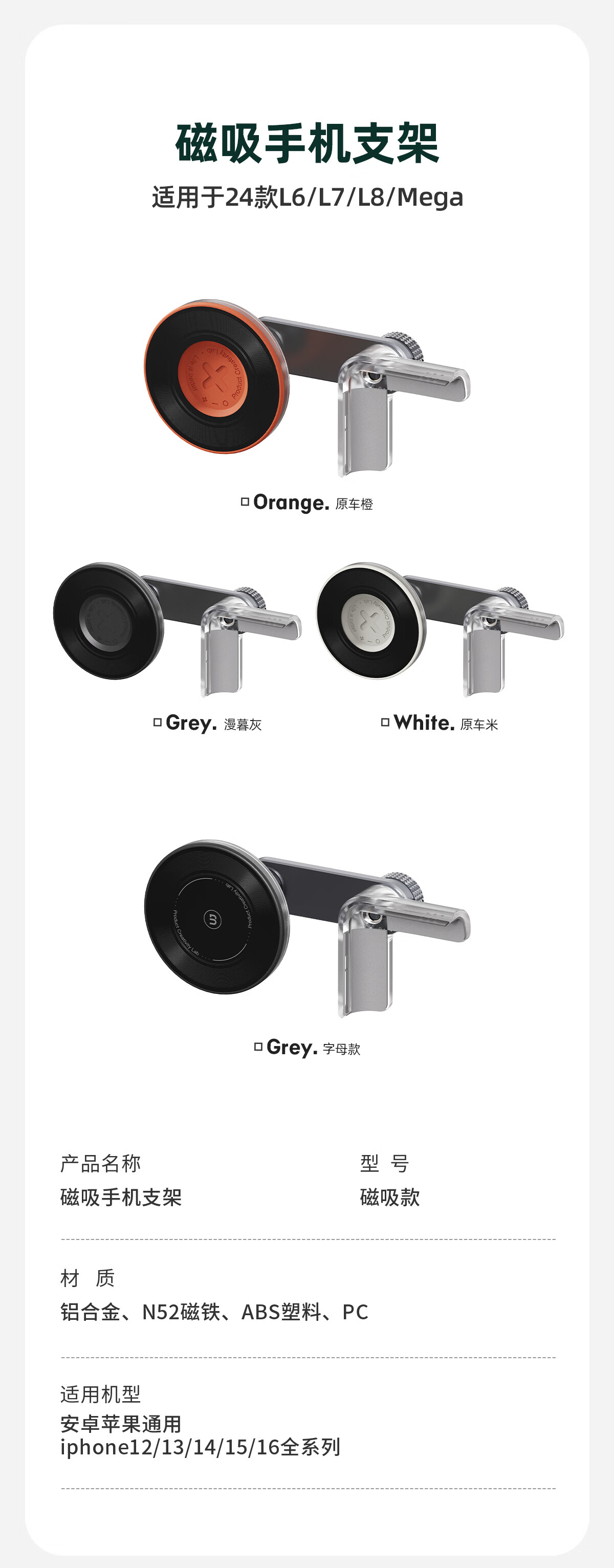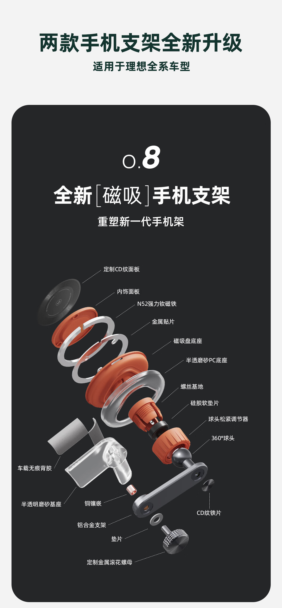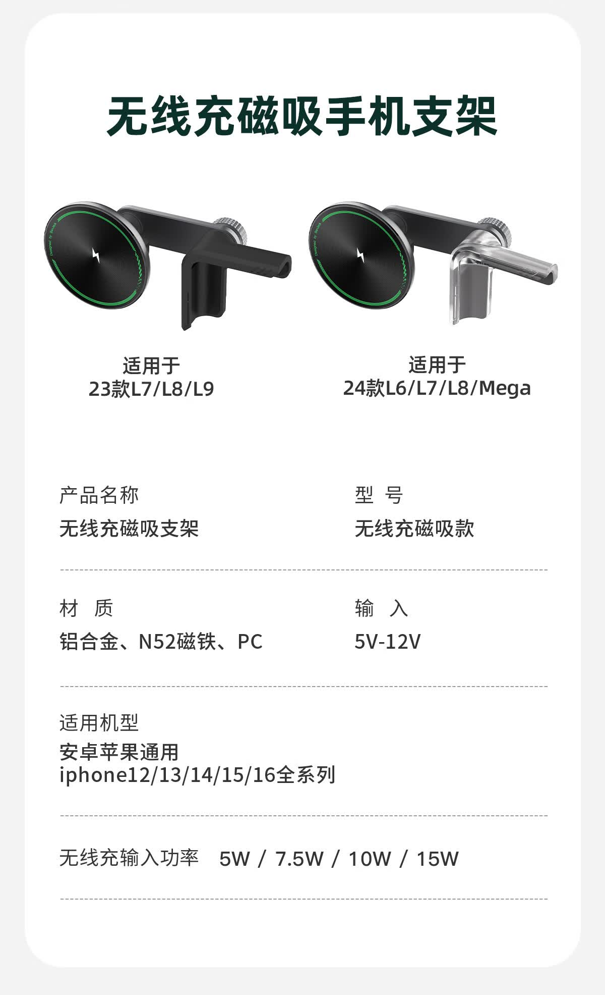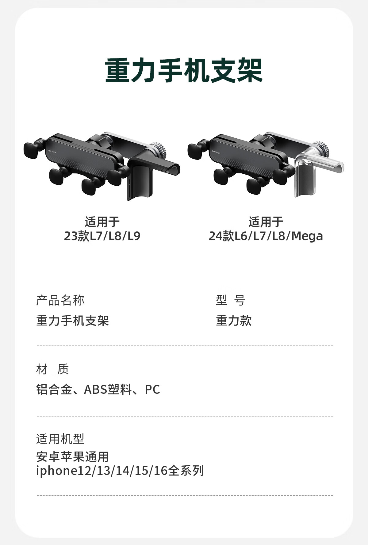 宾尼适用于理想L6L7L9L8MEGAi6i8车载手机支架多功能可旋转磁吸专用 24-25款L6/L7/L8/i8/i6(原车米)