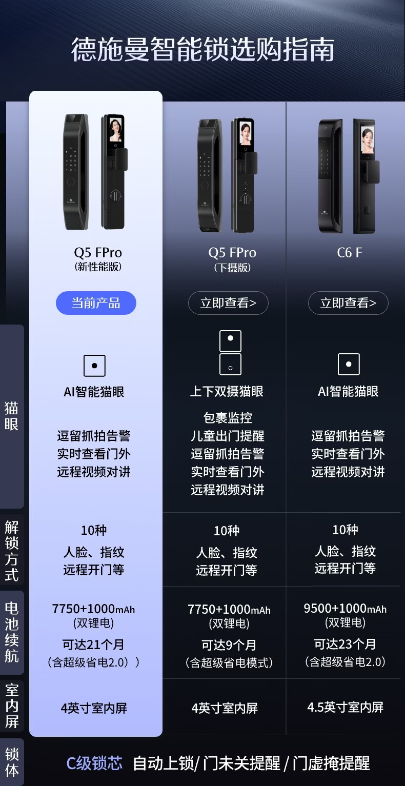 德施曼(DESMAN)智能门锁人脸下摄猫眼大屏指纹电子密码锁大圣 Q5FPro(下摄版) Q5FPro下摄版