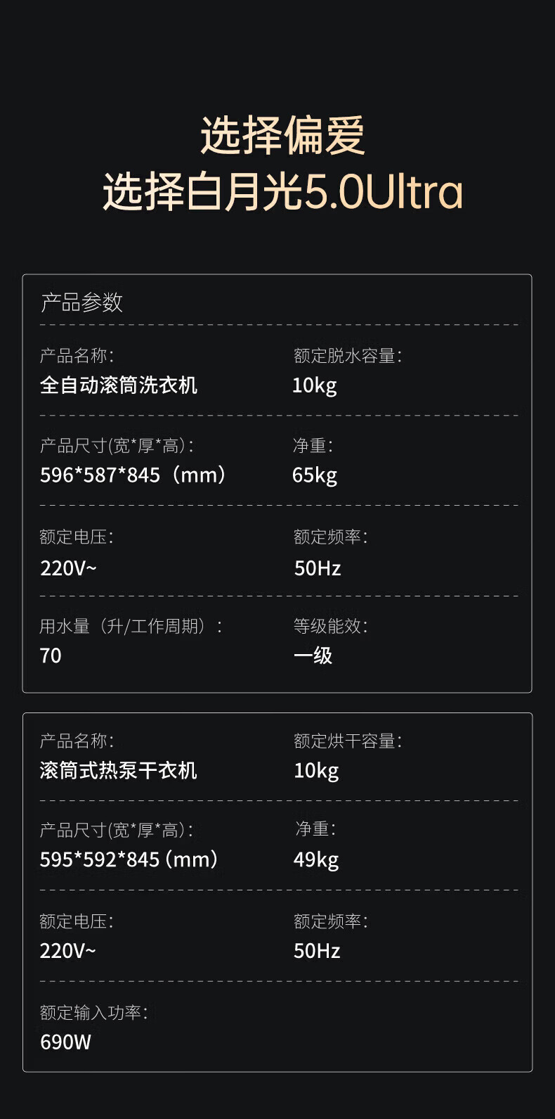 松下(Panasonic)白月光5.0Ultra10+10kg 热泵洗烘套装家用全自动滚筒洗衣机烘干机除菌除螨智能投放静音节能护衣烘干一体机 N4P1+N4PR1洗烘套装