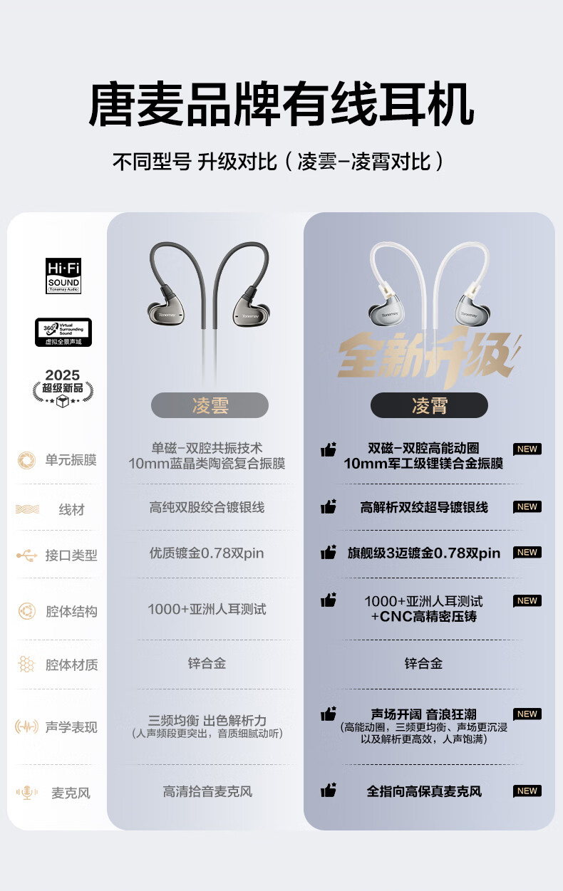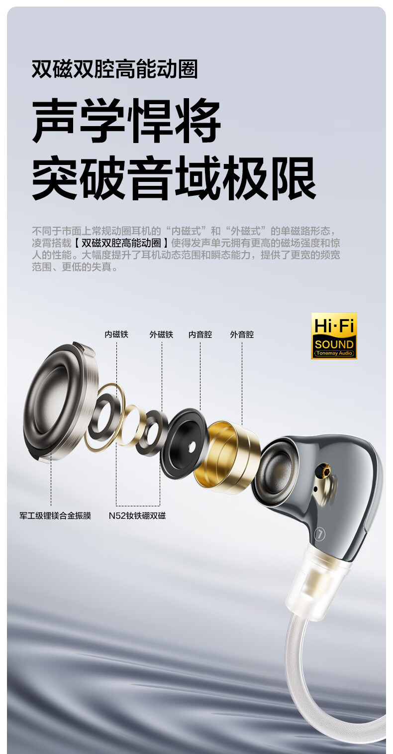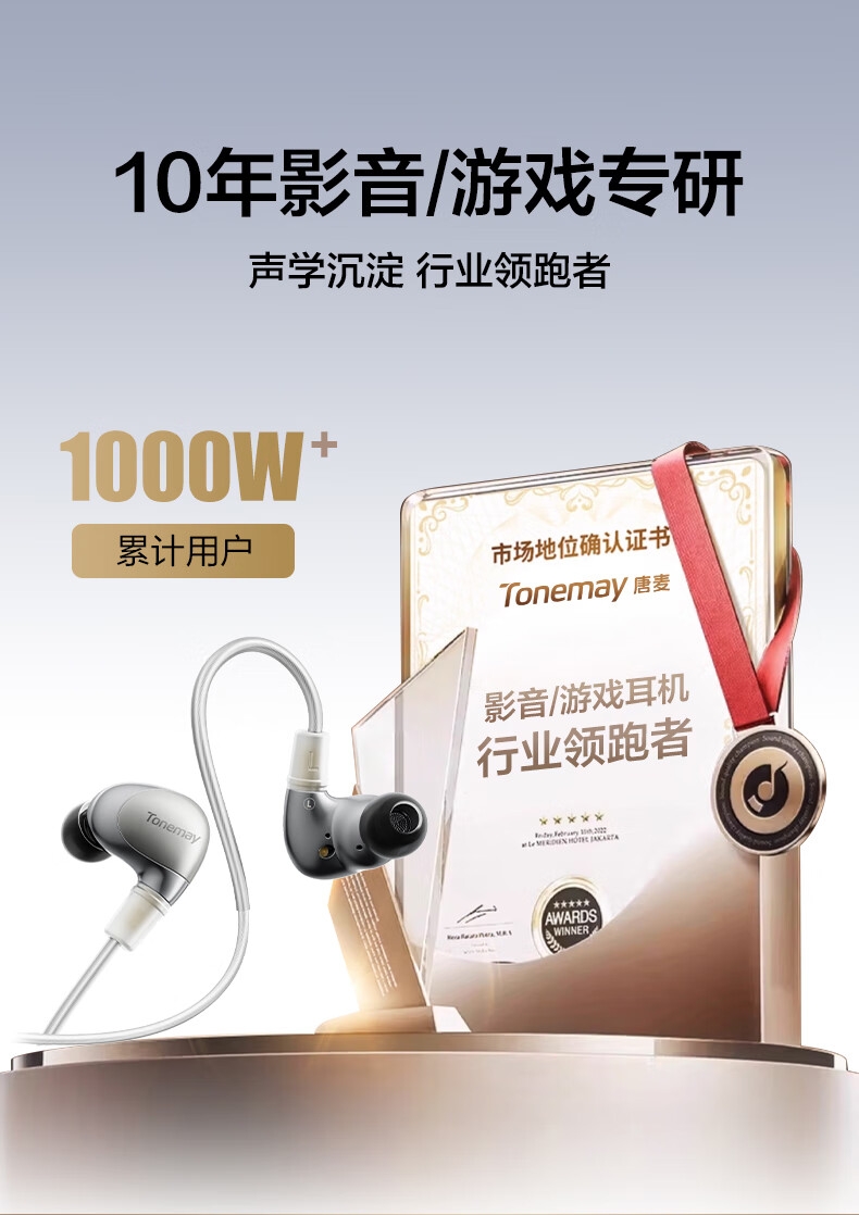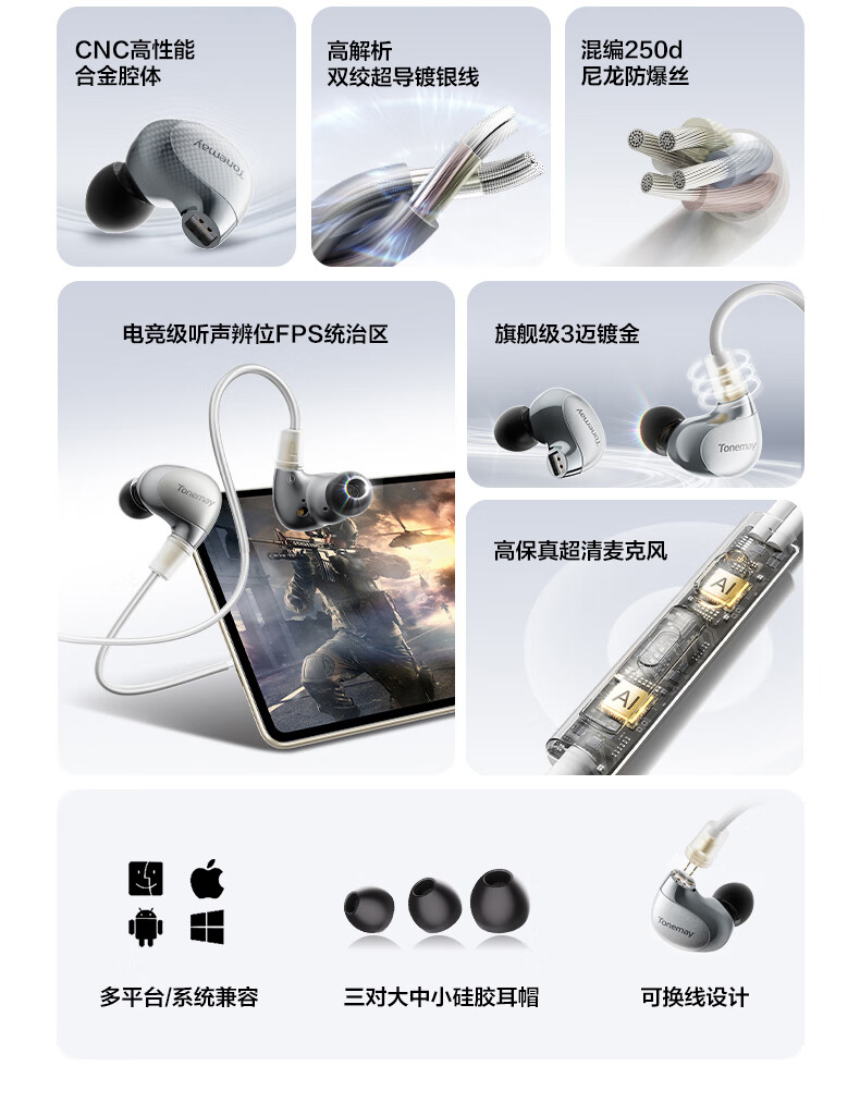 唐麦(Tonemay)凌霄HiFi游戏耳机耳麦有线入耳式三角洲行动电竞专用耳机听声辨位发烧级可换线 type-c转3.5mm带麦