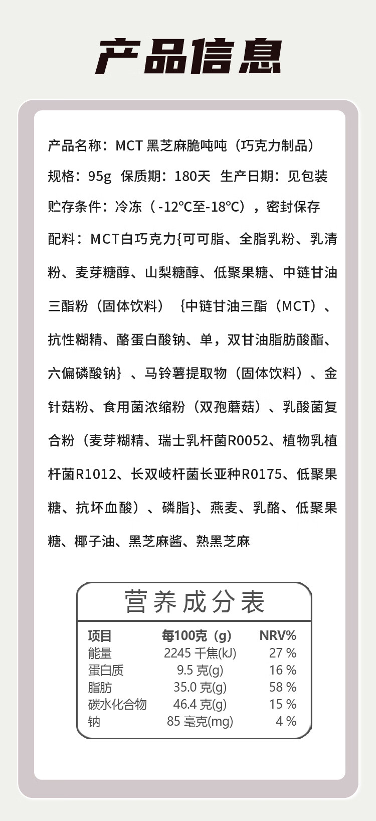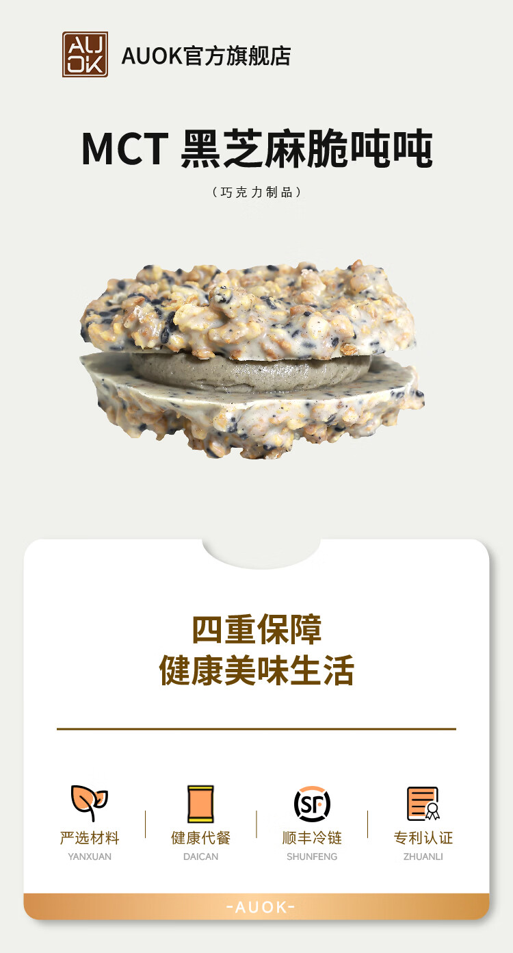 AUOK MCT巧克力黑芝麻脆吨吨95g/个健身管理纯可可脂代餐饱腹糕点零食 MCT巧克力脆吨吨(黑芝麻味)8个