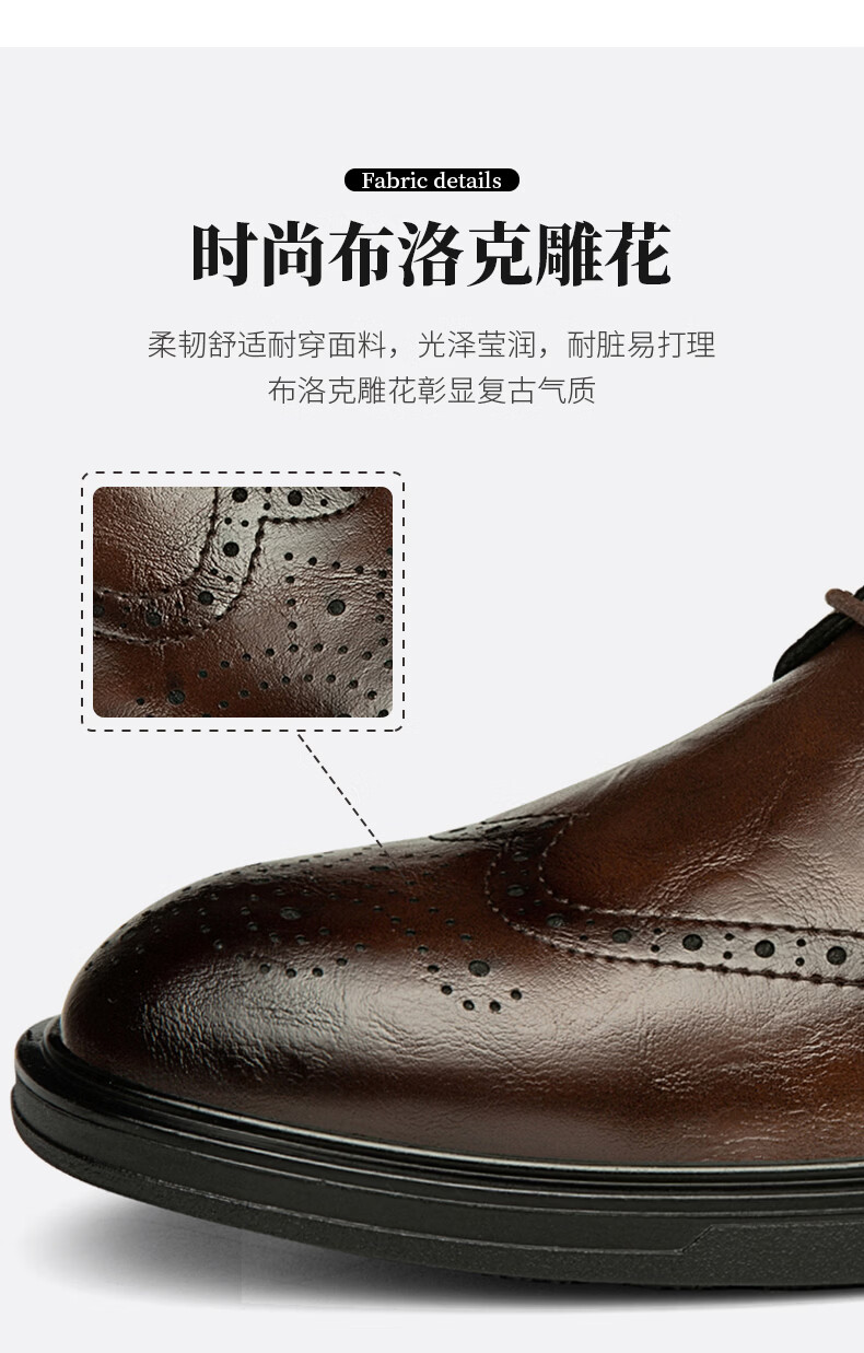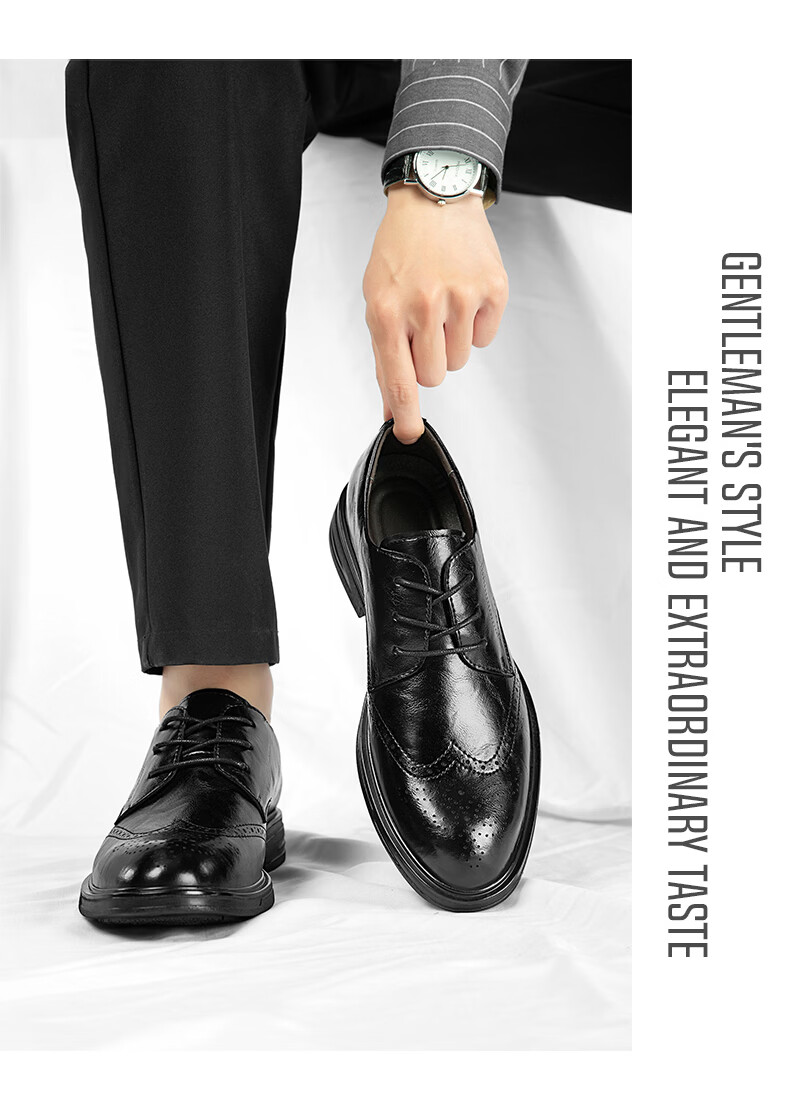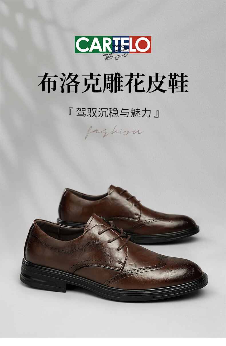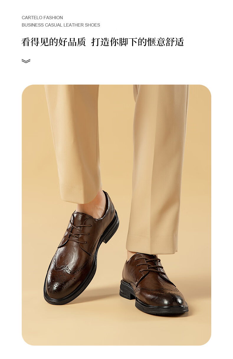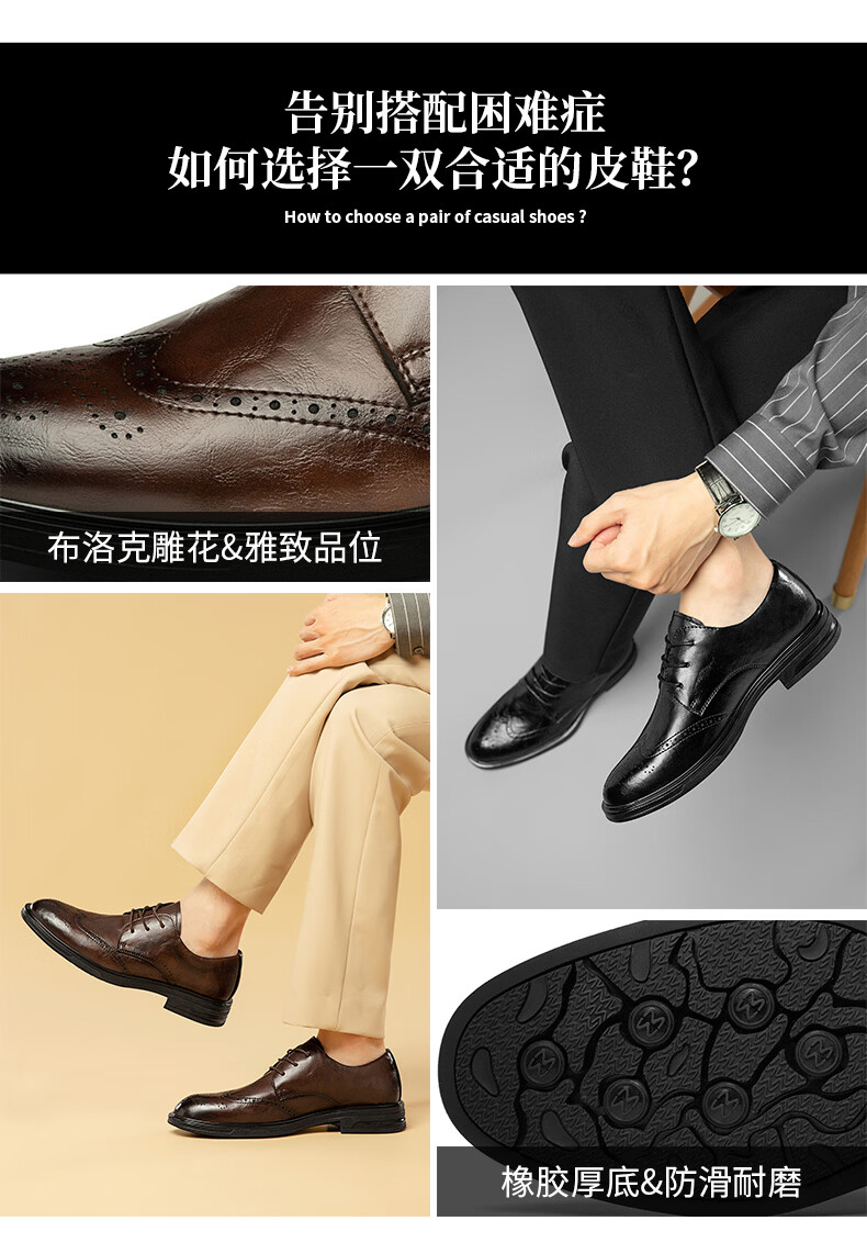 卡帝乐鳄鱼(CARTELO)棕色皮鞋男布洛克商务英伦风德比鞋男时尚软底新郎婚礼增高正装鞋 黑色 44 (270mm) 标准皮鞋尺码