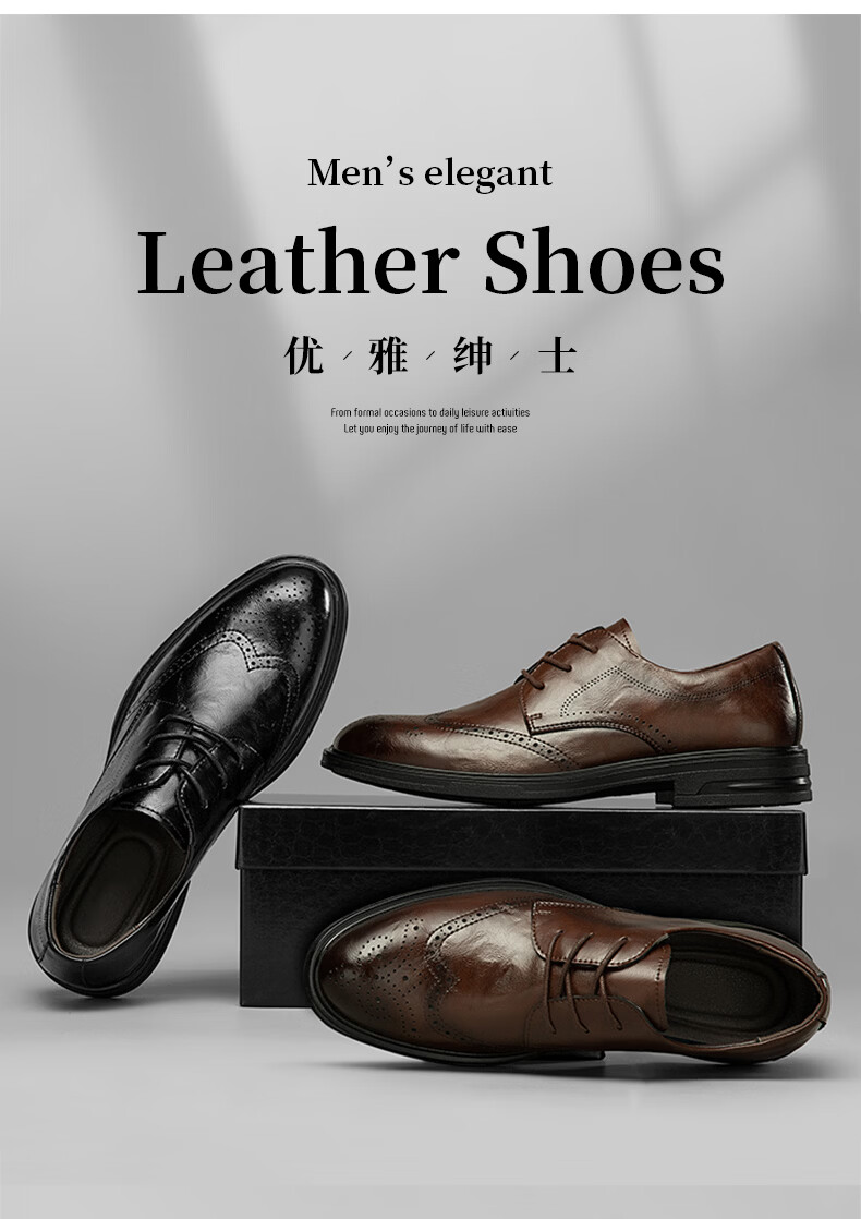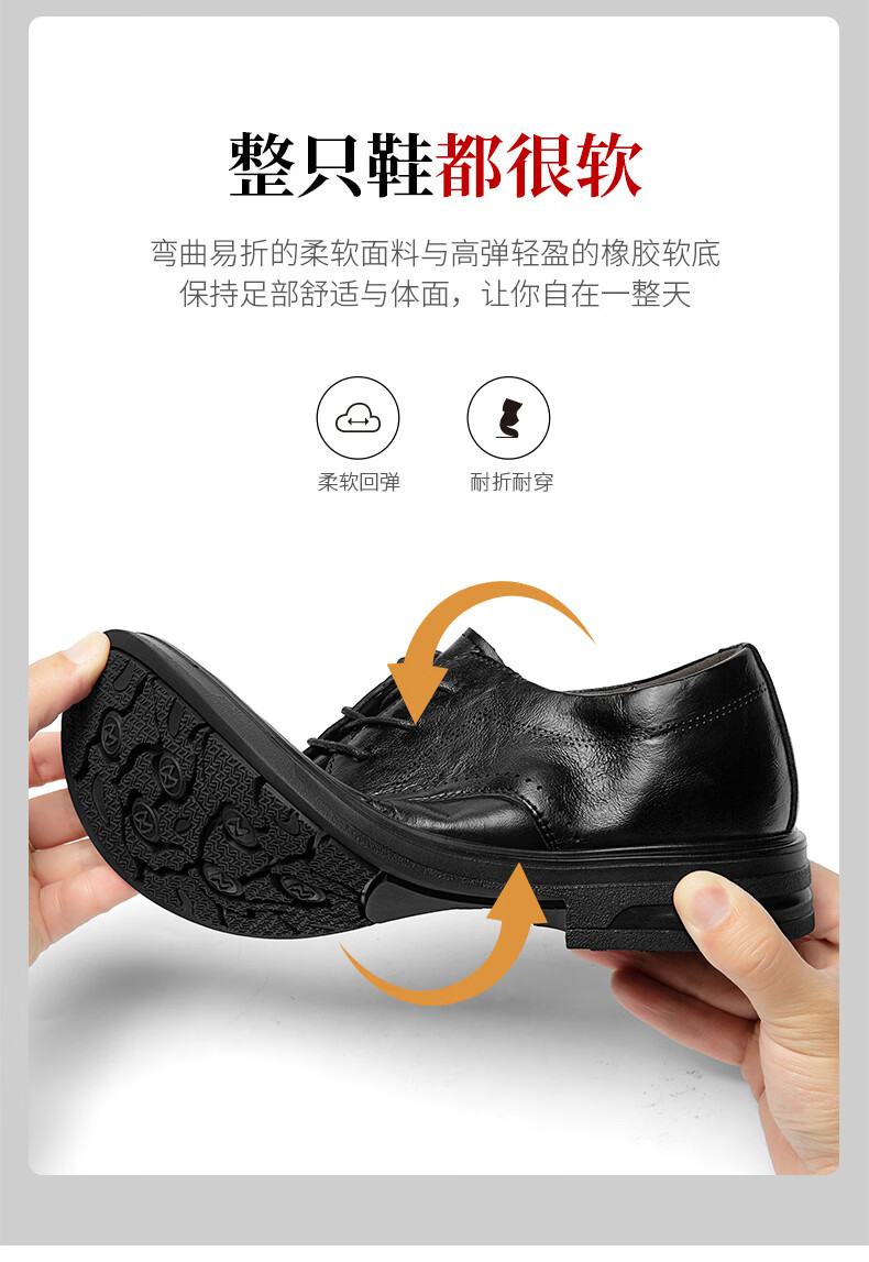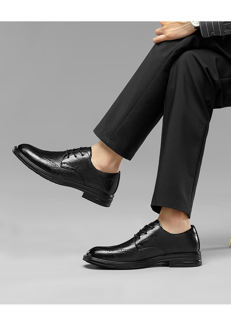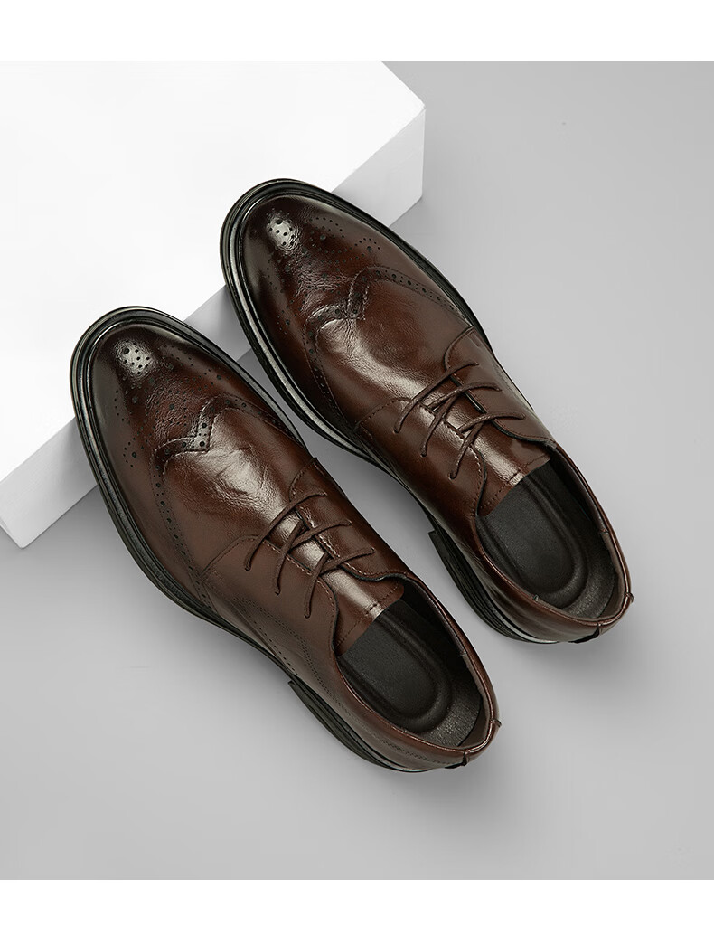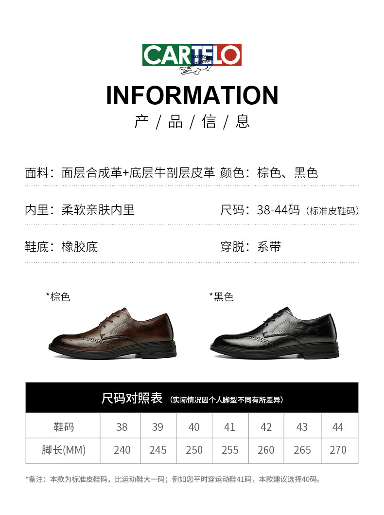 卡帝乐鳄鱼(CARTELO)棕色皮鞋男布洛克商务英伦风德比鞋男时尚软底新郎婚礼增高正装鞋 黑色 44 (270mm) 标准皮鞋尺码