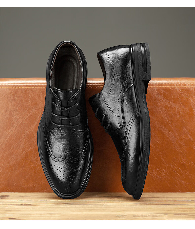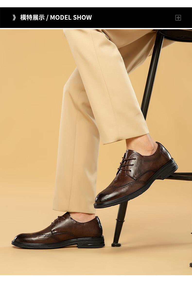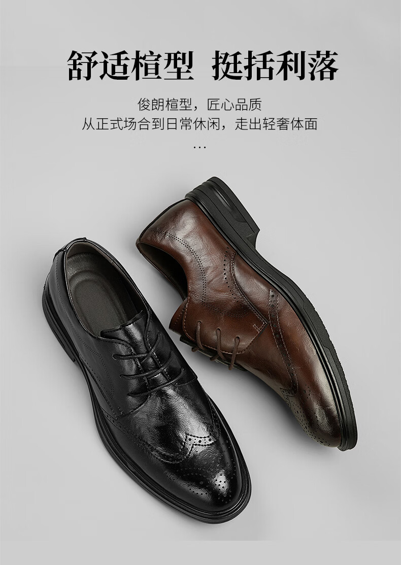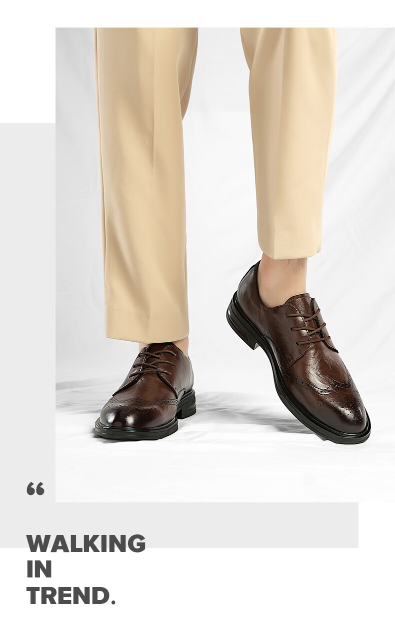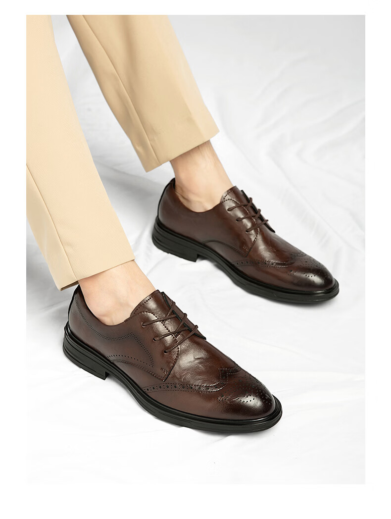 卡帝乐鳄鱼(CARTELO)棕色皮鞋男布洛克商务英伦风德比鞋男时尚软底新郎婚礼增高正装鞋 黑色 44 (270mm) 标准皮鞋尺码