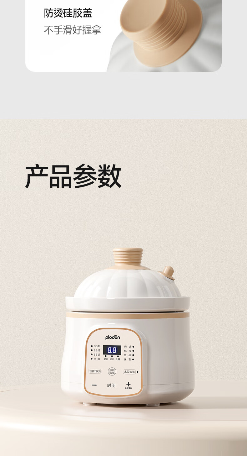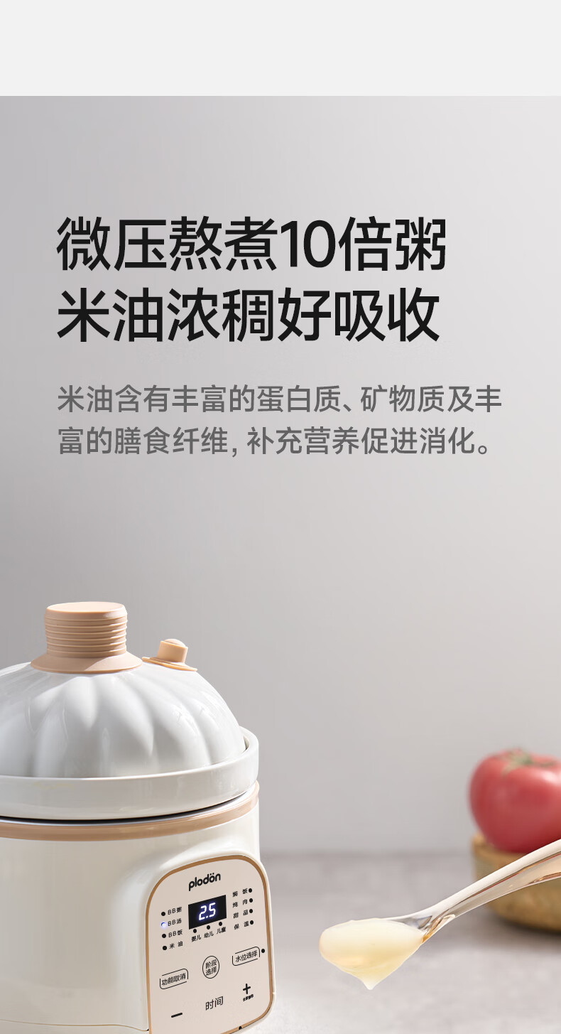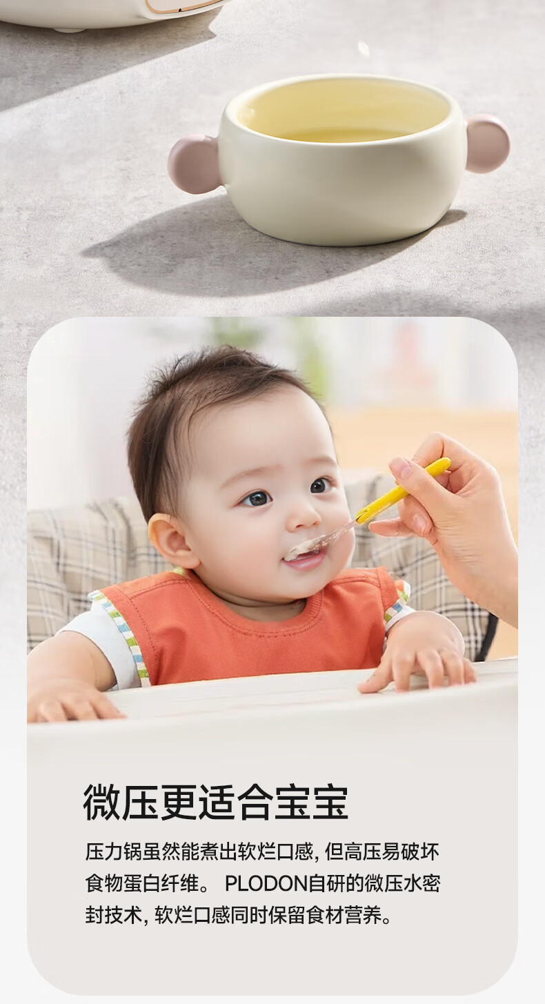 浦利顿(PLODON)电炖锅 分月龄BB煲粥饭锅婴儿专用微压炖盅 宝宝炖汤辅食锅辅食机