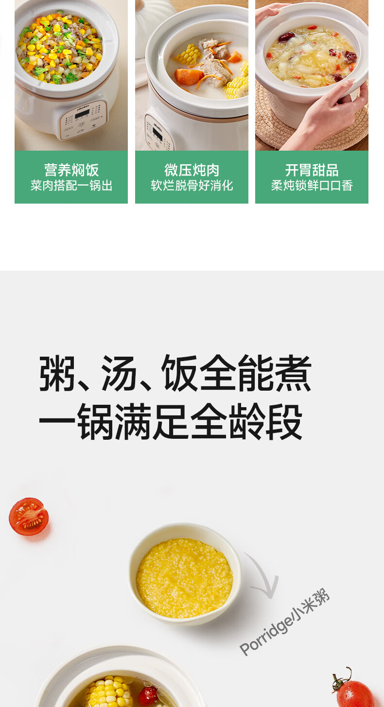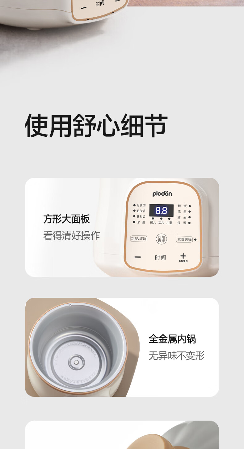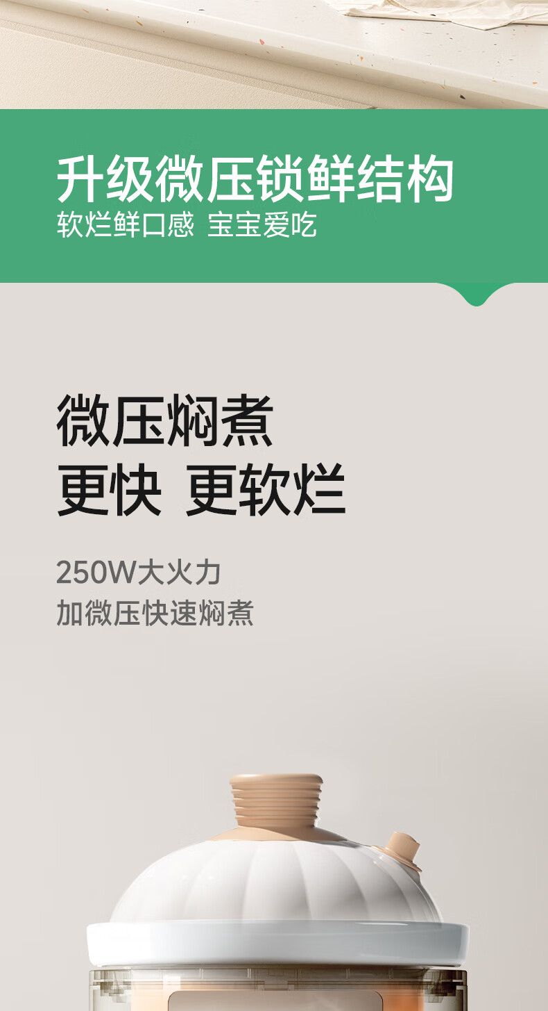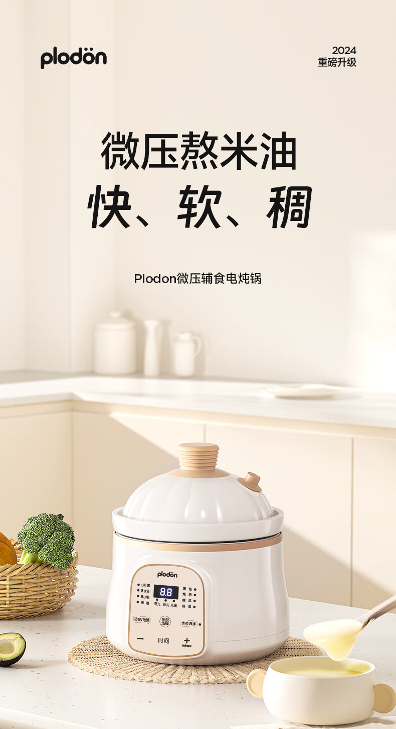 浦利顿(PLODON)电炖锅 分月龄BB煲粥饭锅婴儿专用微压炖盅 宝宝炖汤辅食锅辅食机