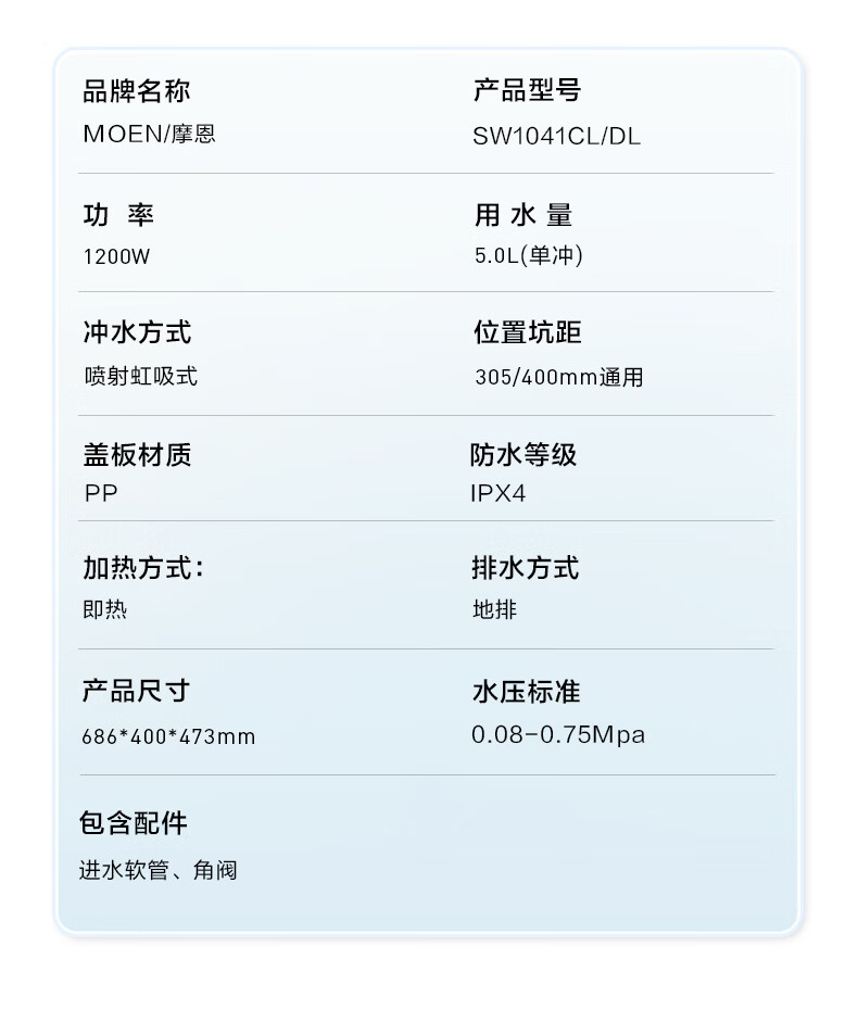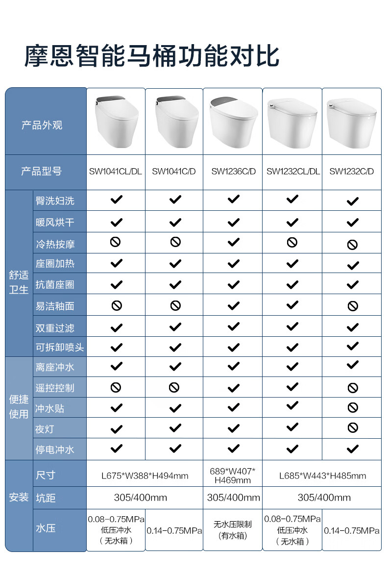 摩恩(MOEN)智能马桶小户型卫生间一体式坐便器家用加热 智能一体坐便器(一键旋钮、双重过滤、抗菌喷枪) 400mm