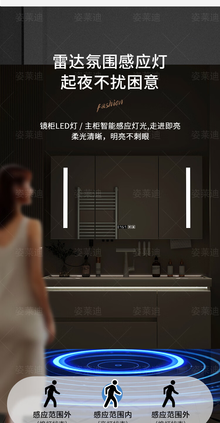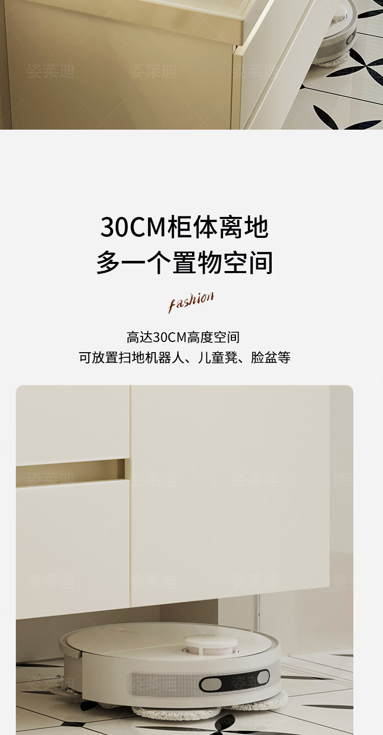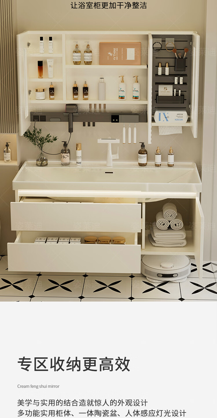 姿莱迪浴室柜鎏金石海洋盆卫生间洗漱盆奶油风洗脸洗手盆柜组合一体盆 鎏金白80cm鎏金石一体盆+全镜收纳镜柜升级厚18cm+白8