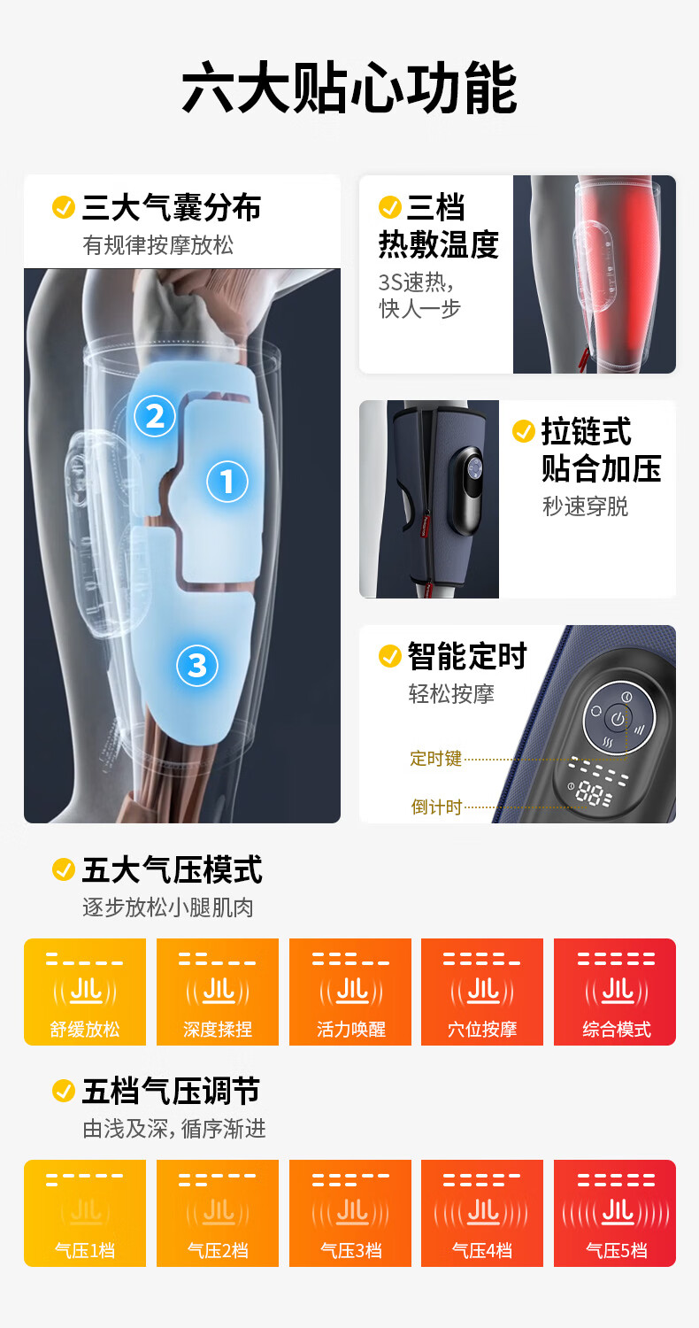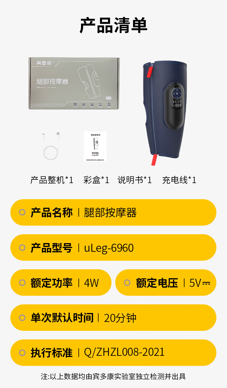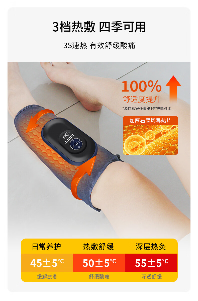 宾多康腿部按摩器小腿肌肉全自动揉捏神器静脉经络疏通曲张热敷仪 空气波腿部按摩器