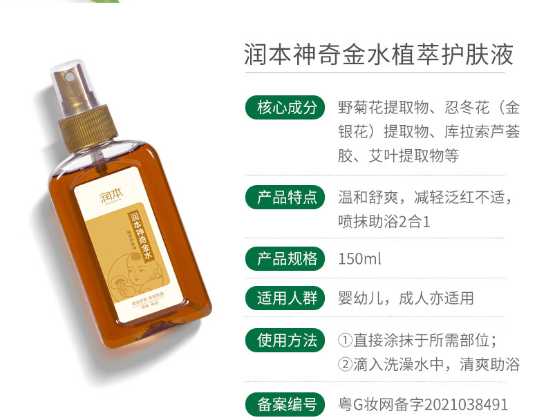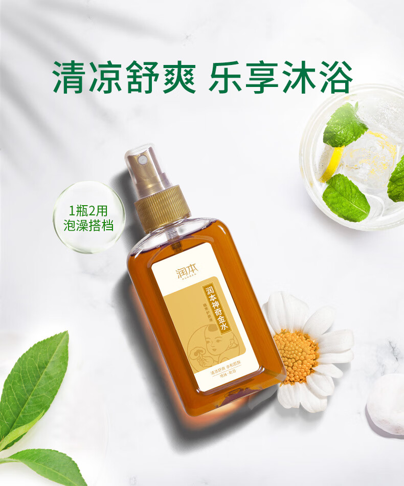 润本 婴儿神奇金水 痱子水宝宝沐浴泡澡爽肤花露水舒缓草本原液 150ml 1瓶