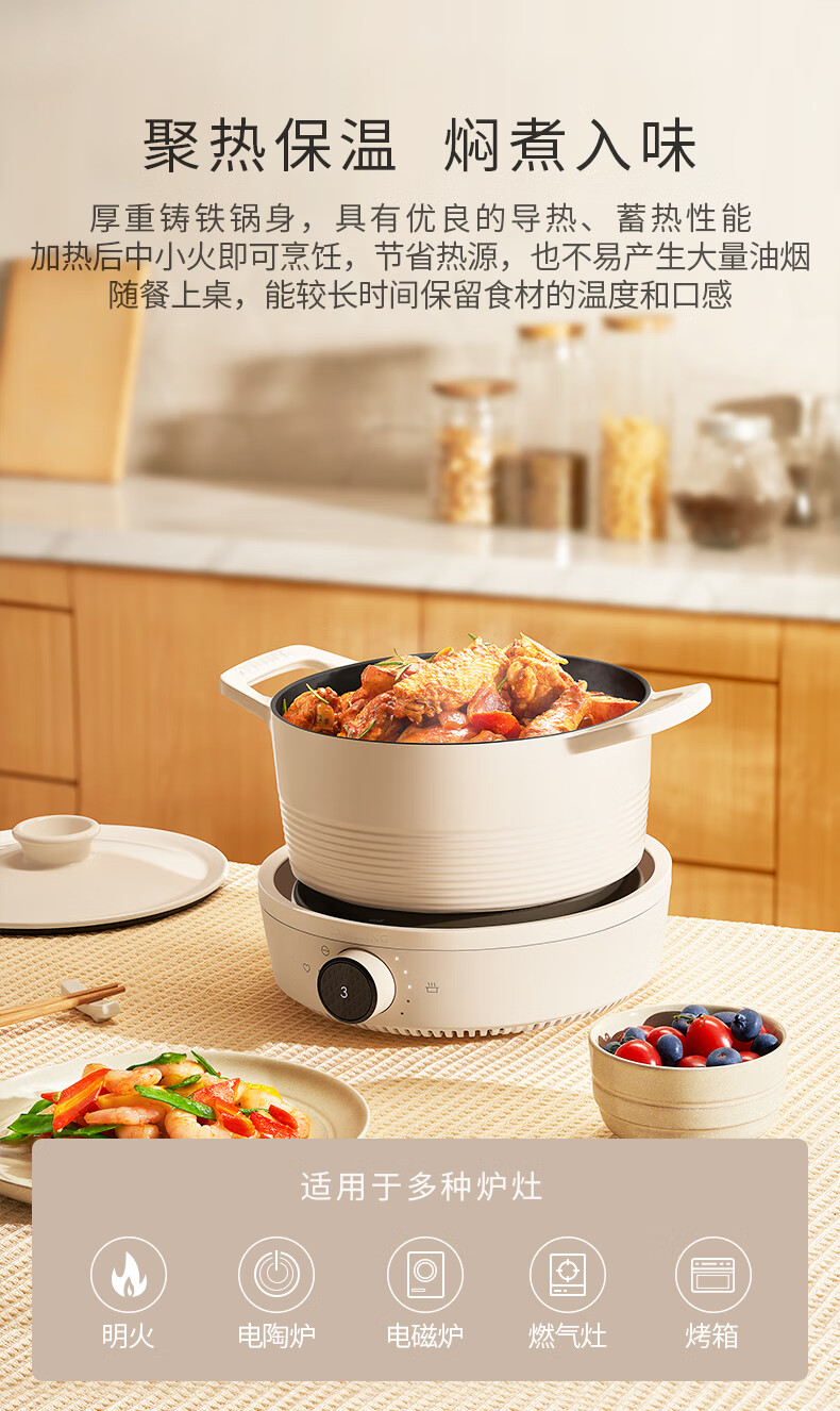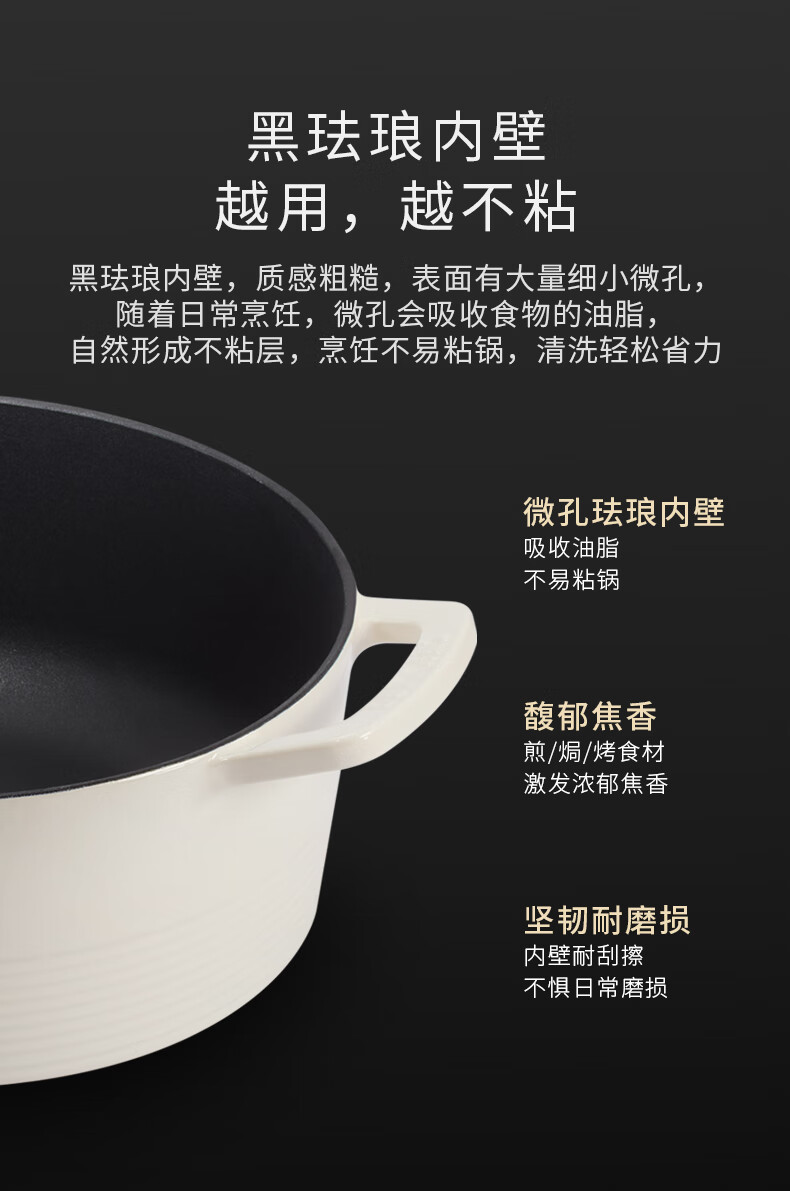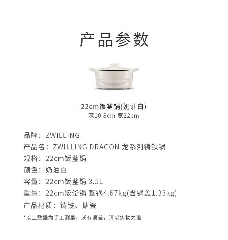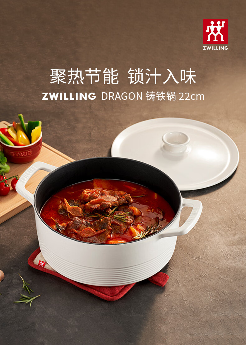 双立人(ZWILLING)珐琅锅汤锅炖锅Dragon龙铸铁锅煲汤锅炖肉锅多功能锅具电磁炉通用 奶油白(适合3-5人家庭) 22cm